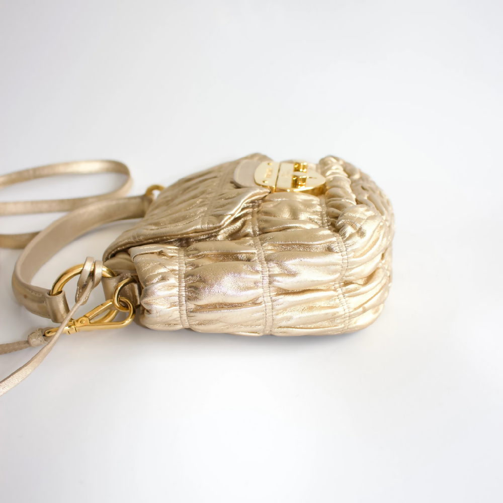 PRADA GOLDEN GAUFRE LEATHER CROSSBODY BAG