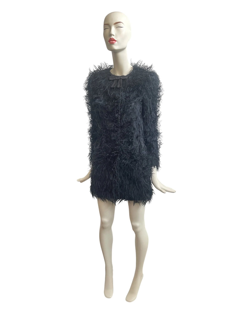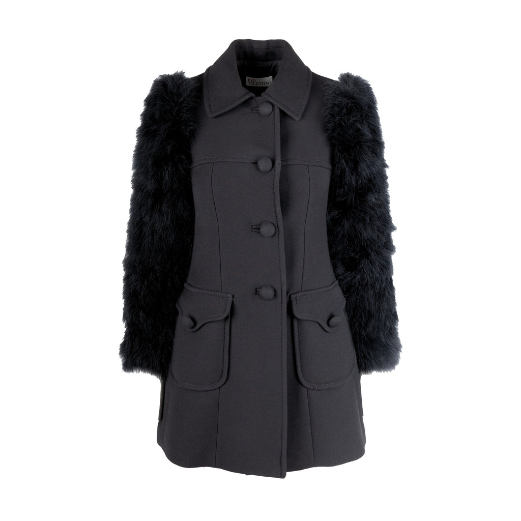 Red Valentino Wool Coat with Animal Feather Sleeves - '10s