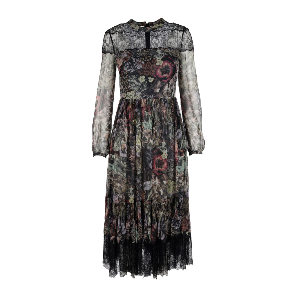 Red Valentino Lace Trimmed Floral Print Dress - '10s