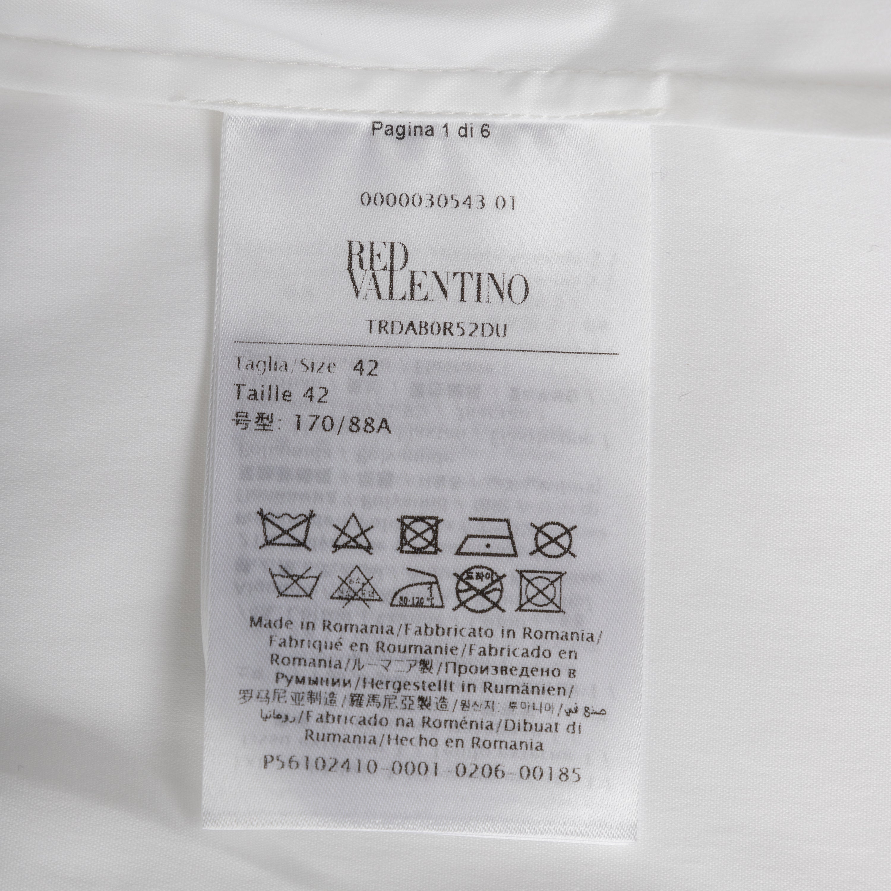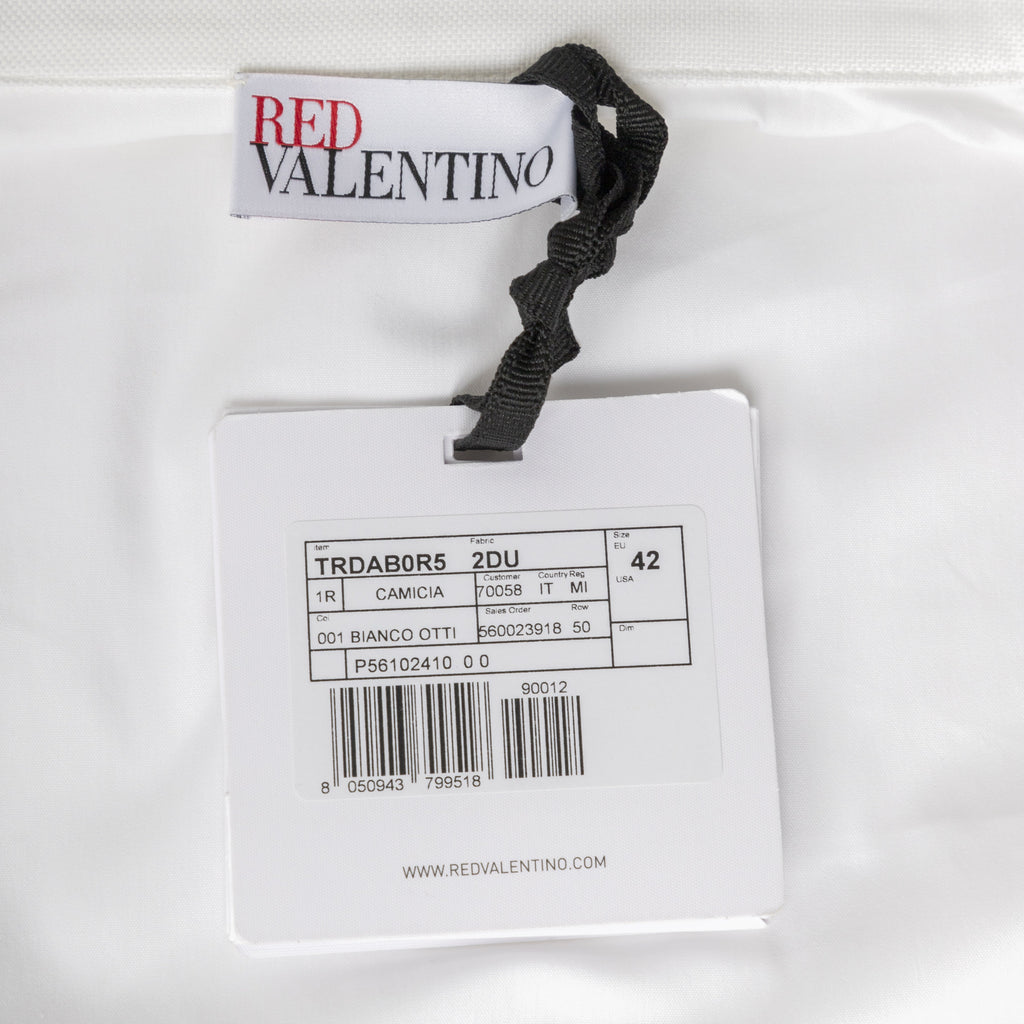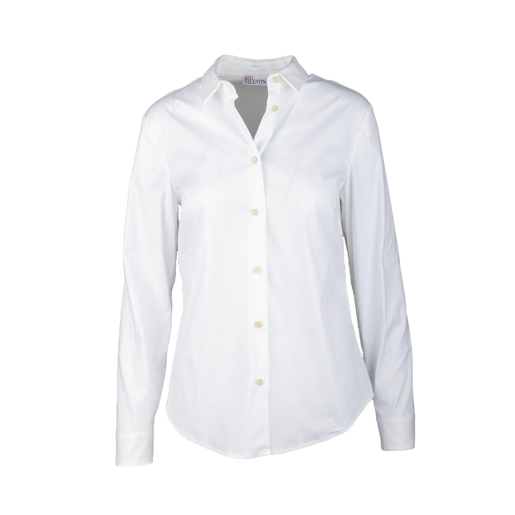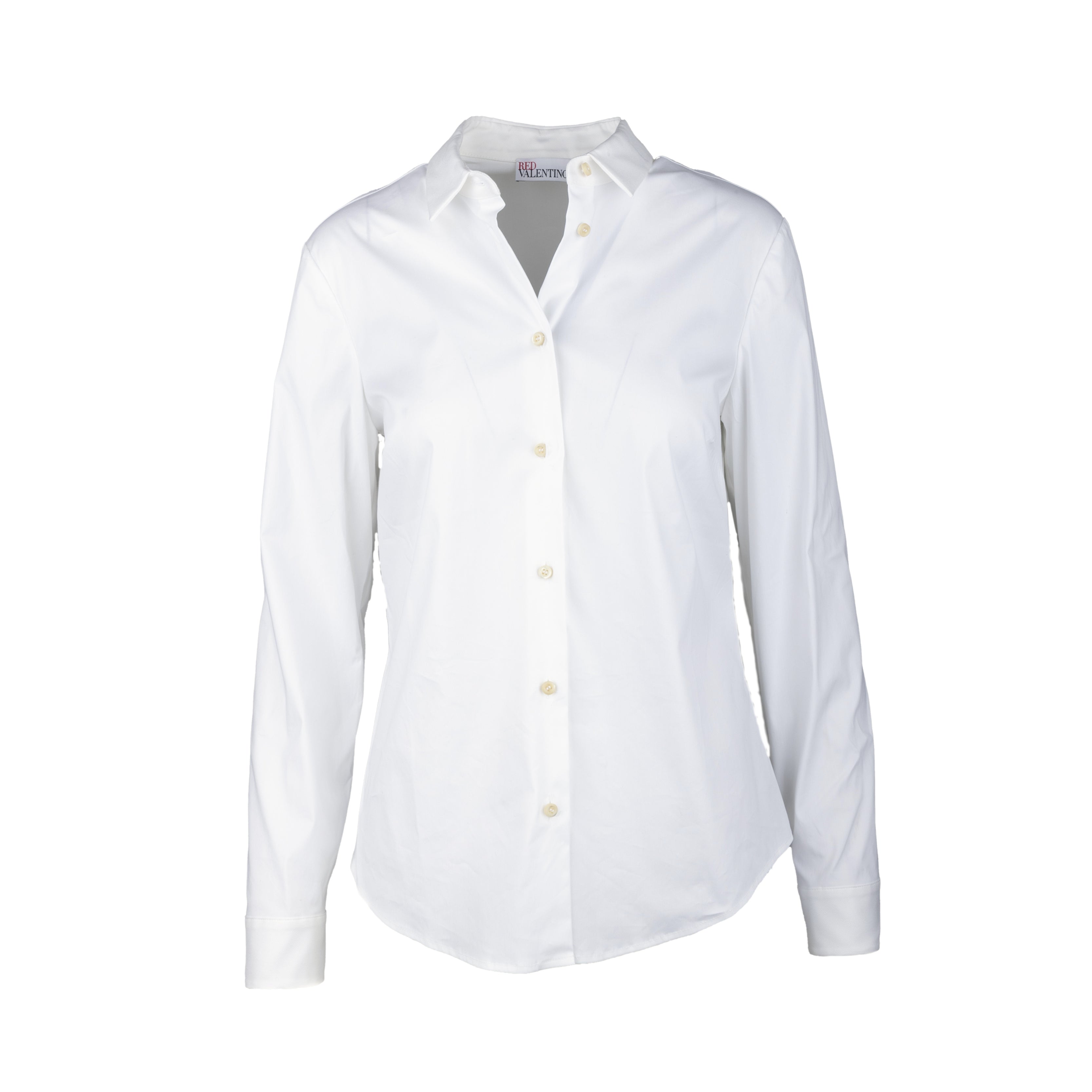 This Red Valentino shirt is expertly crafted from a cotton blend fabric and features a front button closure with mother of pearl cream color buttons. Designed with a long sleeve and cuff, this shirt offers a stylish and classic look.