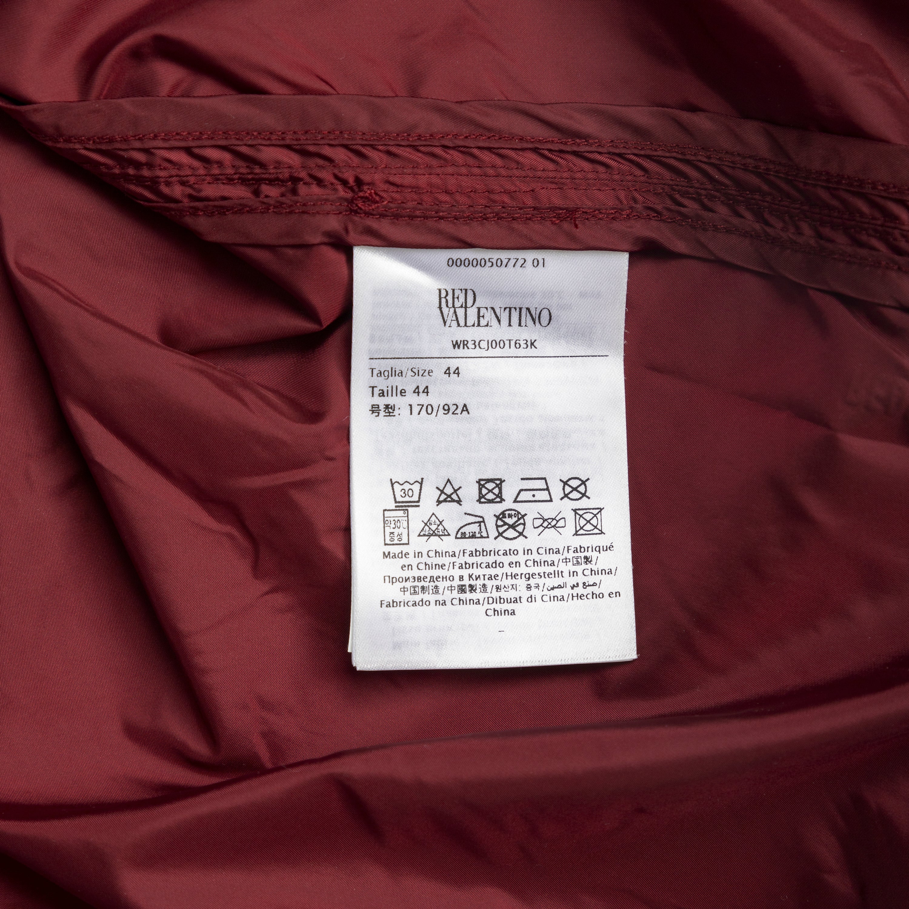 Elevate your outerwear game with the Red Valentino Hooded Parka Jacket. In a rich Bordeaux color, this parka features a convenient hood and short sleeves for a versatile option. With a front zipper fastening and loose fit, you'll stay stylish and comfortable in any weather.