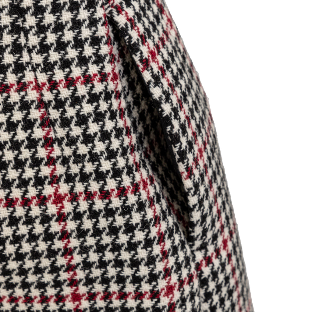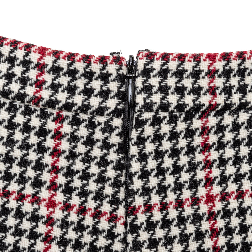These Red Valentino Houndstooth Pattern Shorts offer a relaxed fit and a chic houndstooth pattern in classic black, red, and off-white tones, crafted from a wool blend with a polyester lining. With a mid-rise design, they provide both style and comfort. The two side pockets and concealed zip closure add functionality to the shorts.