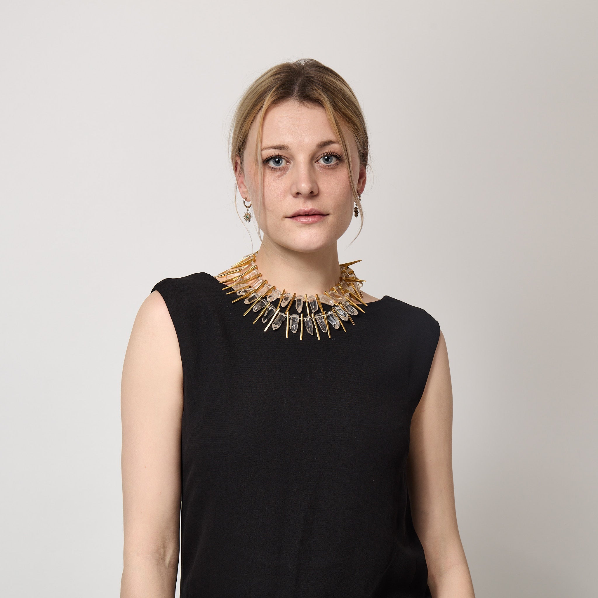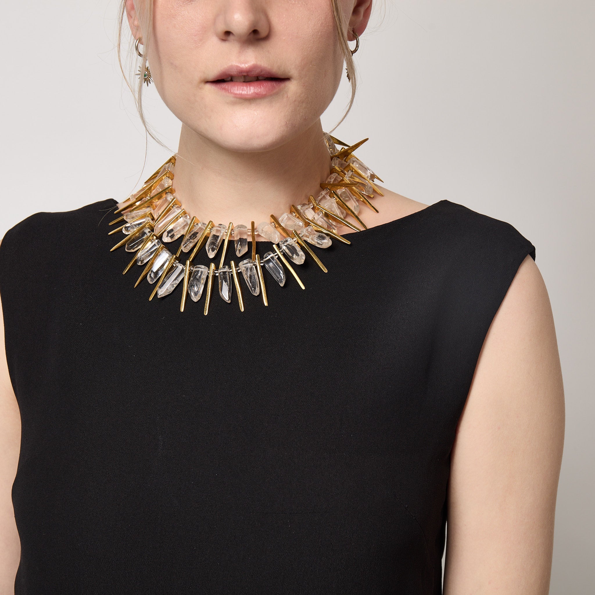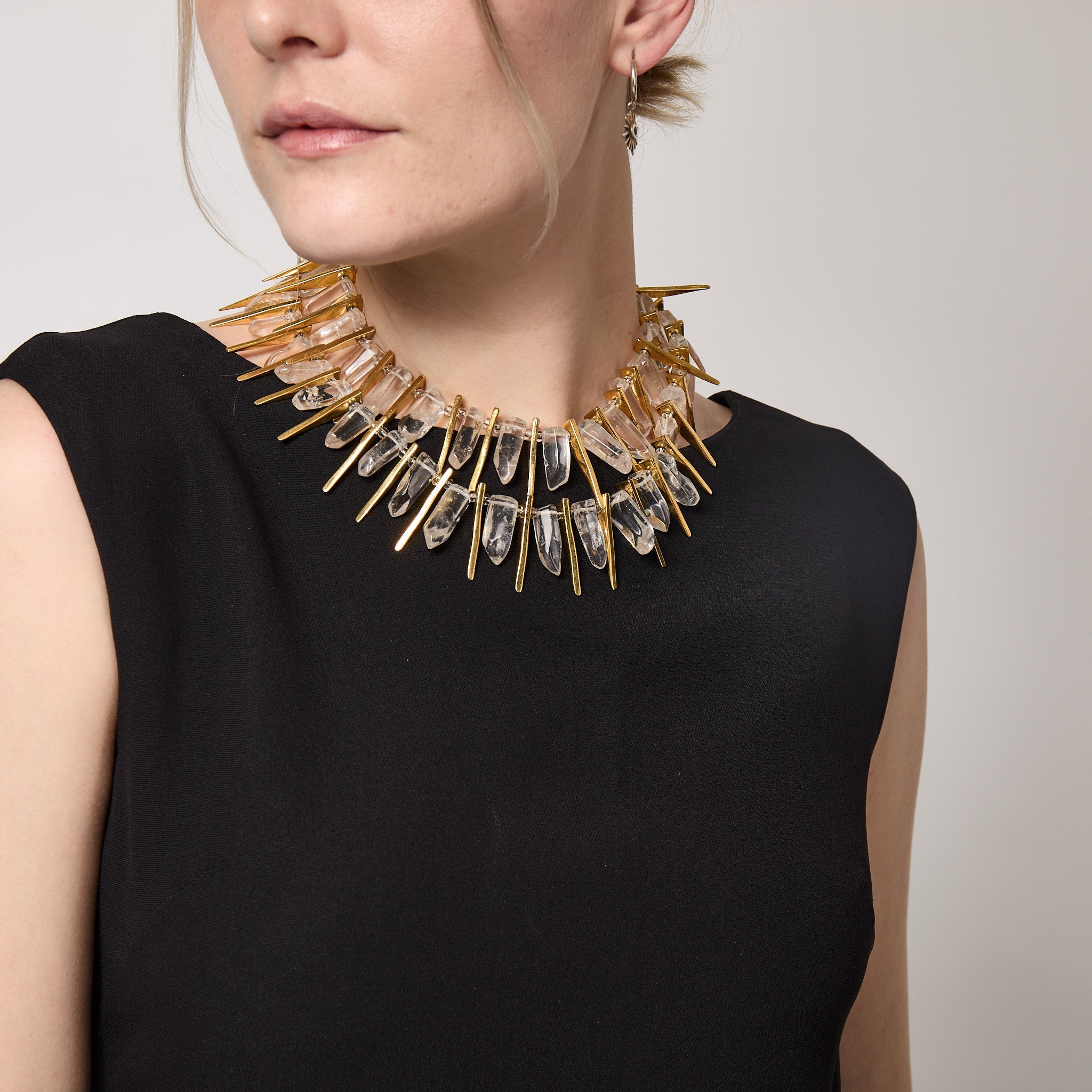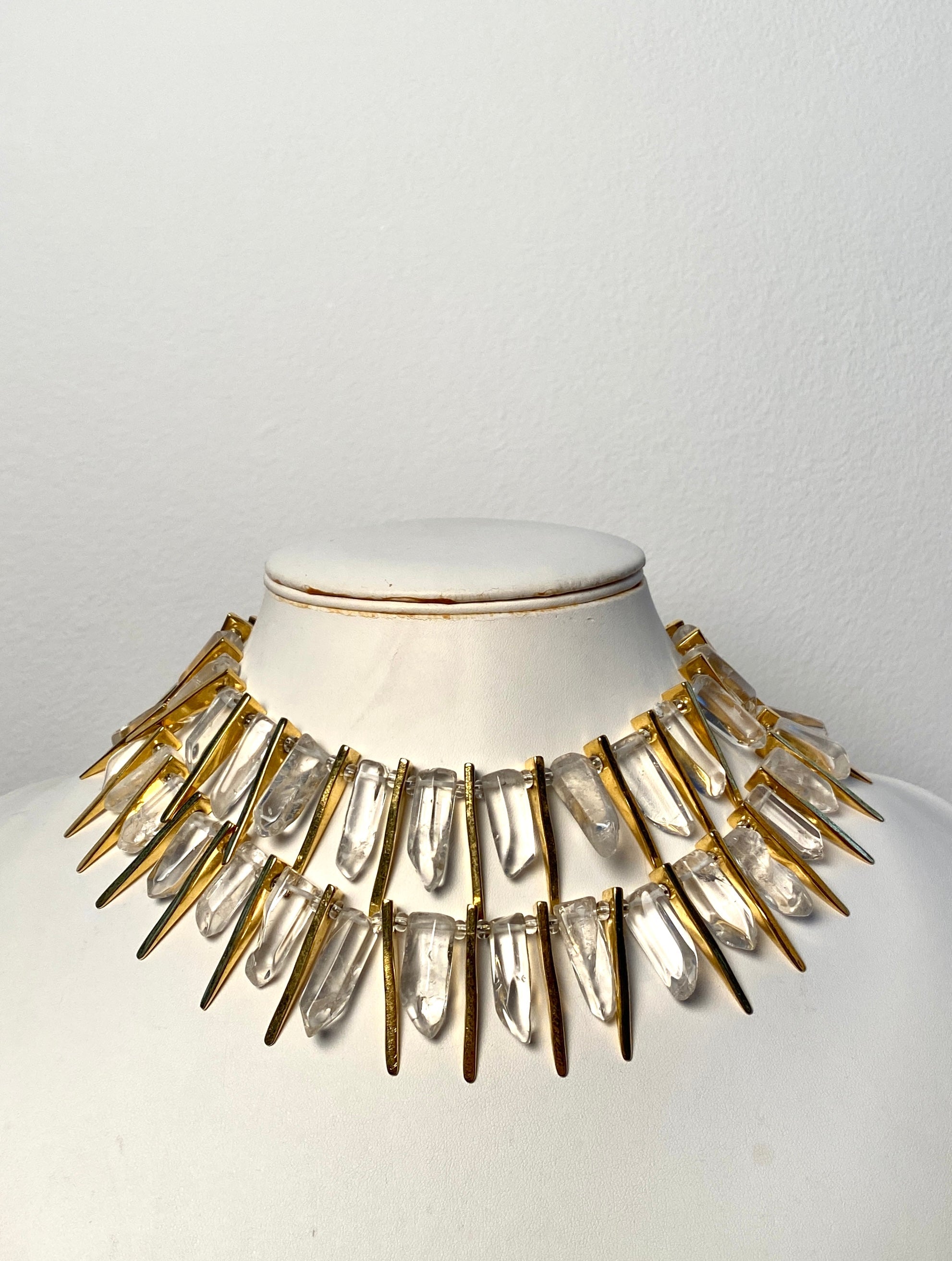 1990s Kenneth Jay Lane Gold and Crystal Statement Necklace