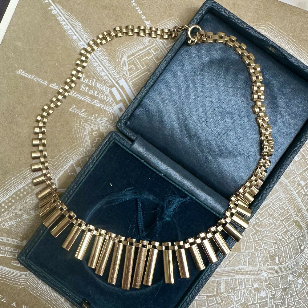 Vintage 9ct yellow gold 16" Cleopatra necklace with clasp and safety catch.