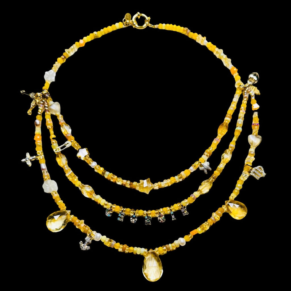 Golden Treasure Beach Opal & Citrine Charm Everything Necklace