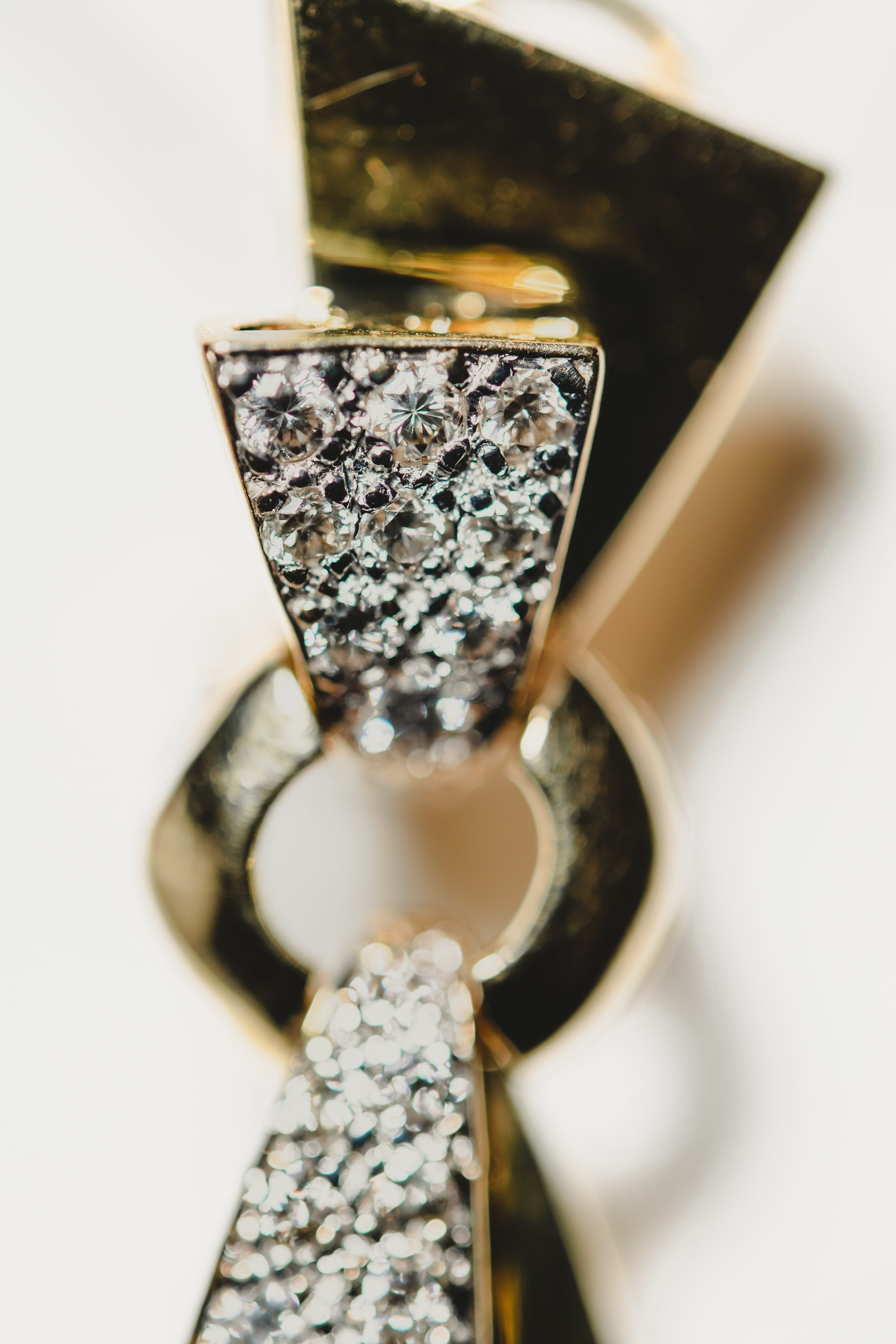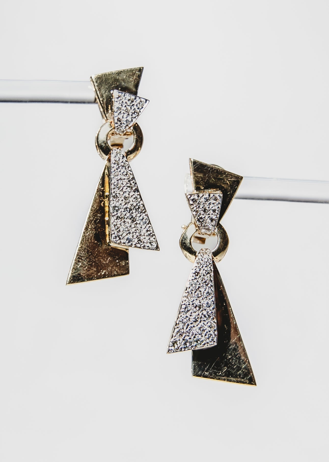 Show off your retro-chic style with our dazzling abstract Gold & Diamond Tie Earrings from the 80's! Step back in time, and tie your look together with these unique and sparkly ear baubles!