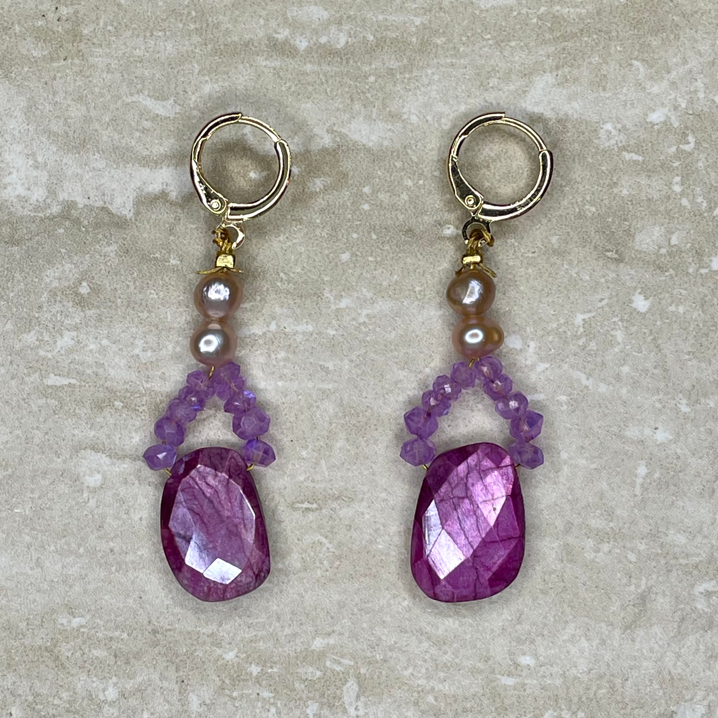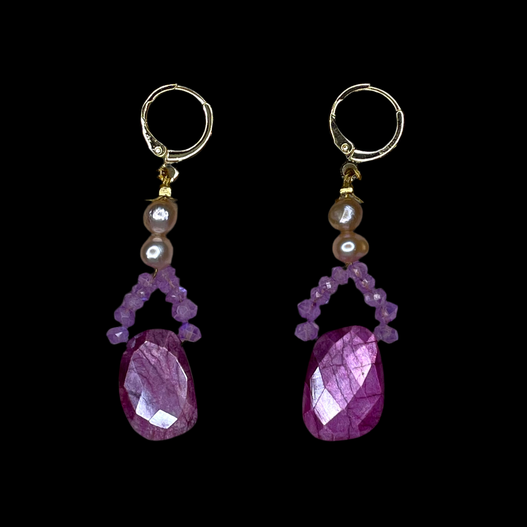 Ruby Moonstone and Pearl 'Peony' Earrings