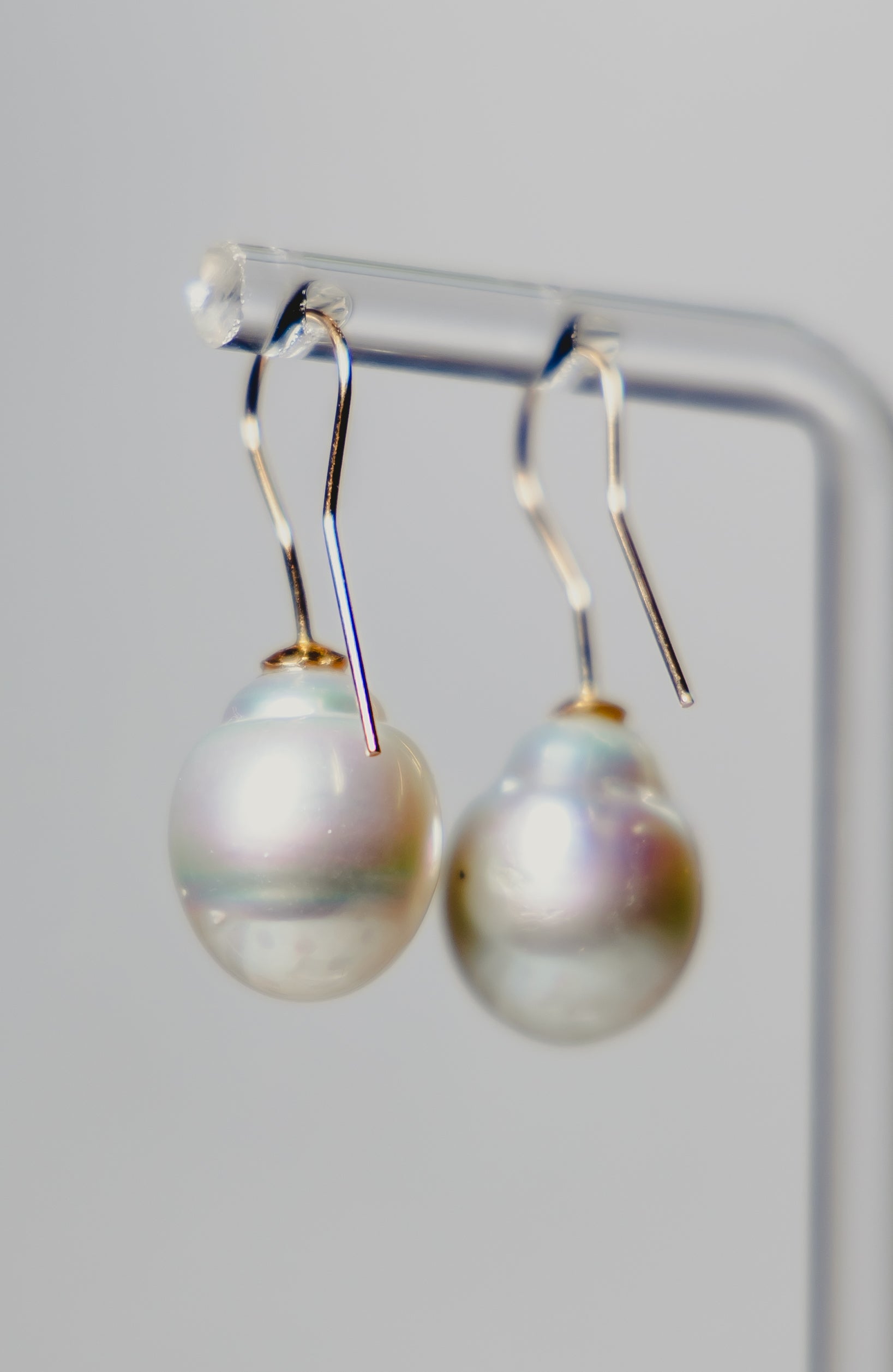 White South Sea Pearl Drop Earrings in 14K Gold.