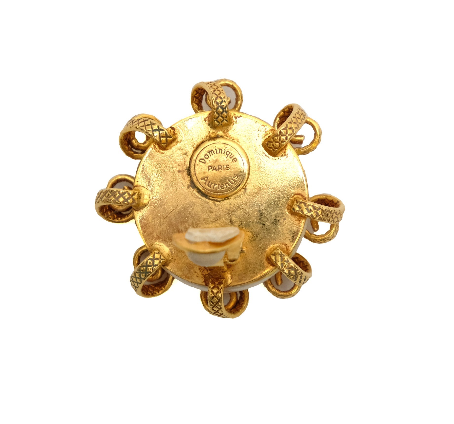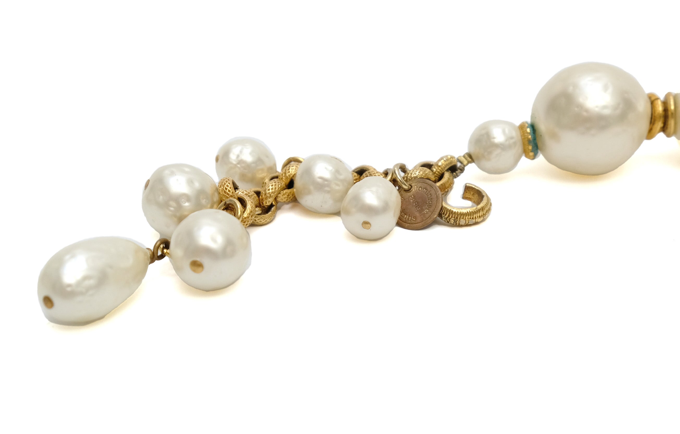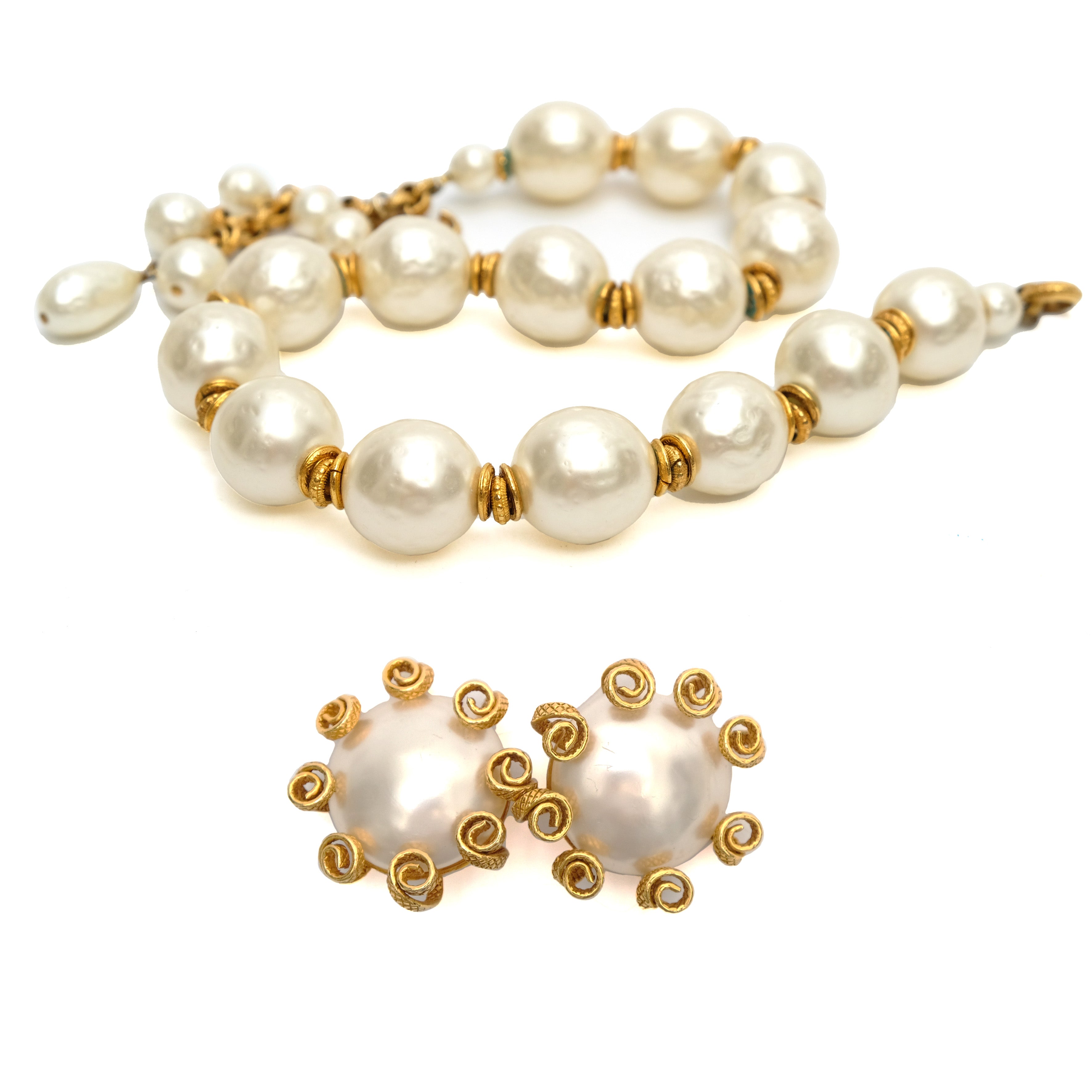 A lovely 1980s vintage signed Dominique Aurientis Paris faux pearl and gold tone necklace, with matching oversize earrings.