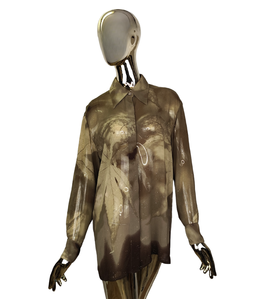 ROBERTO CAVALLI F/W 1999 GREEN CANNABIS LEAVES PRINT SILK SHIRT