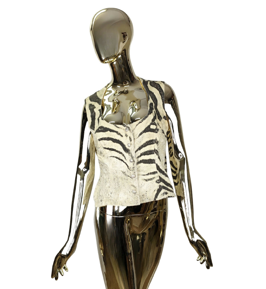 ROBERTO CAVALLI S/S 1999 ZEBRA PRINT DENIM VEST TOP
