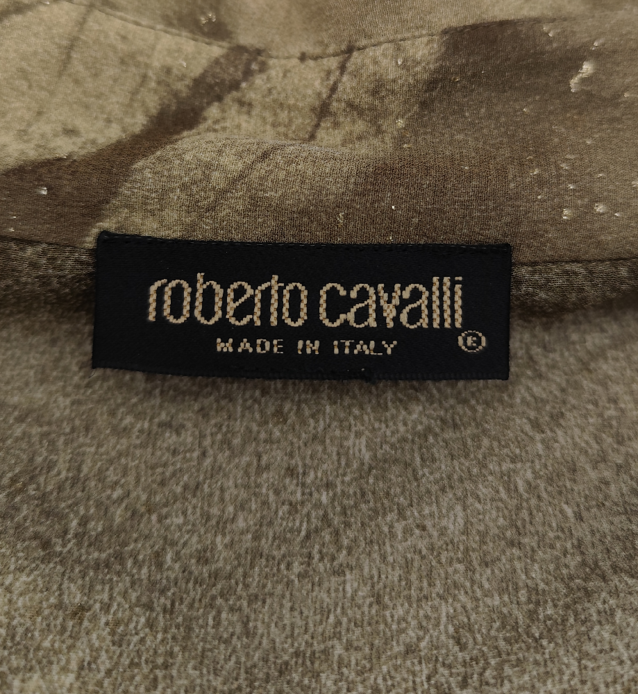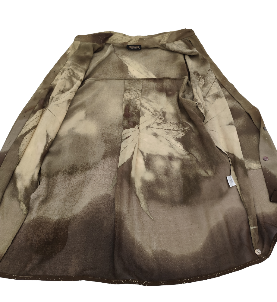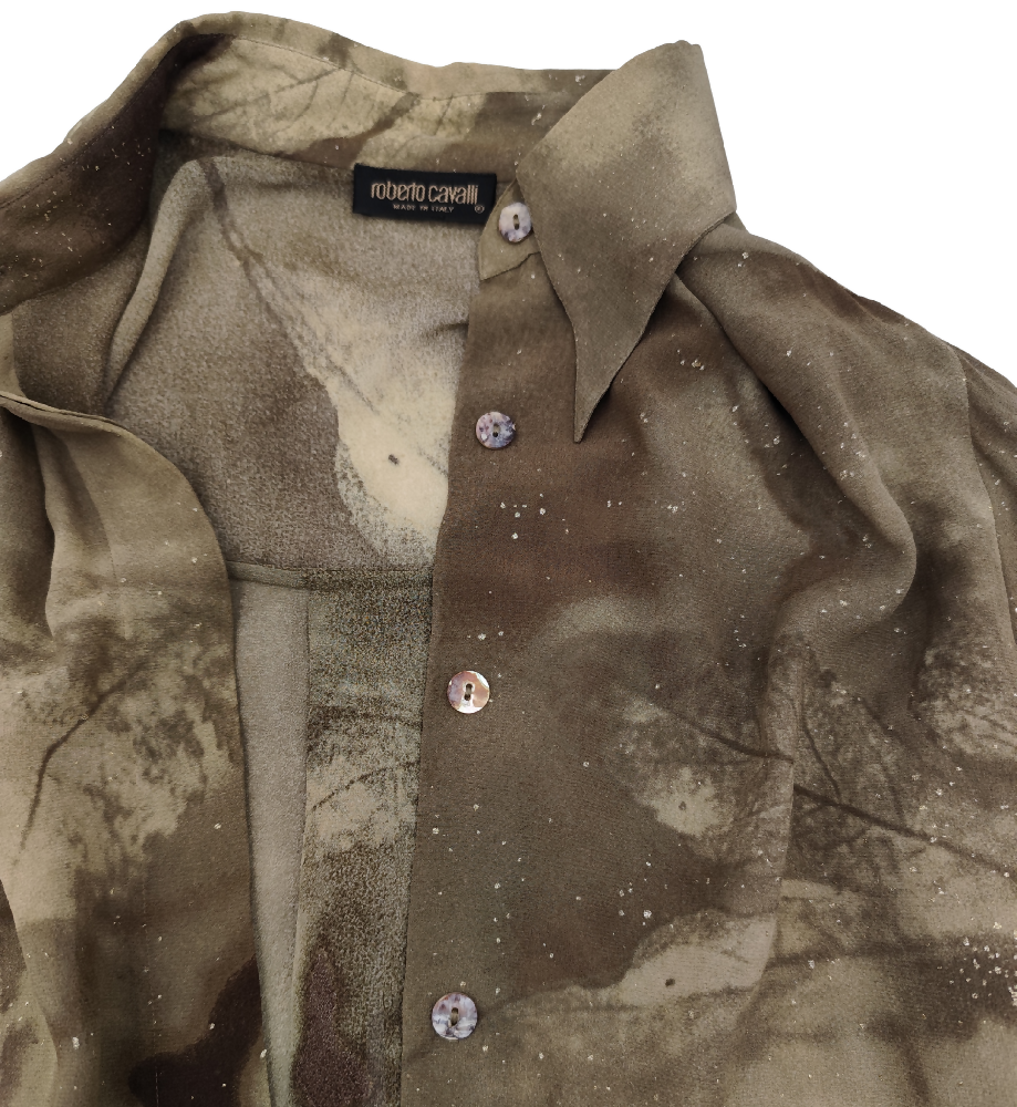 ROBERTO CAVALLI F/W 1999 GREEN CANNABIS LEAVES PRINT SILK SHIRT