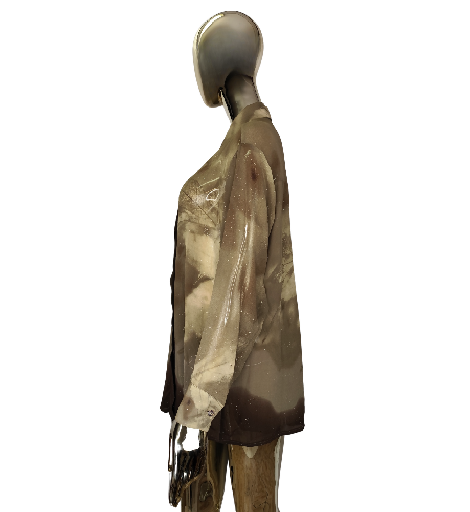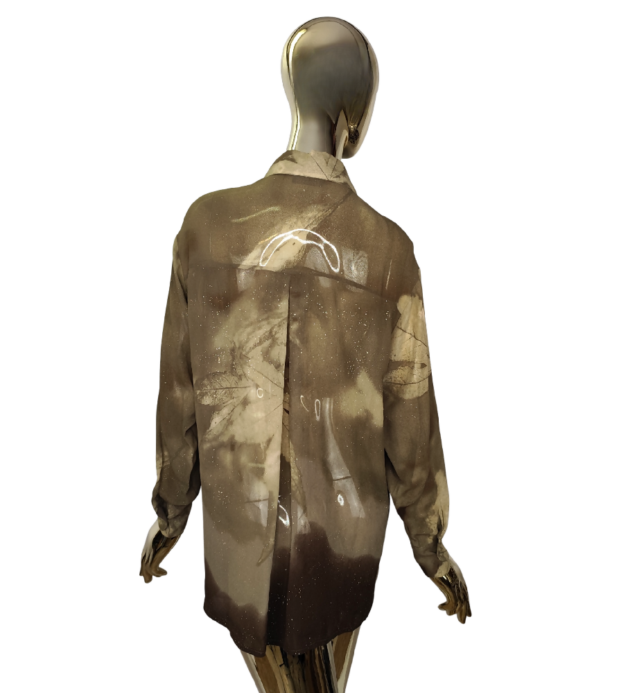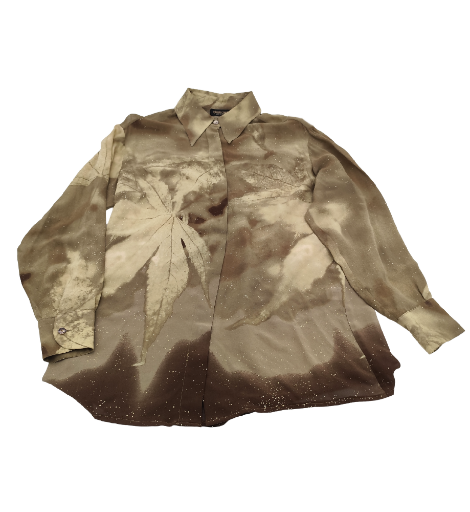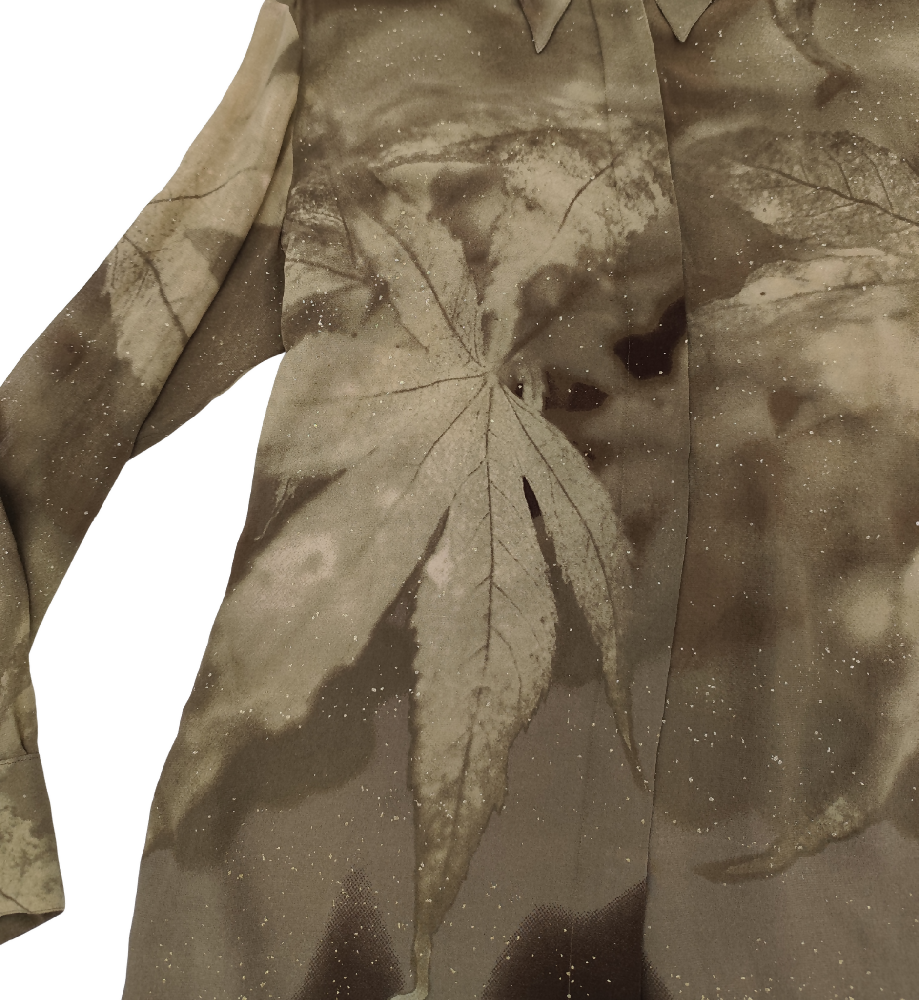 ROBERTO CAVALLI F/W 1999 GREEN CANNABIS LEAVES PRINT SILK SHIRT