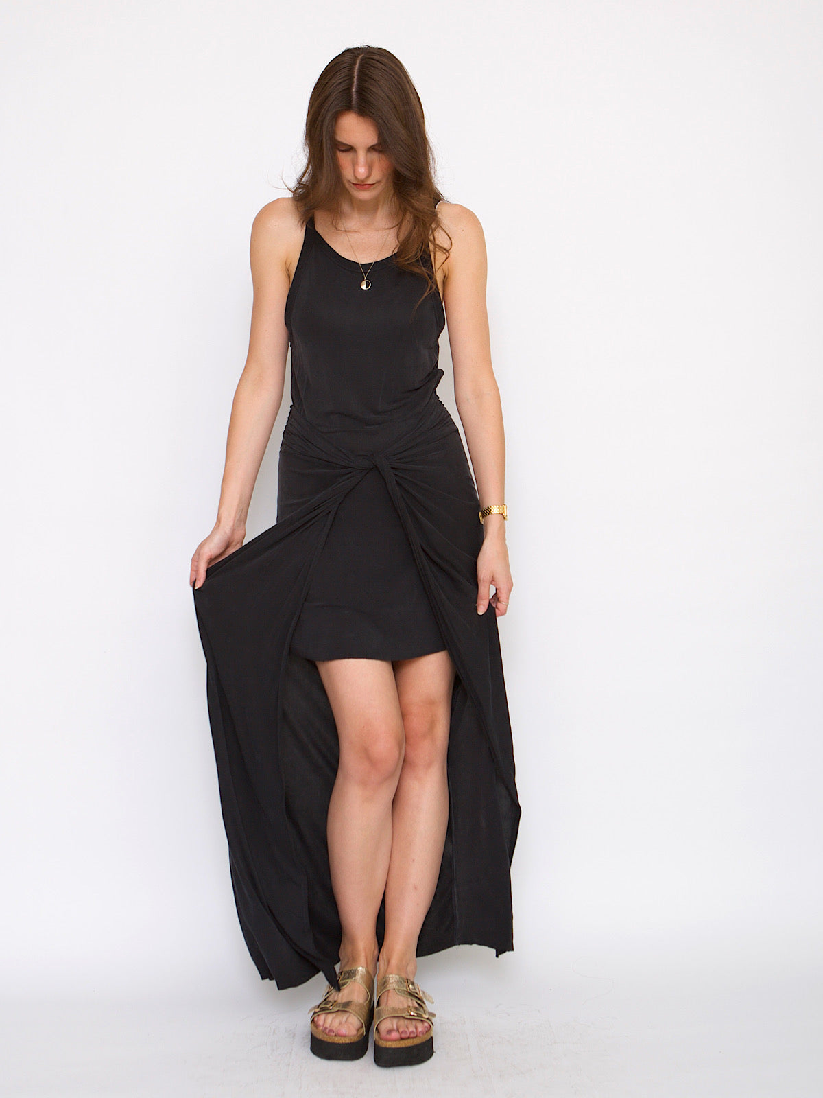The dress has 2 parts, long at the back and mini dress underneath at the front.