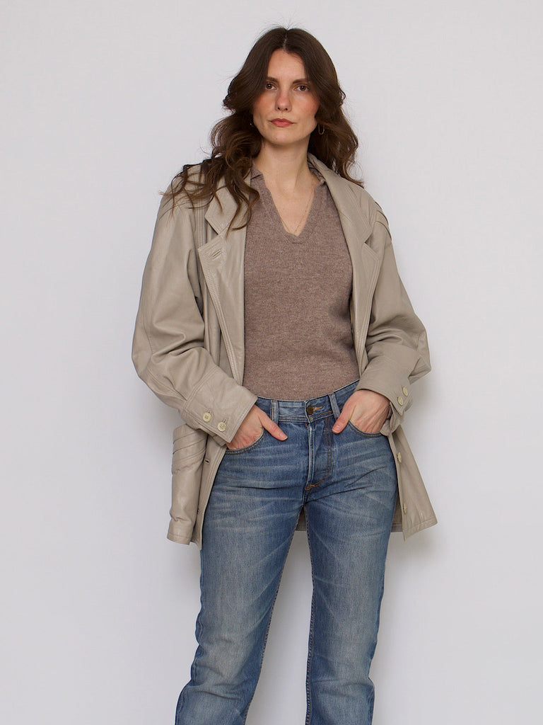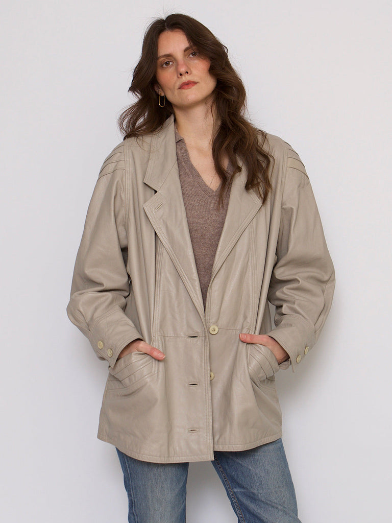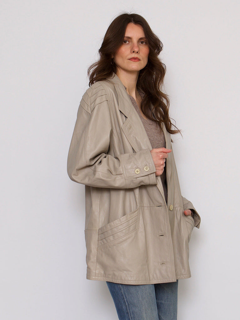 This leather jacket can be worn oversized, the leather is so soft and fluid.