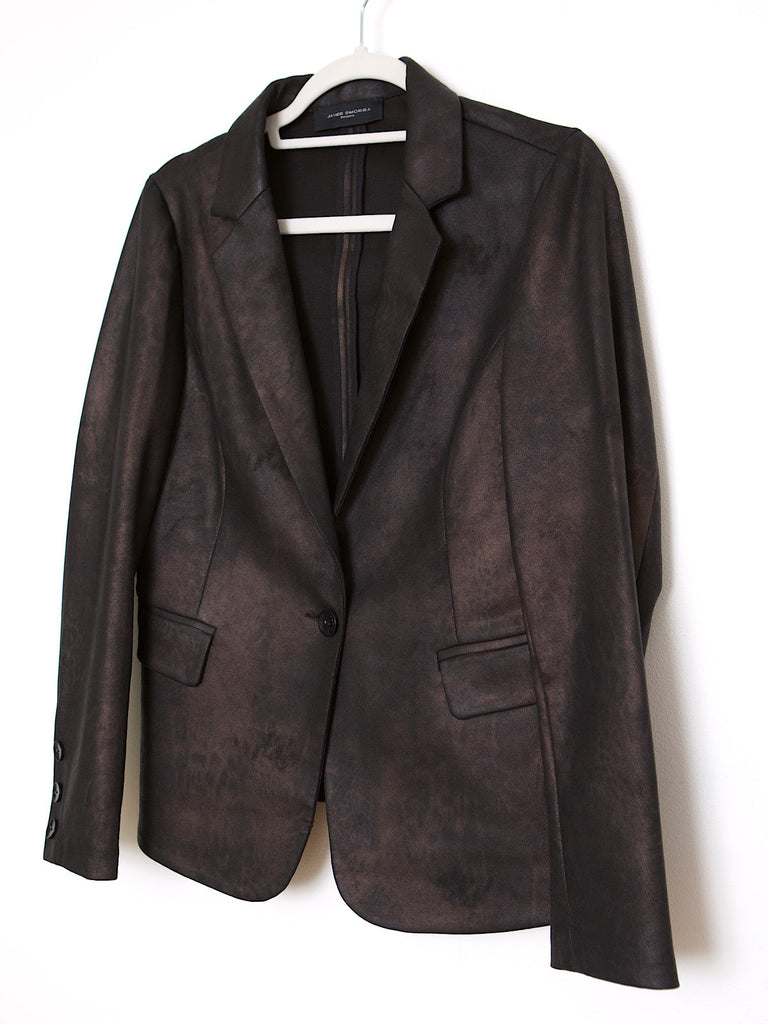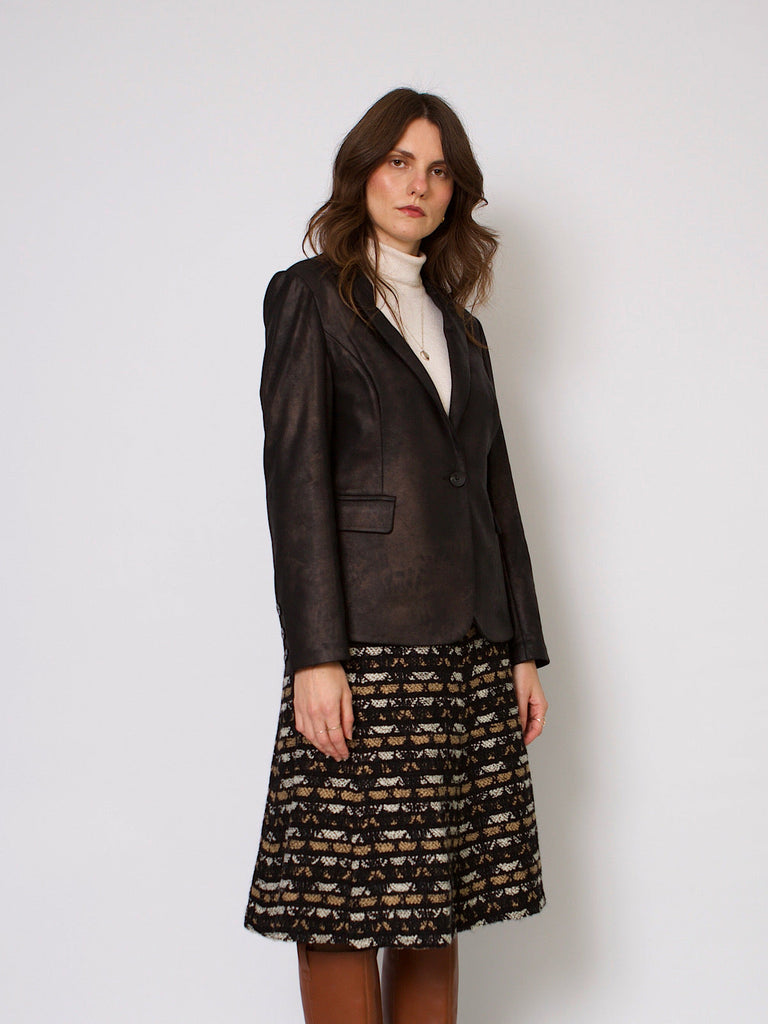 The fabric has got some stretch, you can wear it a bit loose fit as on the model or more fitted.