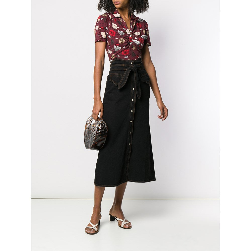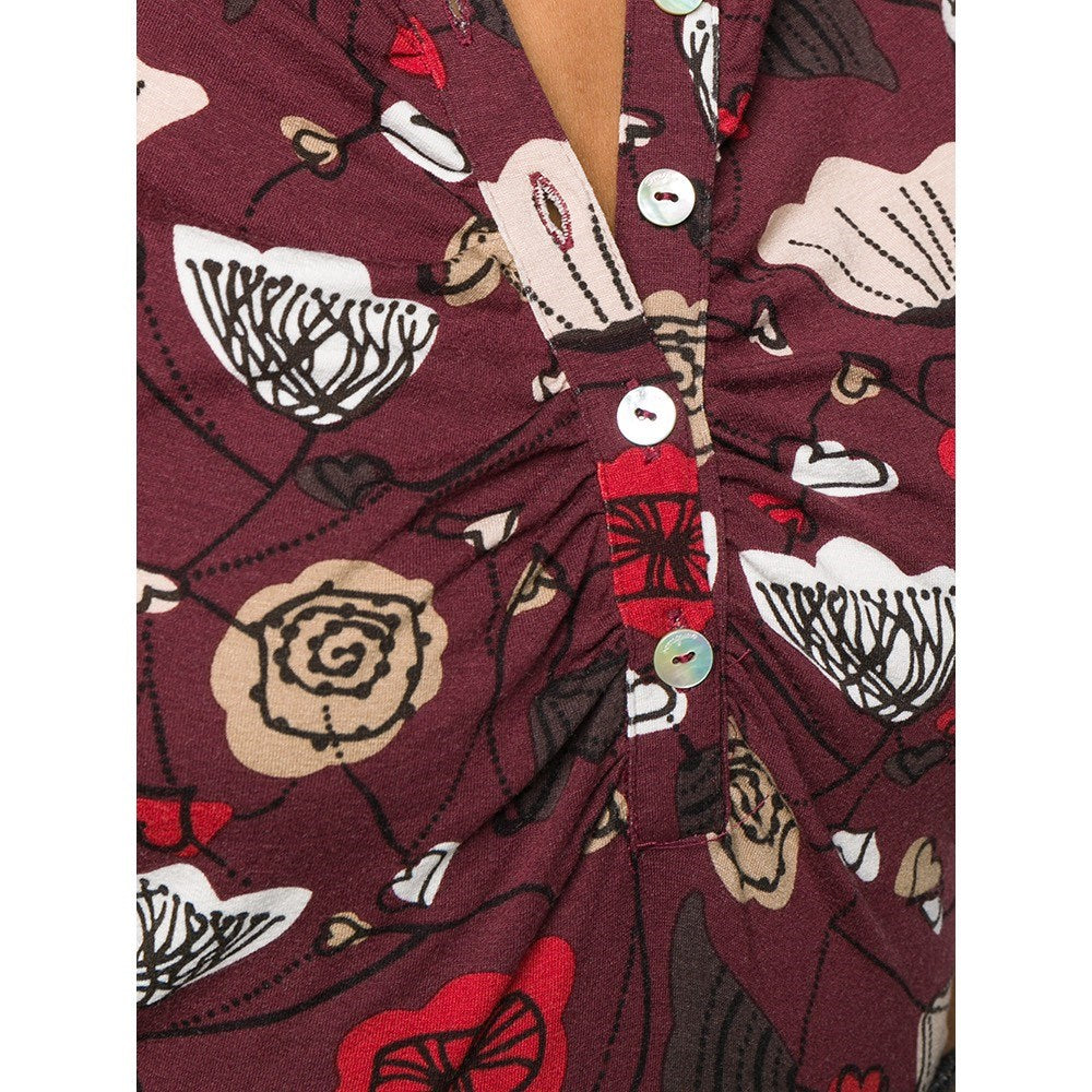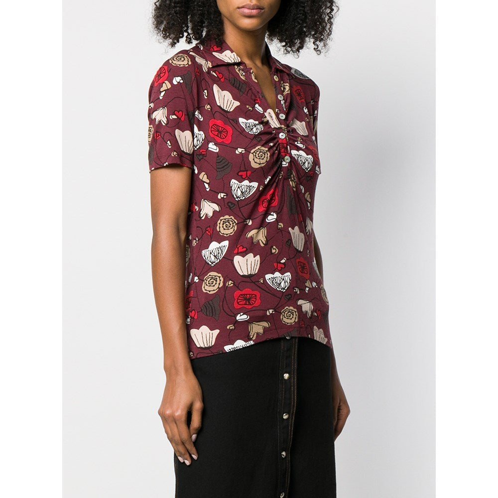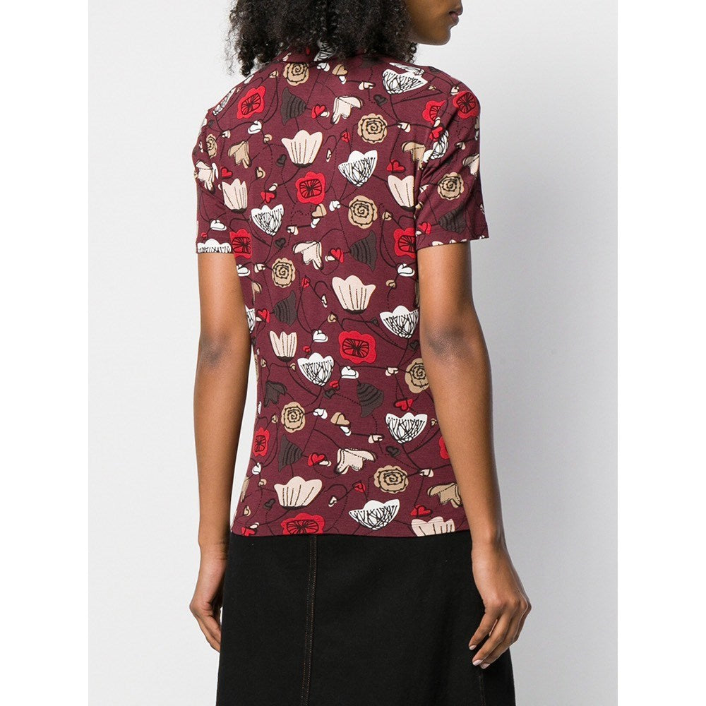 Salvatore Ferragamo burgundy cotton fitted 70s polo shirt with short sleeves and frontal buttons fastening.
