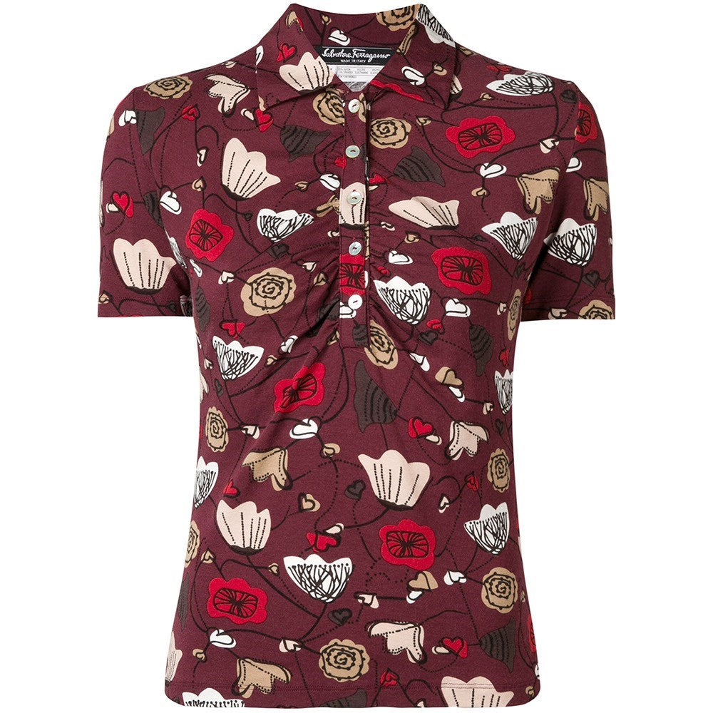 Salvatore Ferragamo Burgundy Polo Shirt - '70s