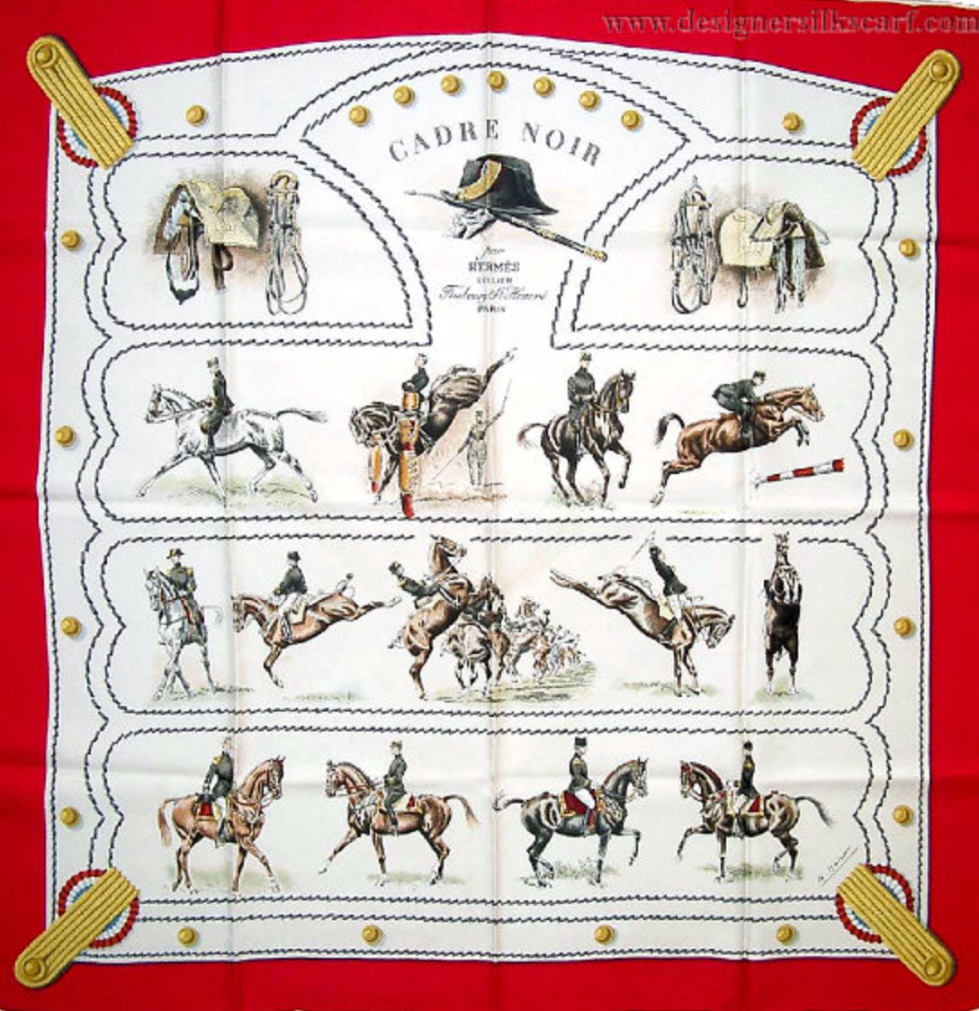 1960 Hermès Red “Cadre Noir” by G. Margot 90cm Silk Twill Scarf