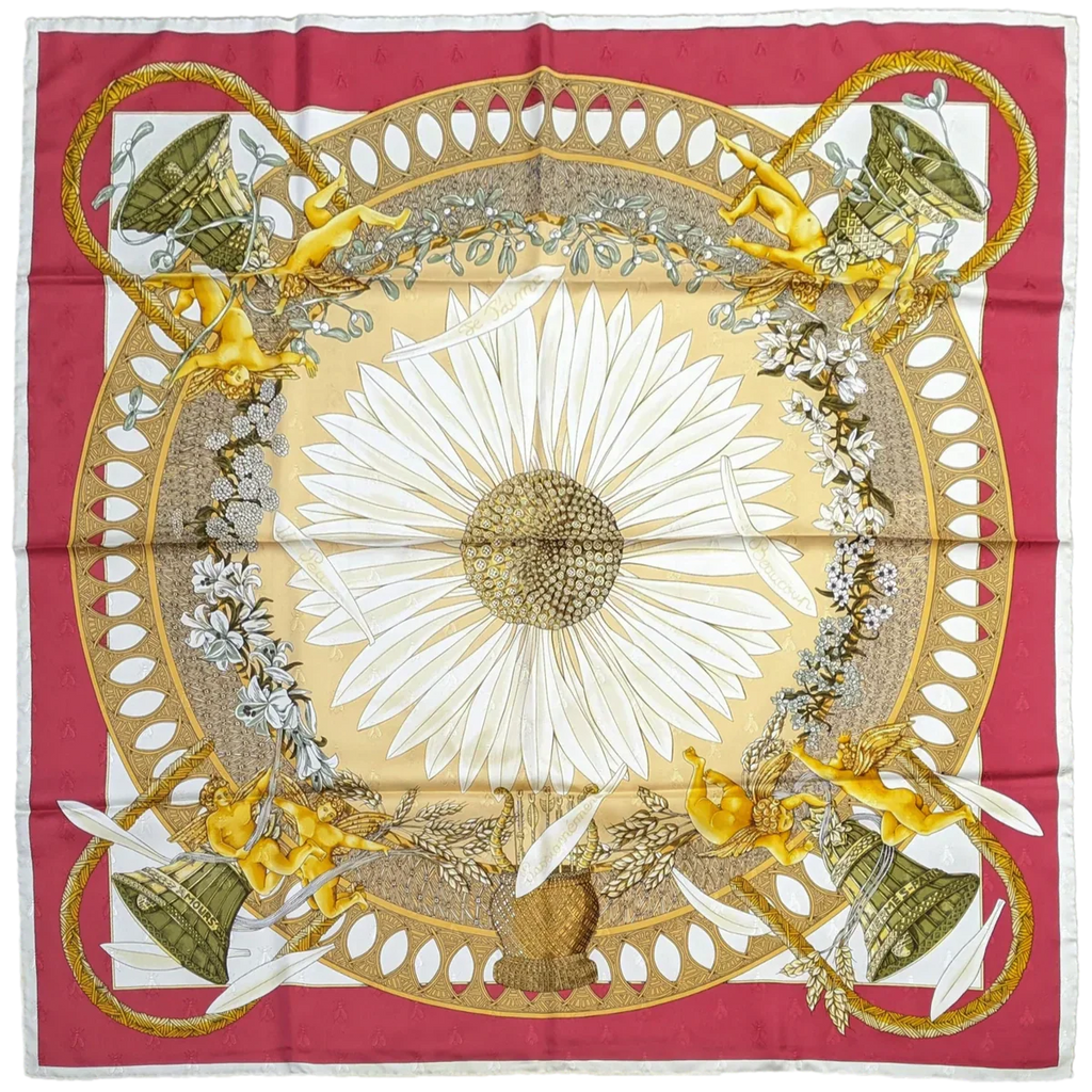 1999 Hermès Red “Amours” by Annie Faivre 90cm Silk Twill Scarf
