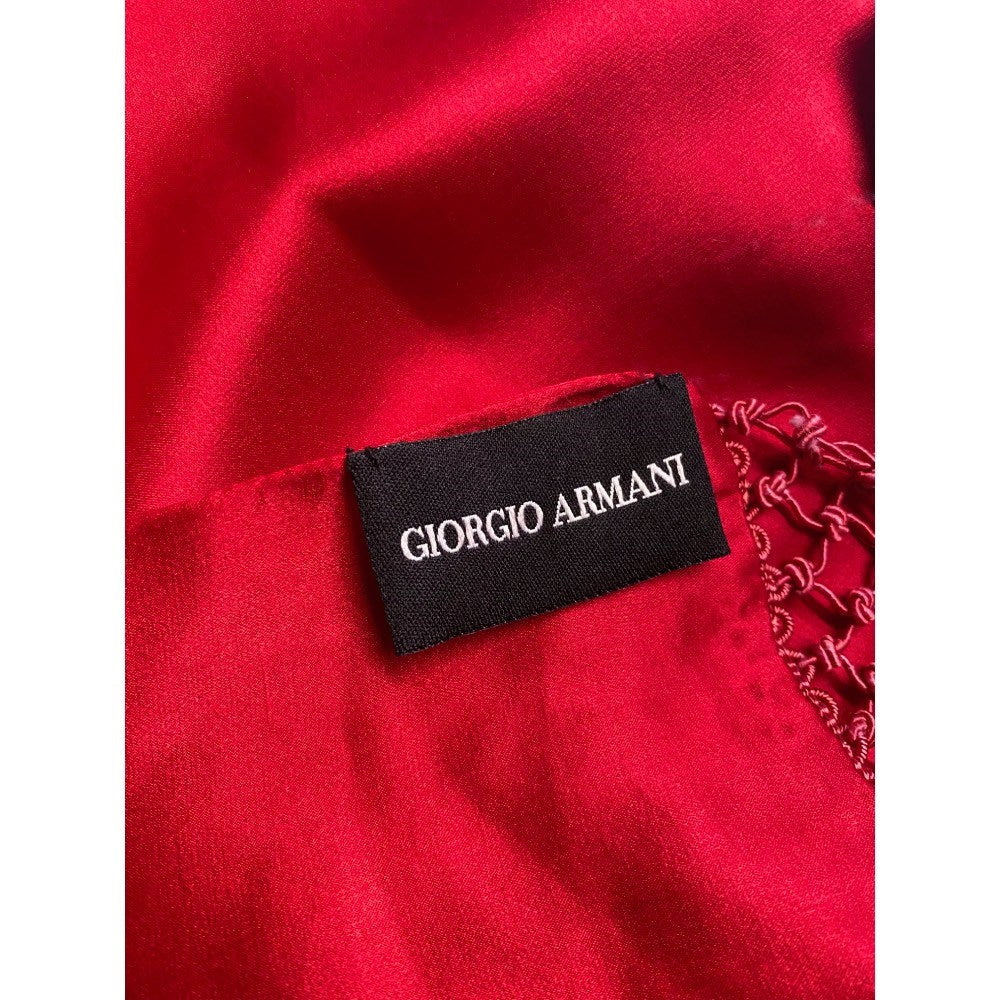 Giorgio Armani Red Silk Embroidered Scarf - 2000s