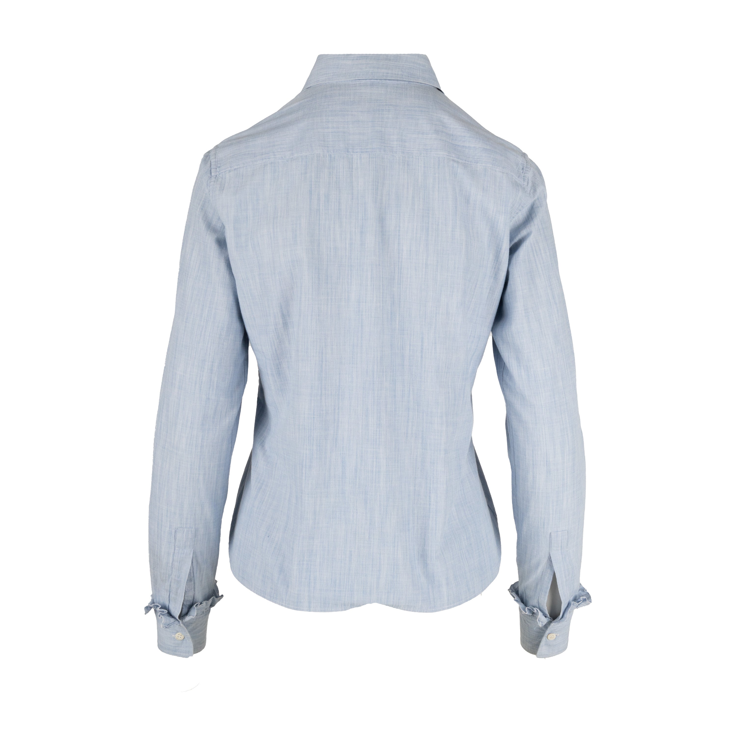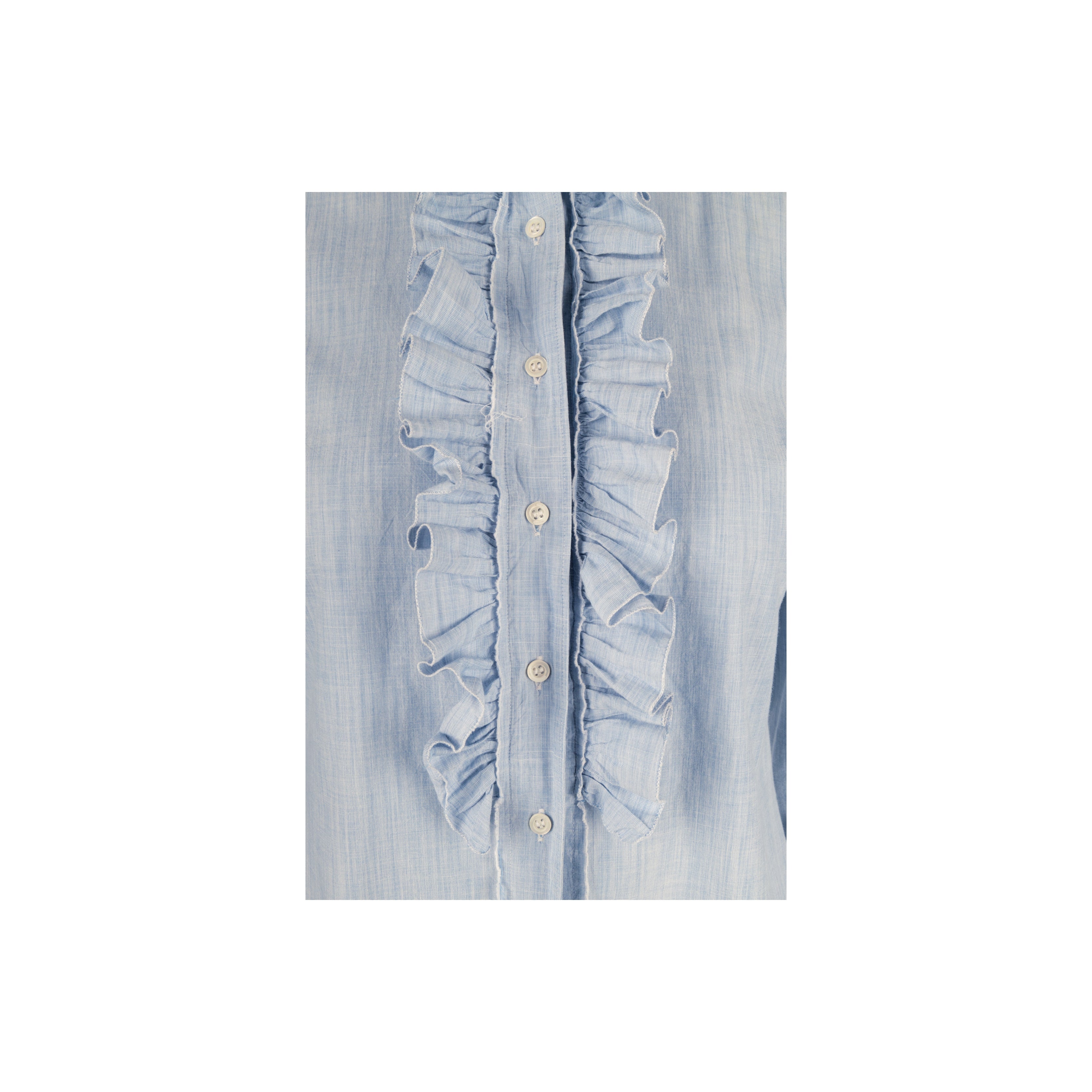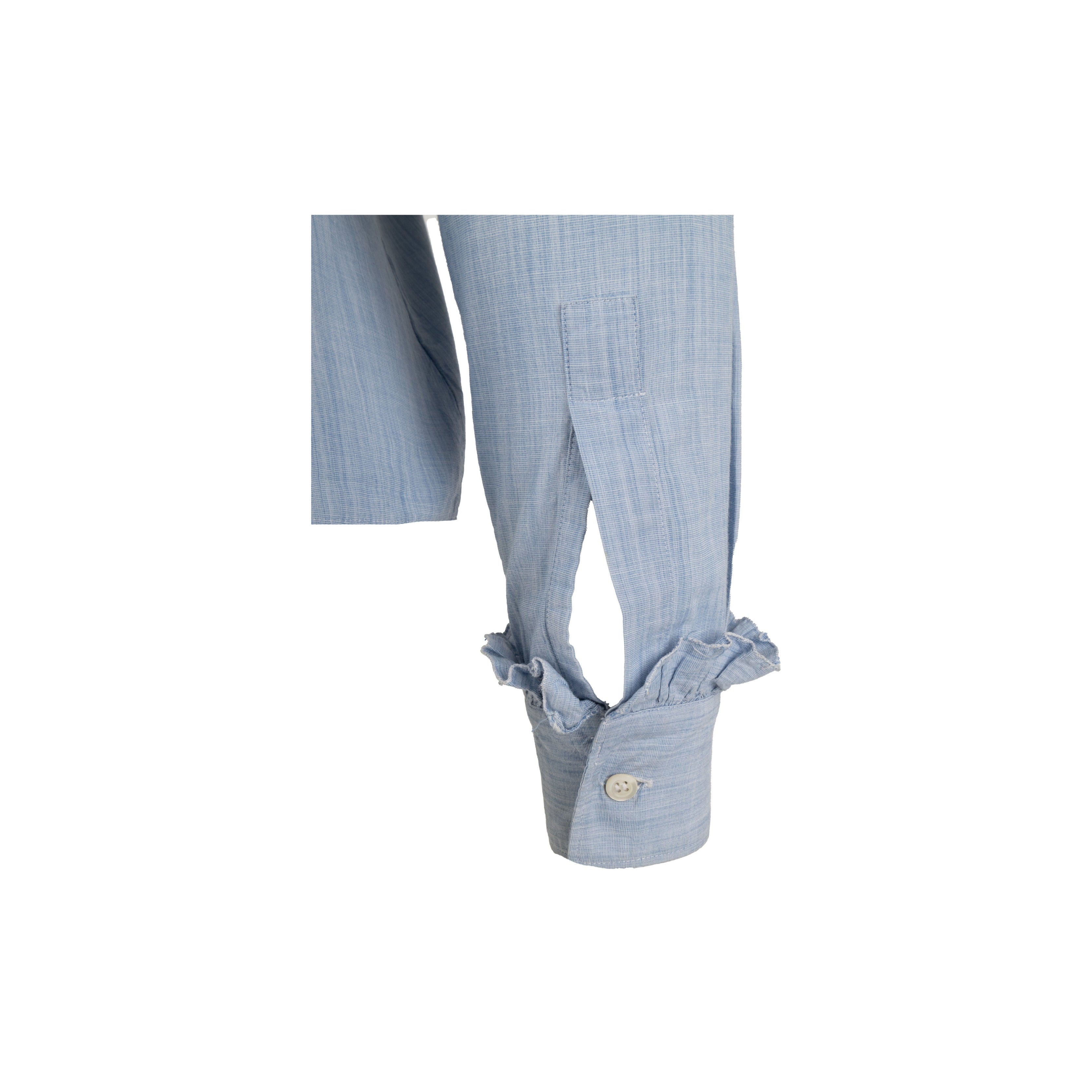 This Gio Moretti Shirt with Ruffles in light blue is crafted from 100% cotton, with exquisite collar and ruffle detailing on the front button stand and sleeve cuffs.