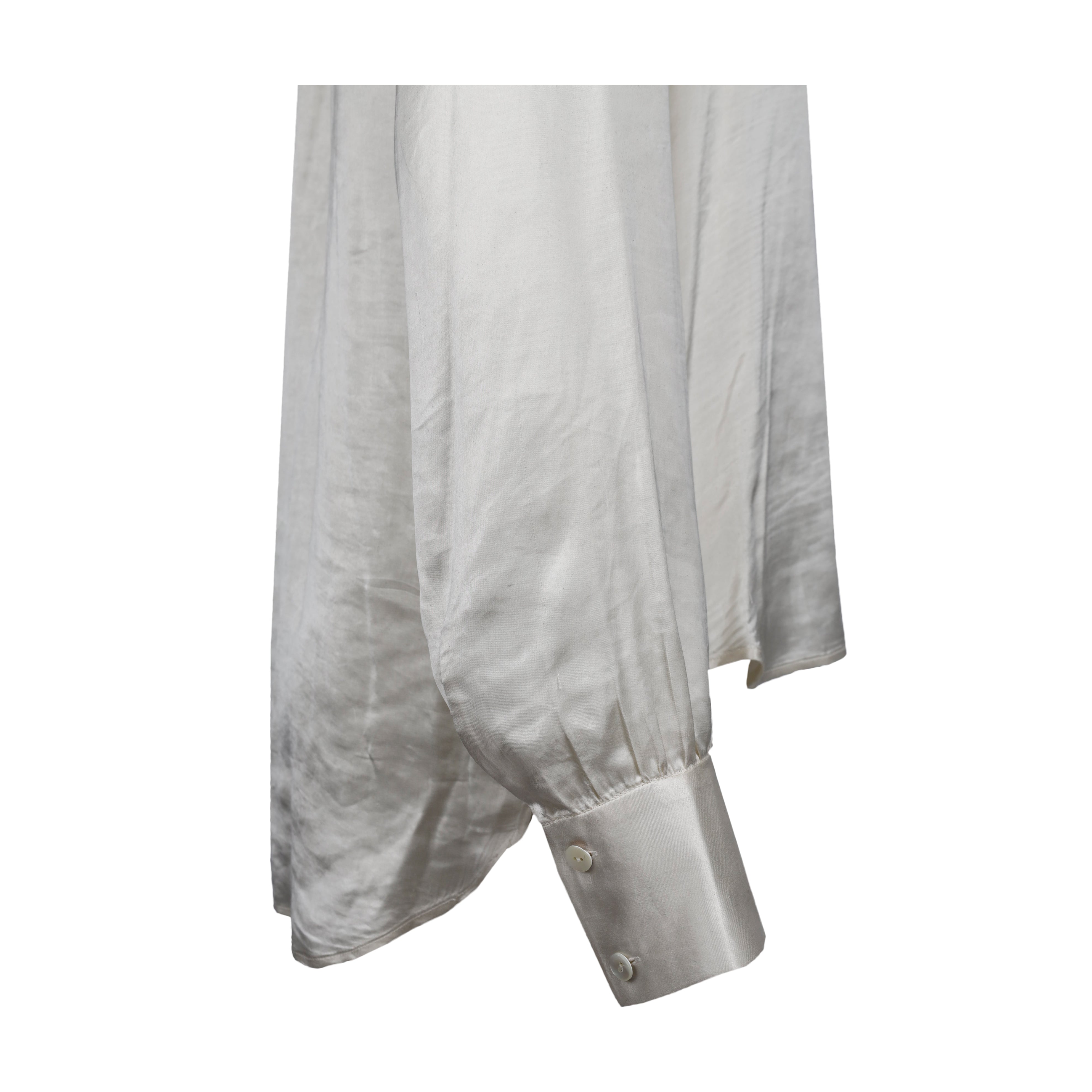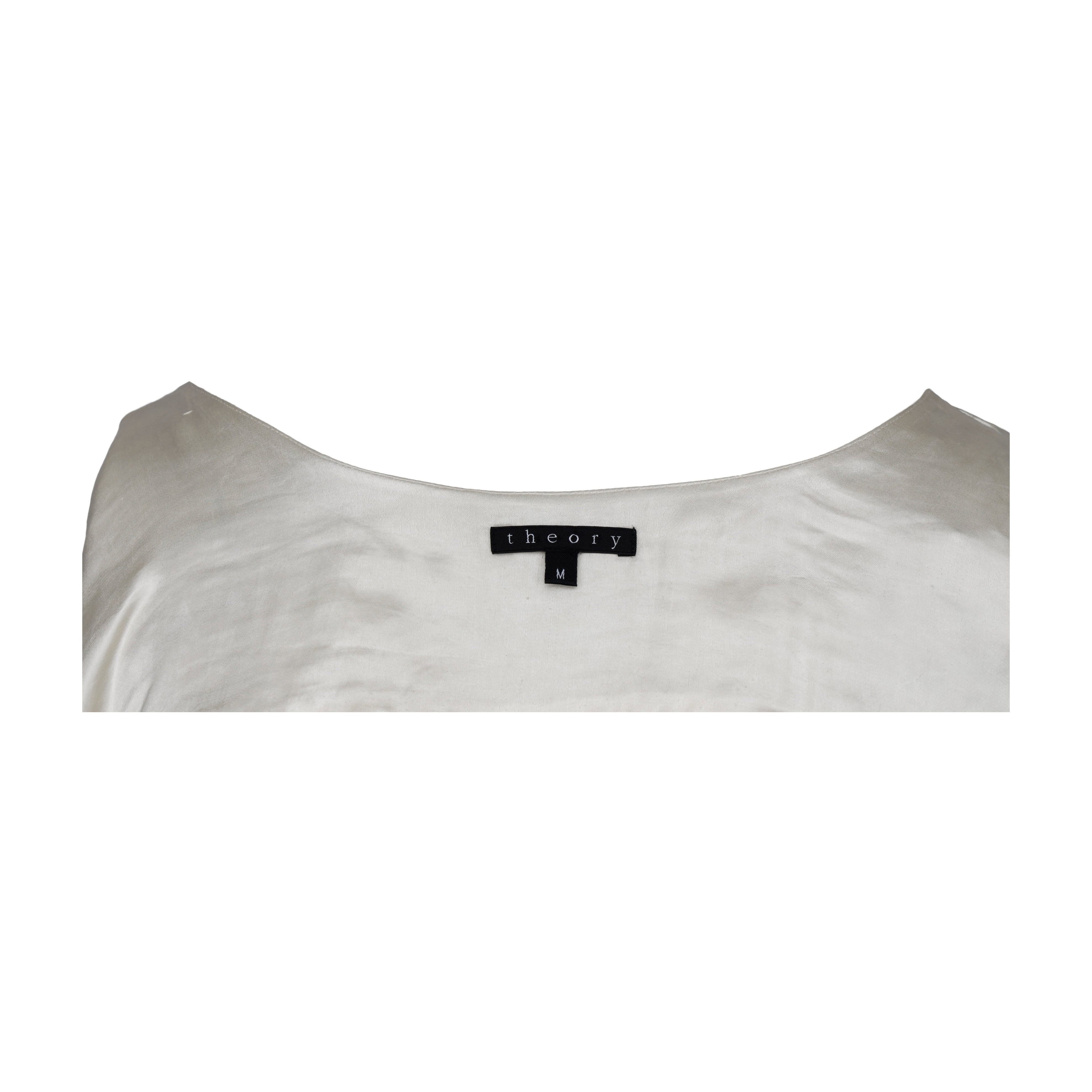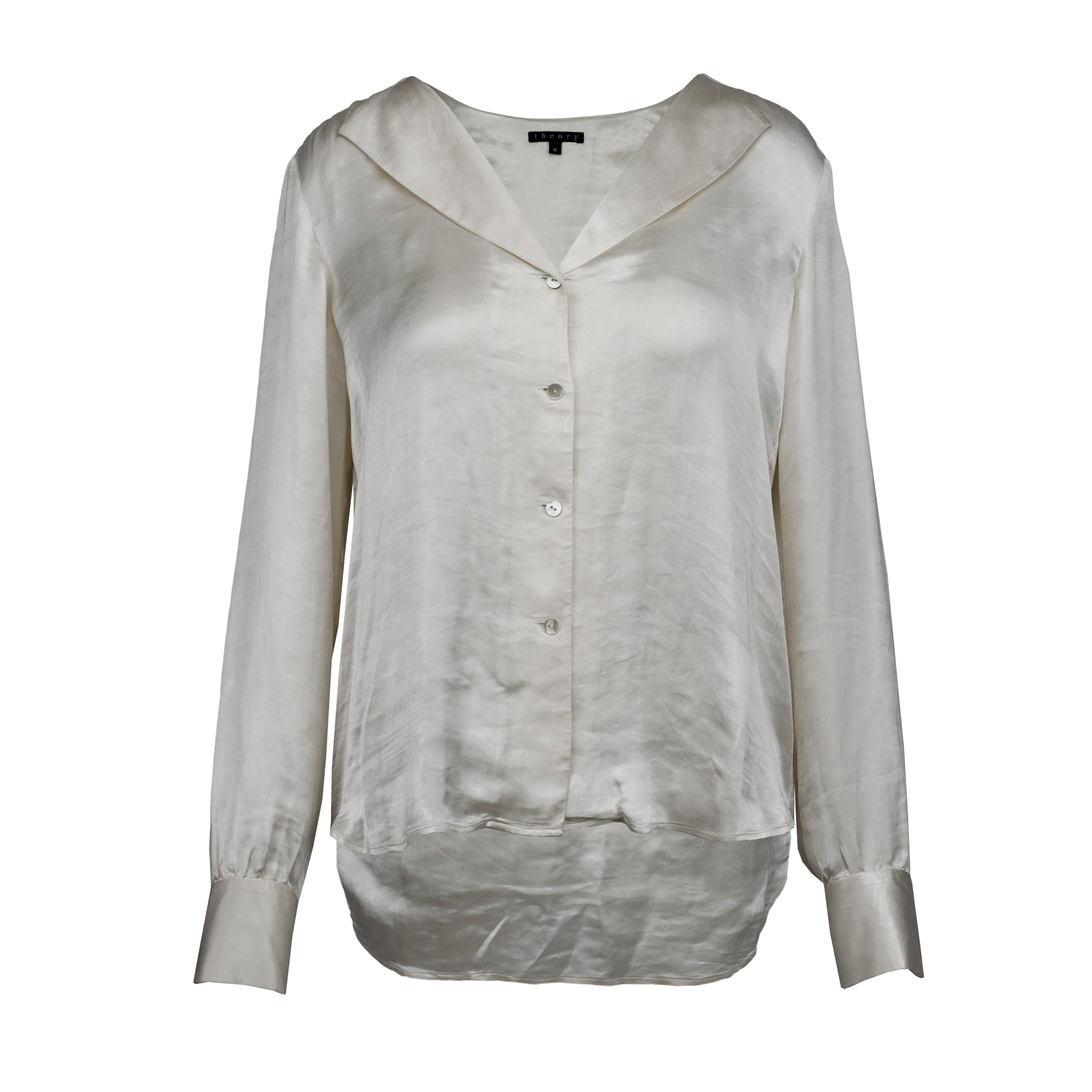 This long sleeve shirt by Theory is crafted from polyester satin for a smooth, sleek look. The spread collar and button stand add a subtle touch of sophistication, while its unique shorter front length completes the look.