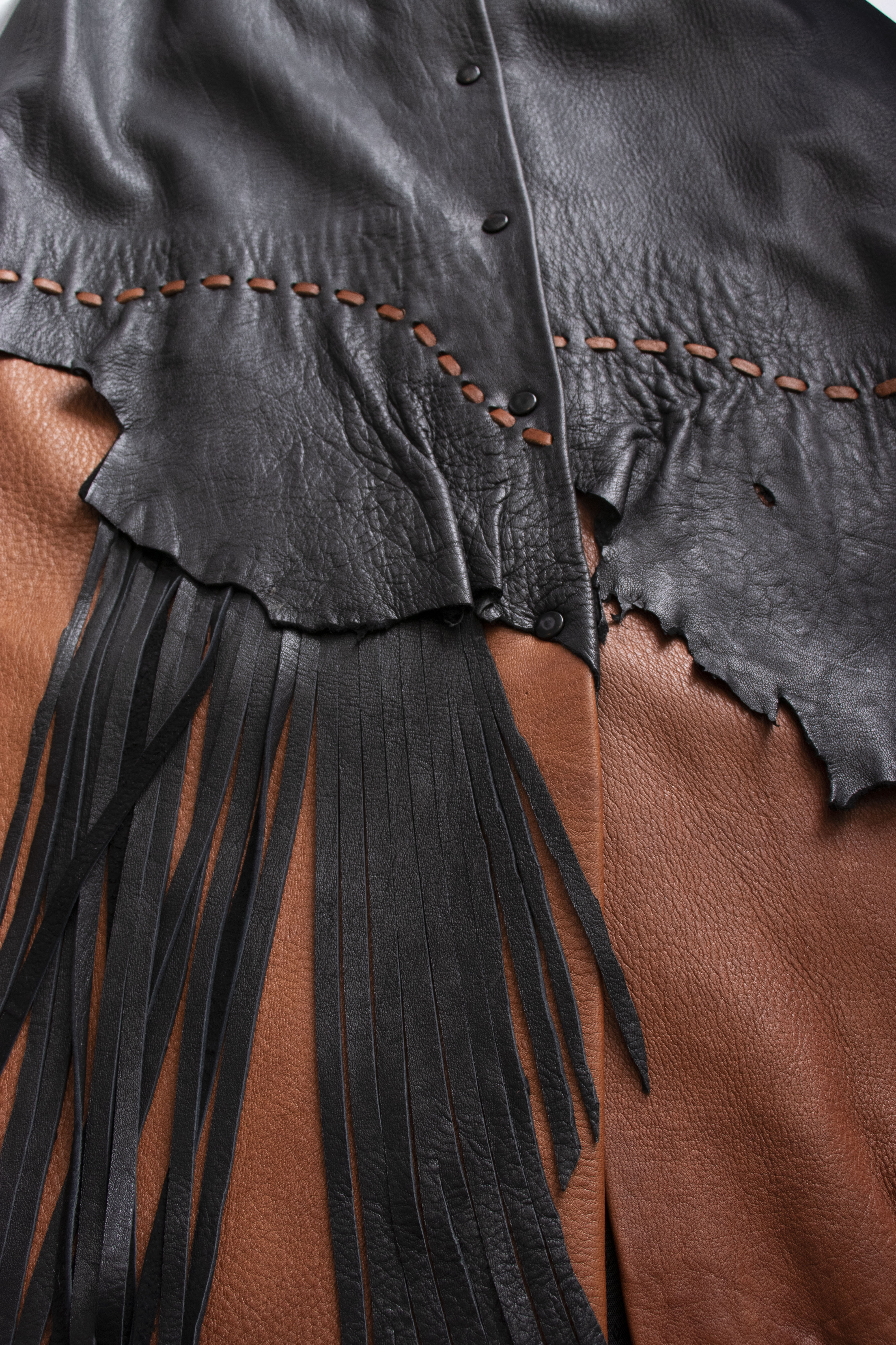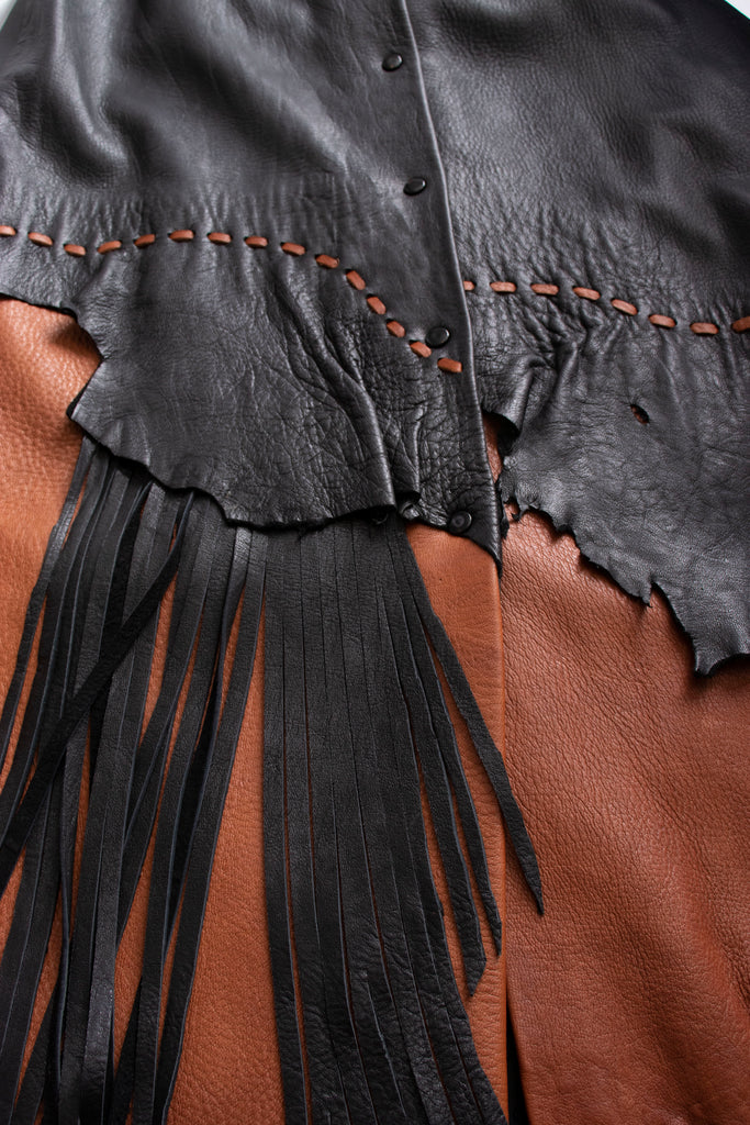 1990's Deerskin Leather Skirt Patchwork Style with Fringe.