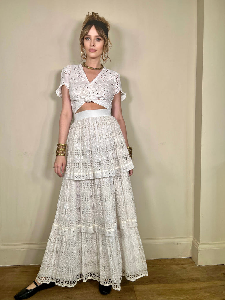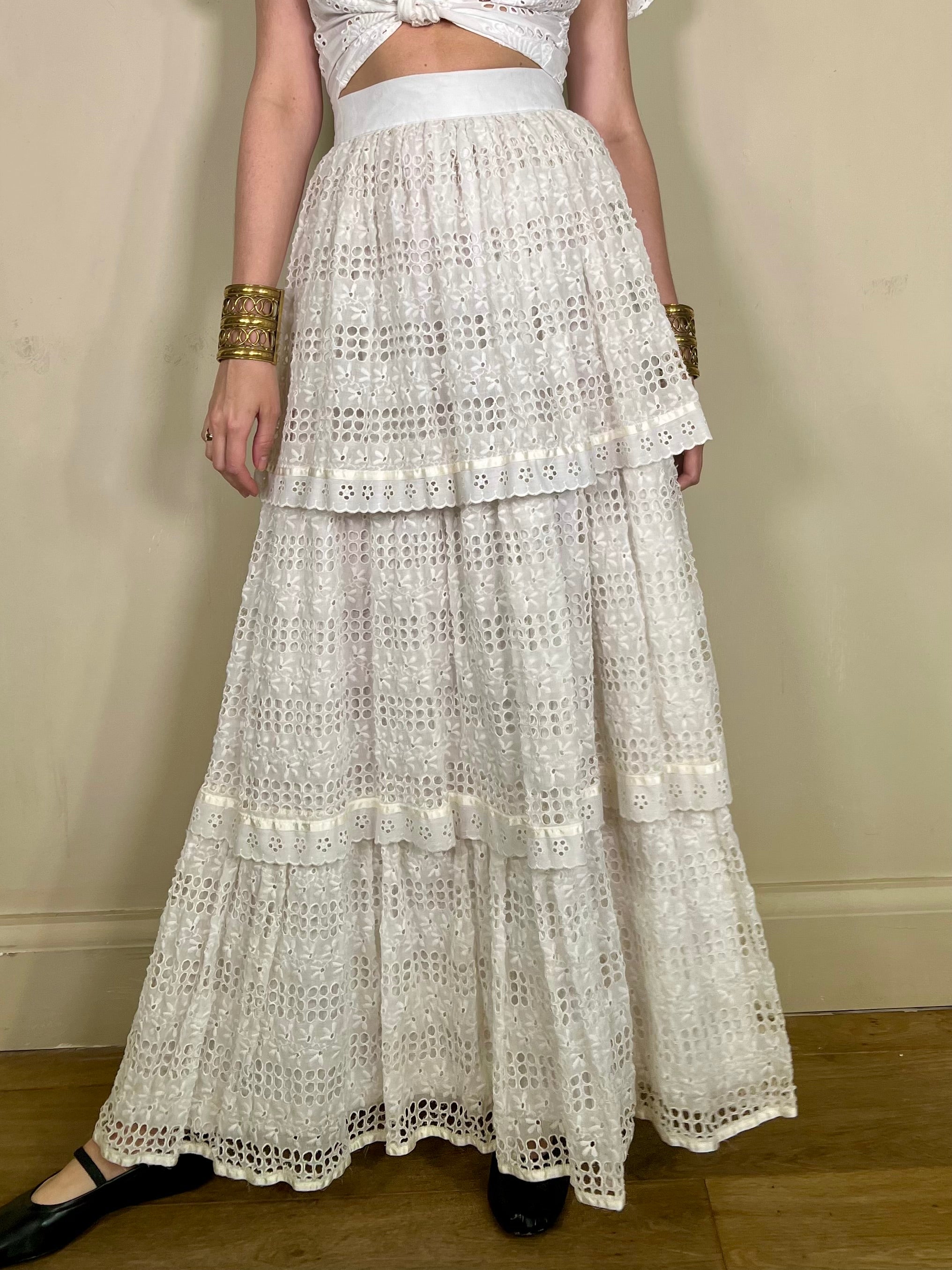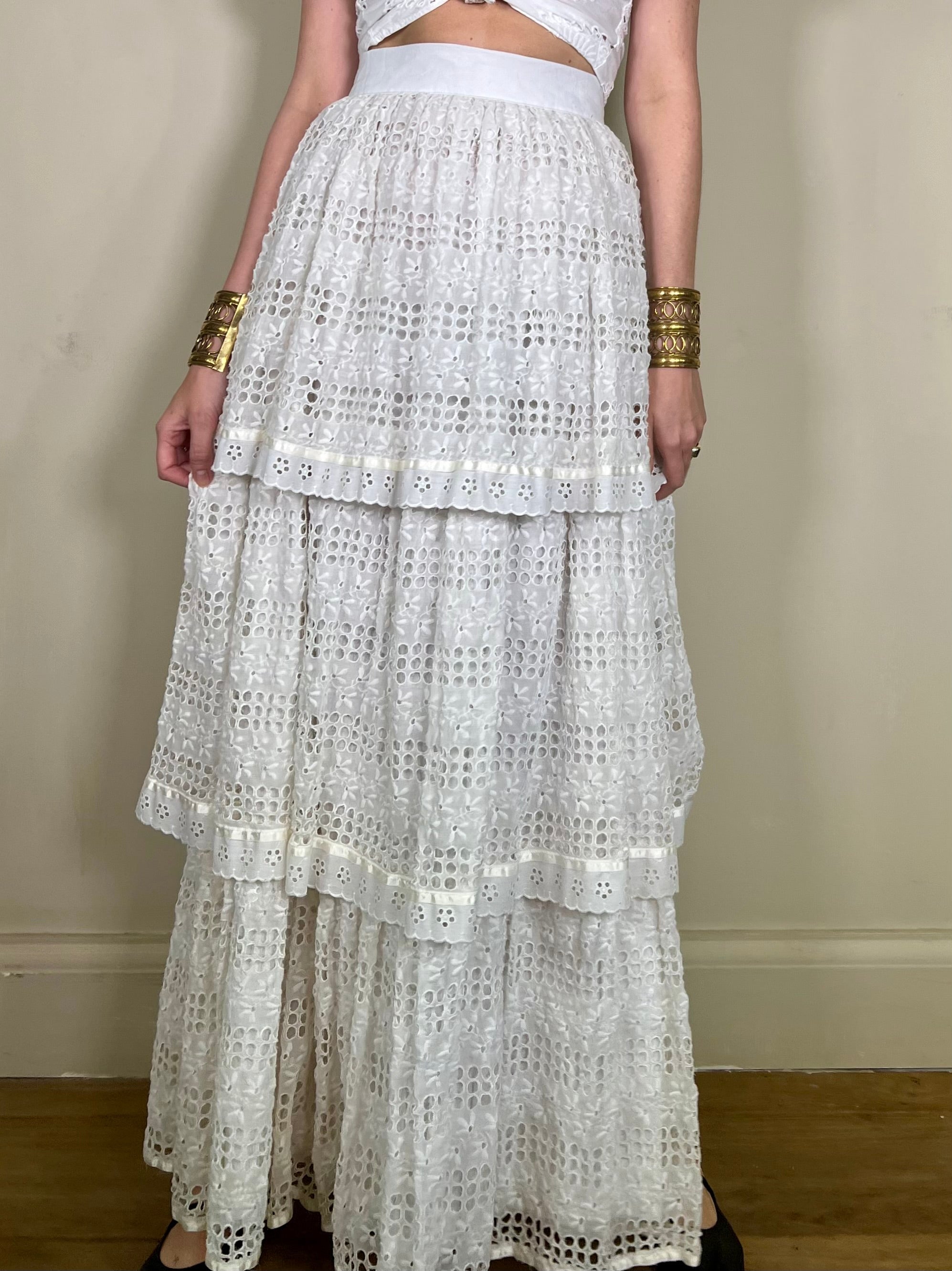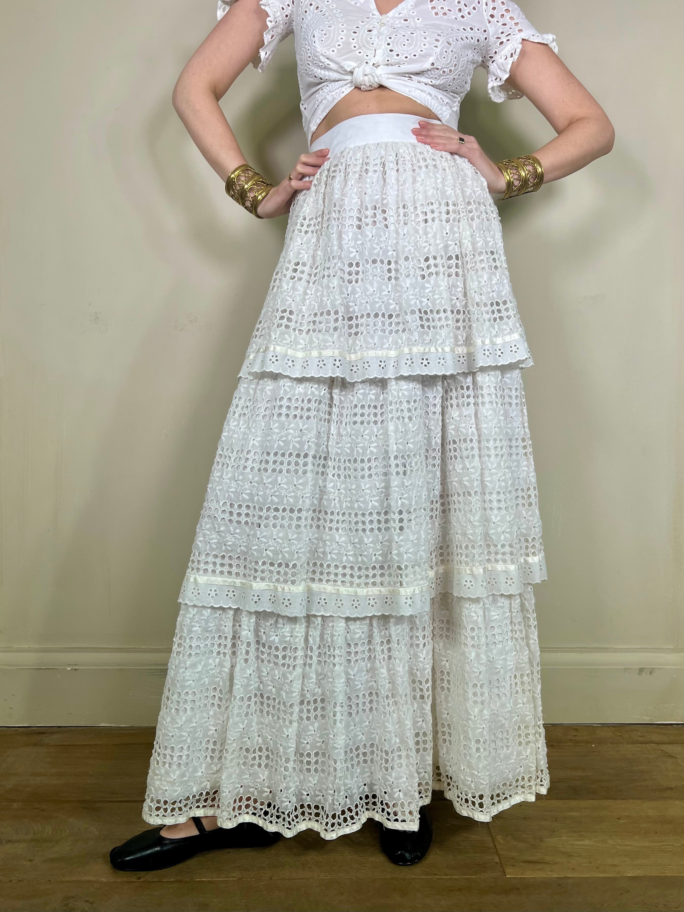 Caline, vintage eyelet tiered skirt