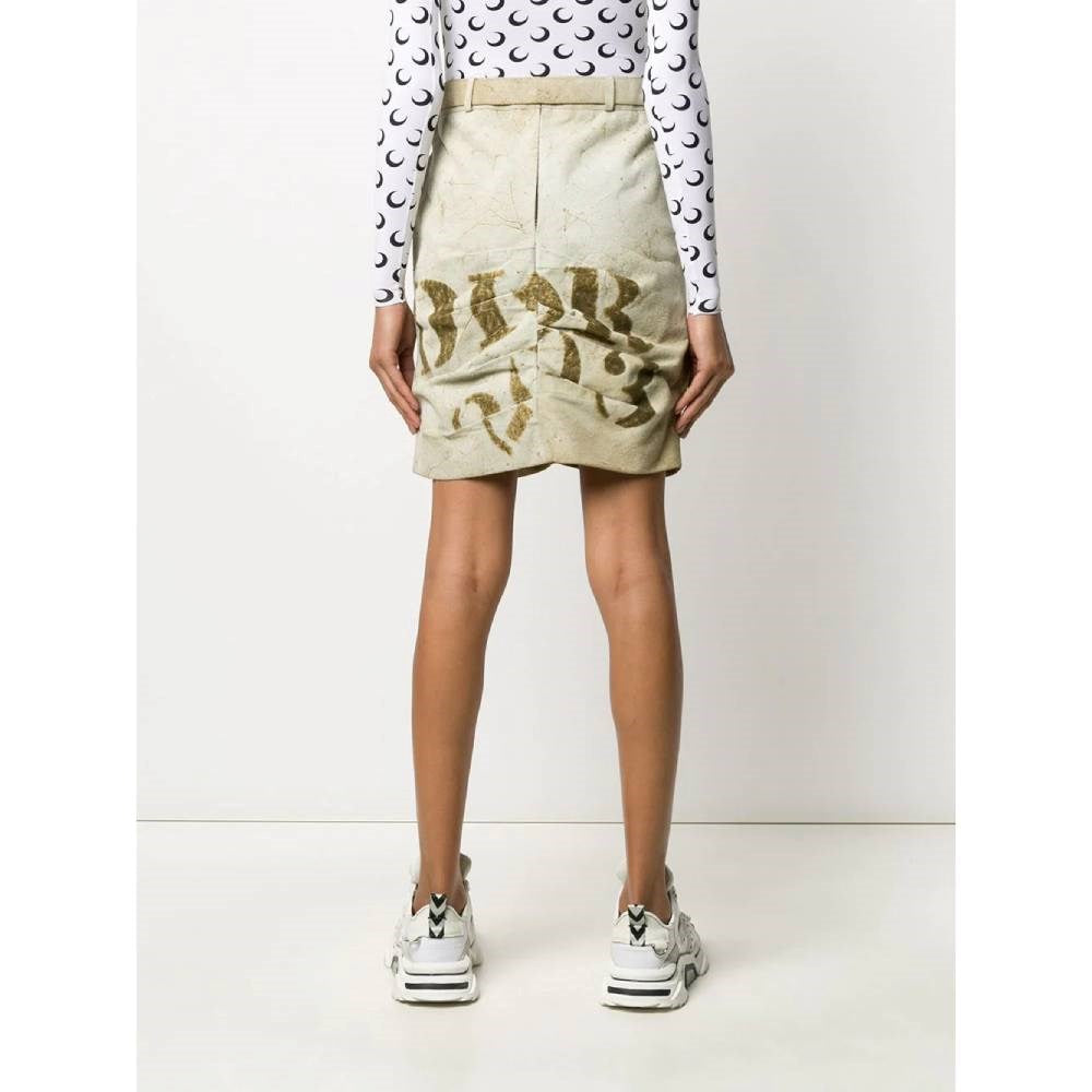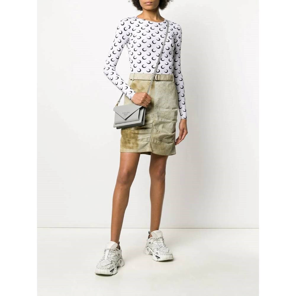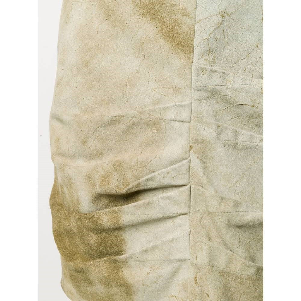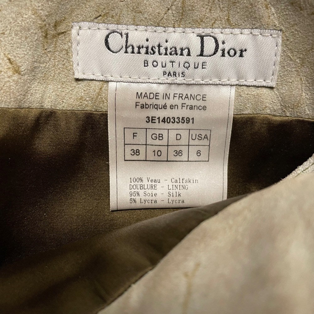 Dior light green moirè suede mini 2000s skirt with frontal curliness and two side welt pockets. Belt waist with metal buckle and back zip fastening.