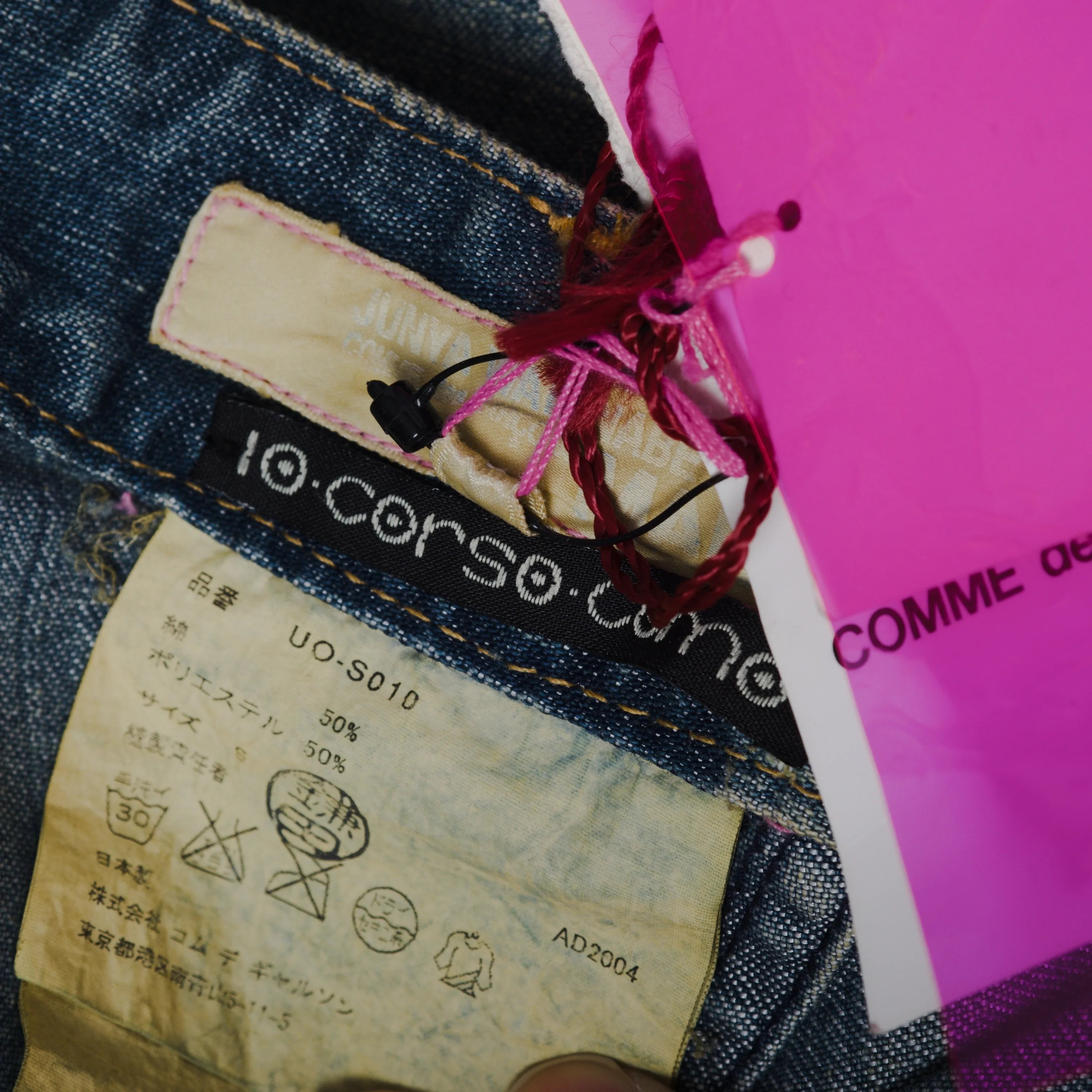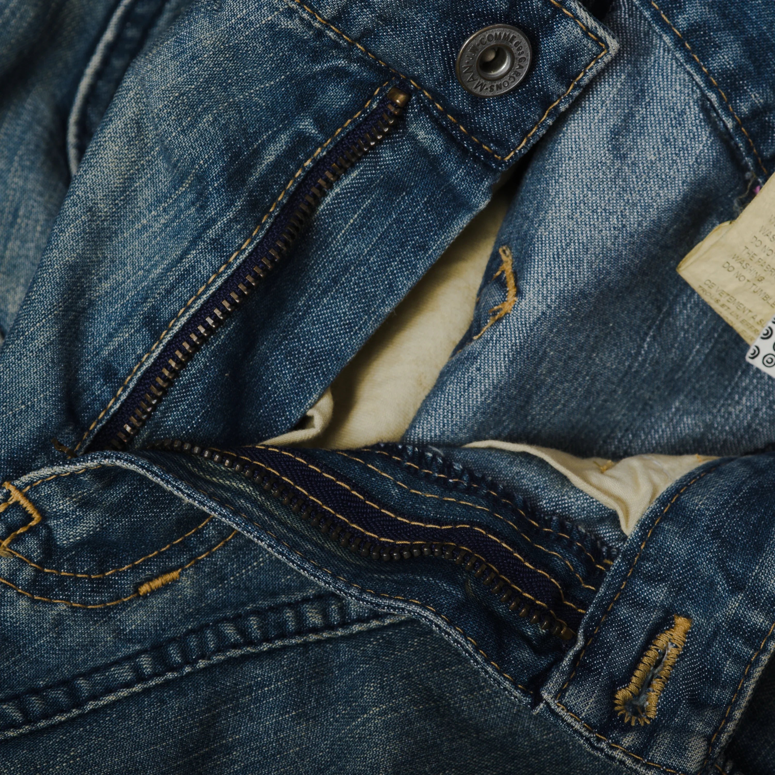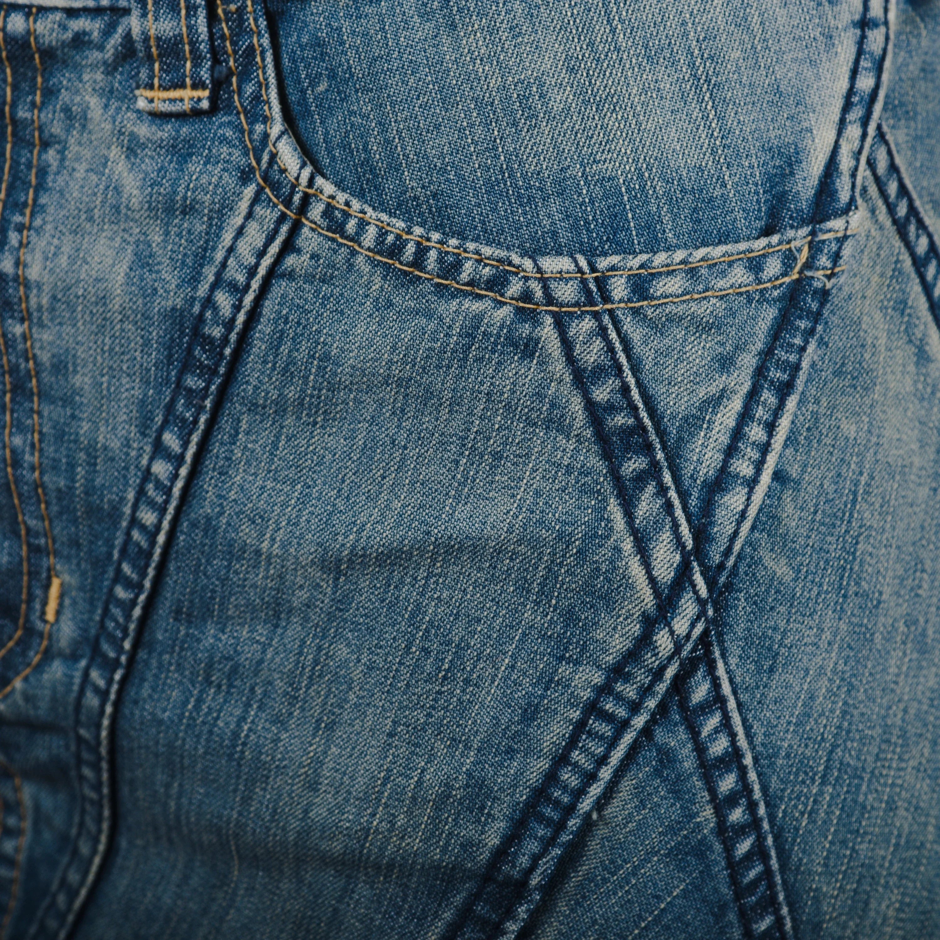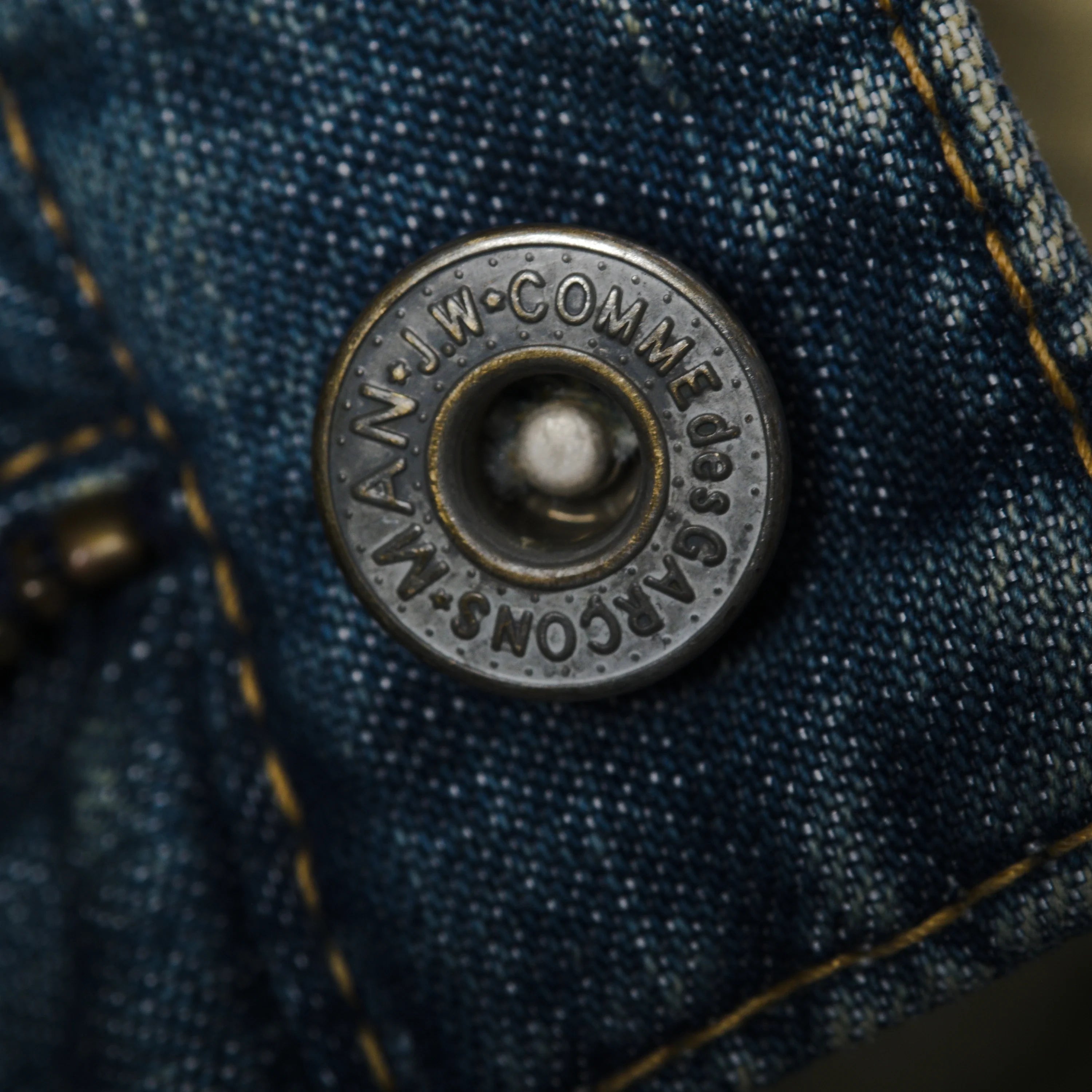 The piece combines high-quality denim with distinctive tailoring details, reflecting Junya Watanabe’s signature experimentation and innovation.