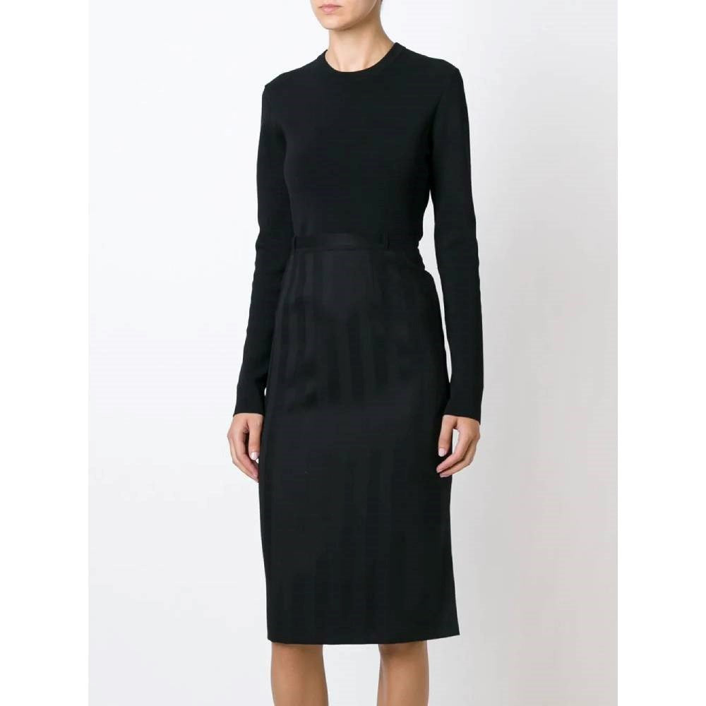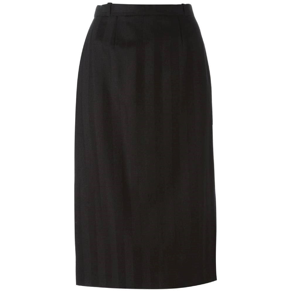 Jean-Louis Scherrer black wool straight midi 90s skirt with tone on tone stripes. Back zip closure.