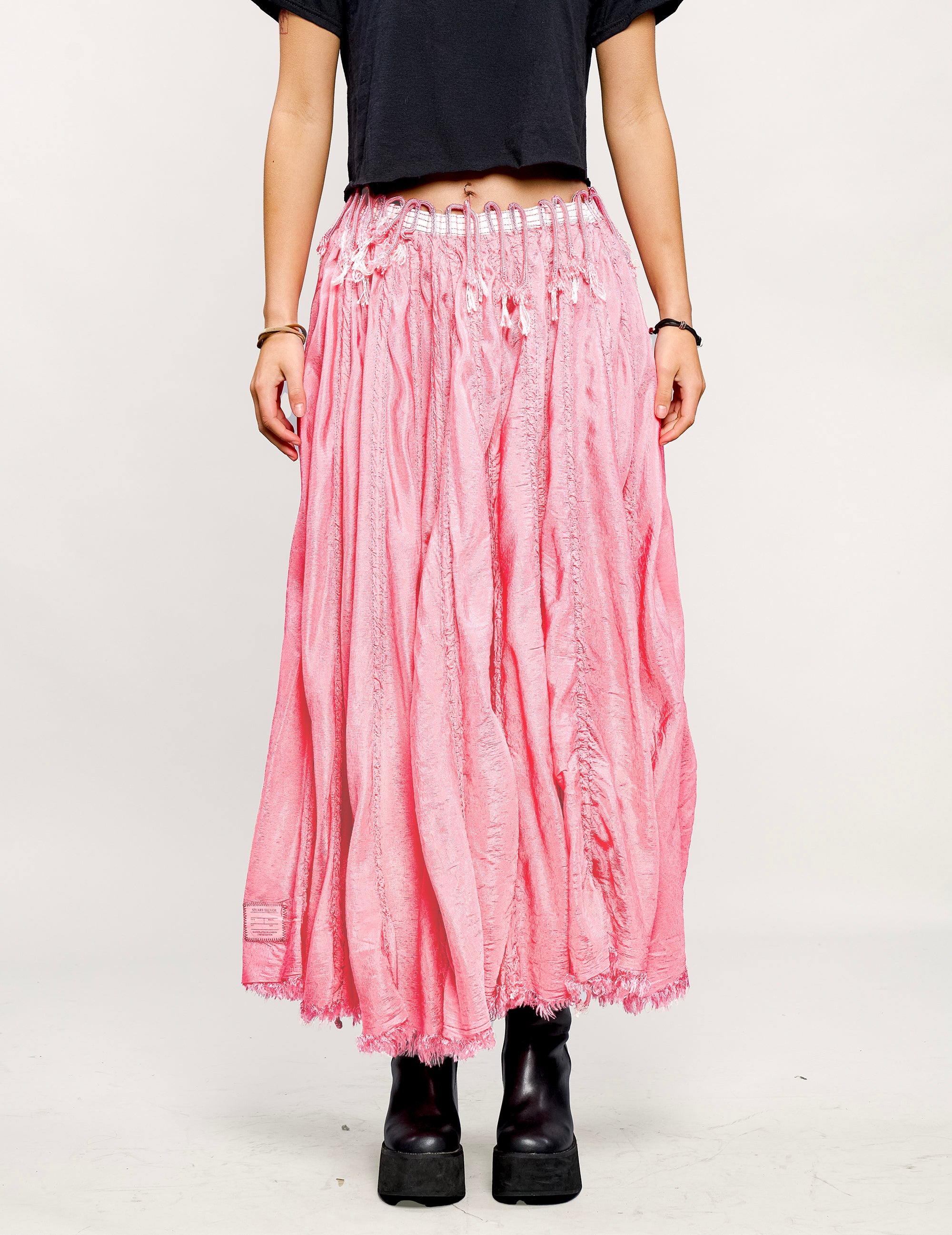 This super rare limited edition skirt is reconstructed from 1960s vintage RAF parachutes, hand-crafted in our East London tailoring shop into a gorgeous pink skirt.