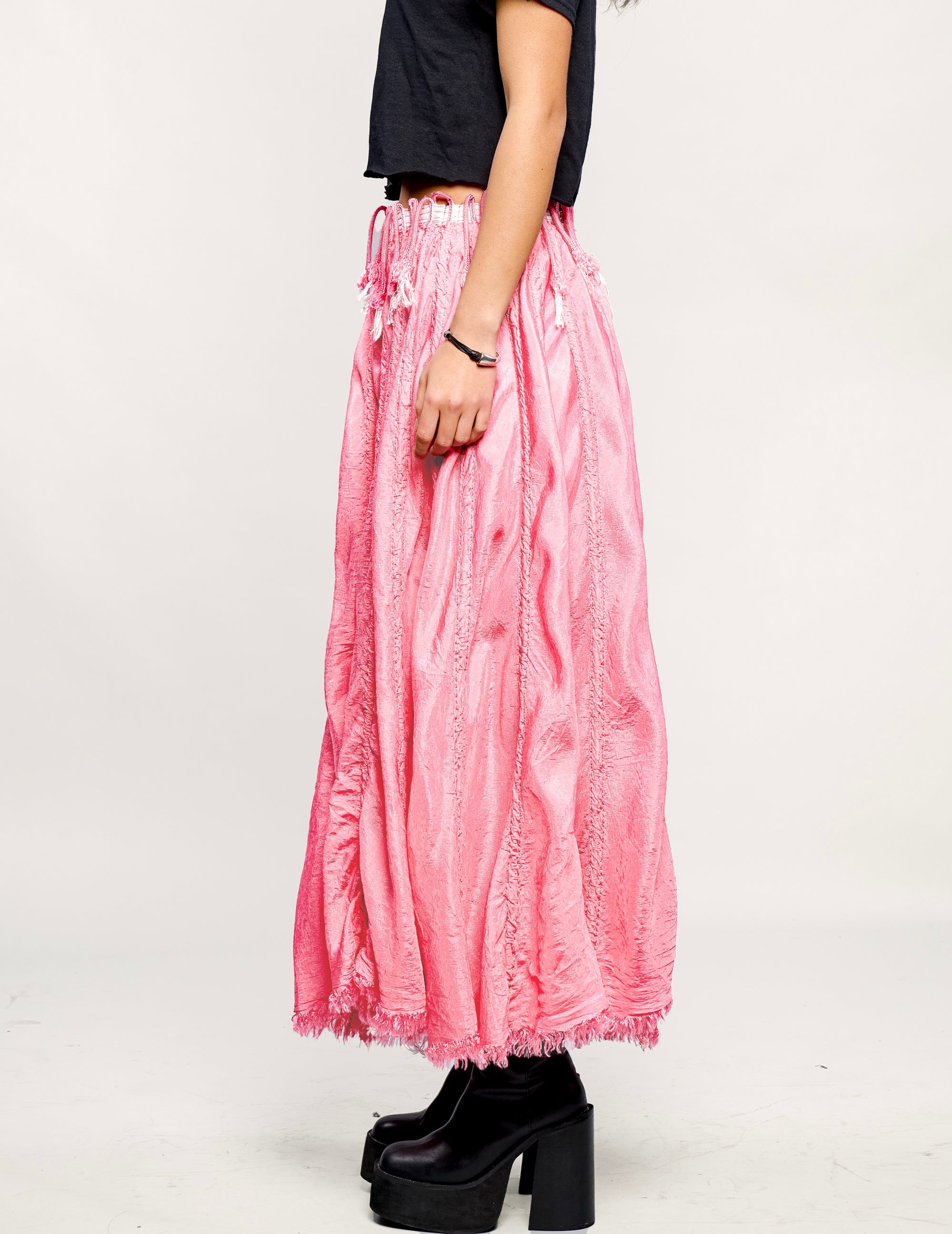 Super cool original pink fabric, with the original parachute ropes for fun and frolics you can wear this floor length or ruched up short in several different styles! So much fun!