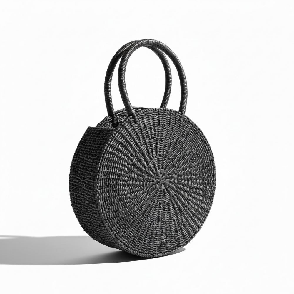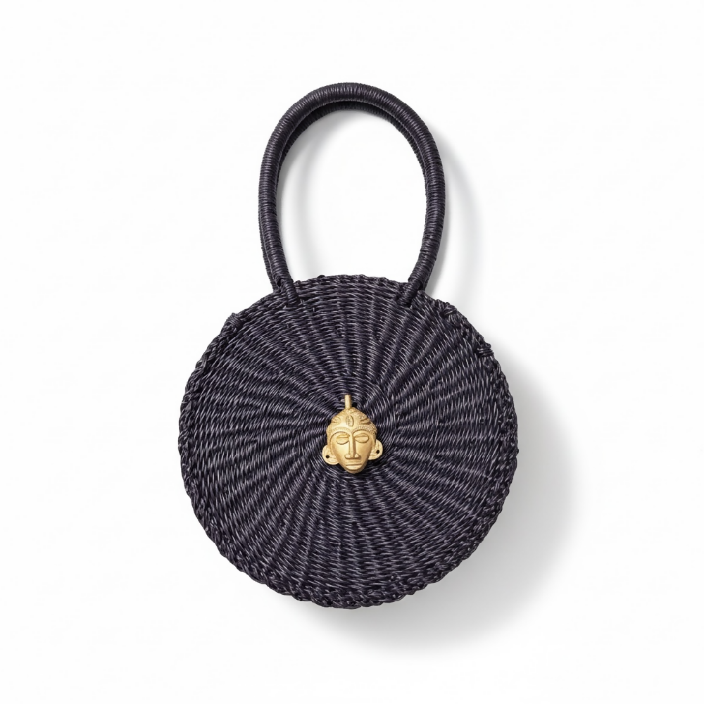 Esengo Round Bag – Midnight Black (Mini) | Handwoven Elephant Grass