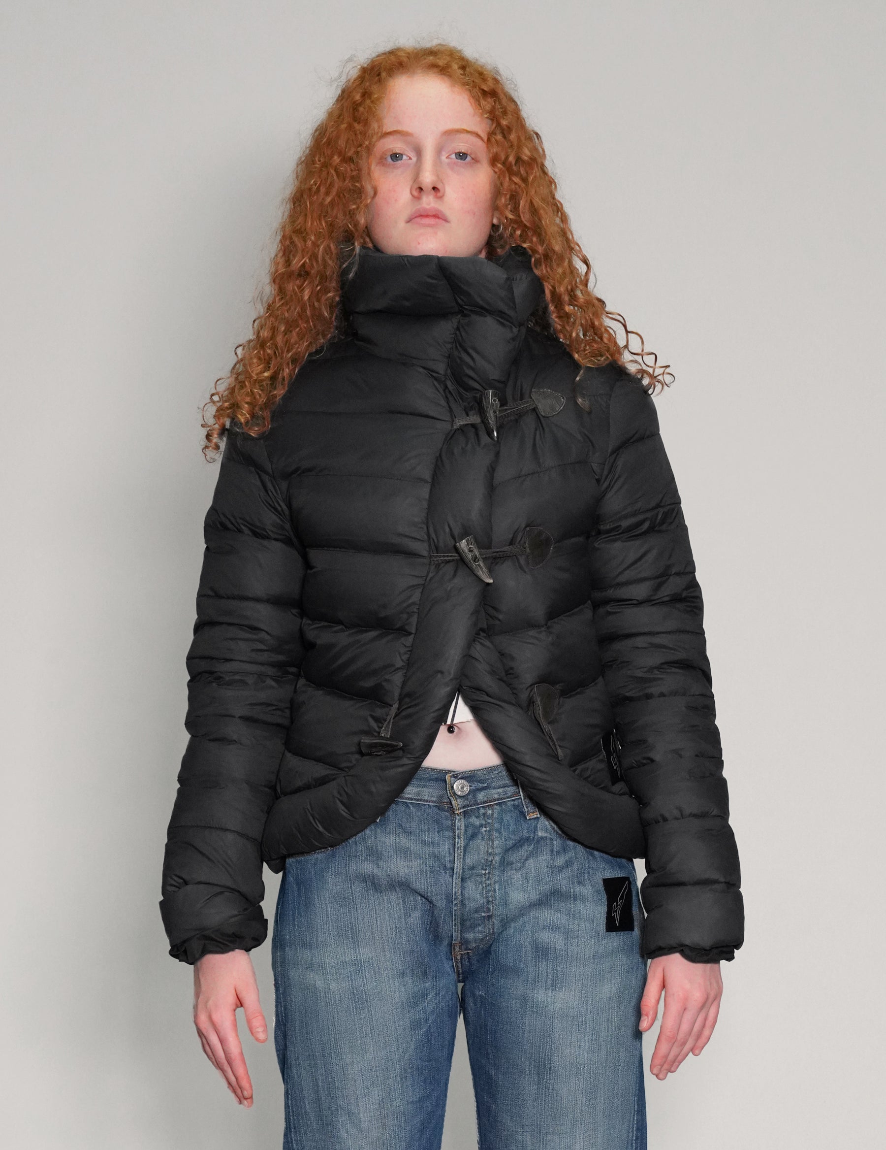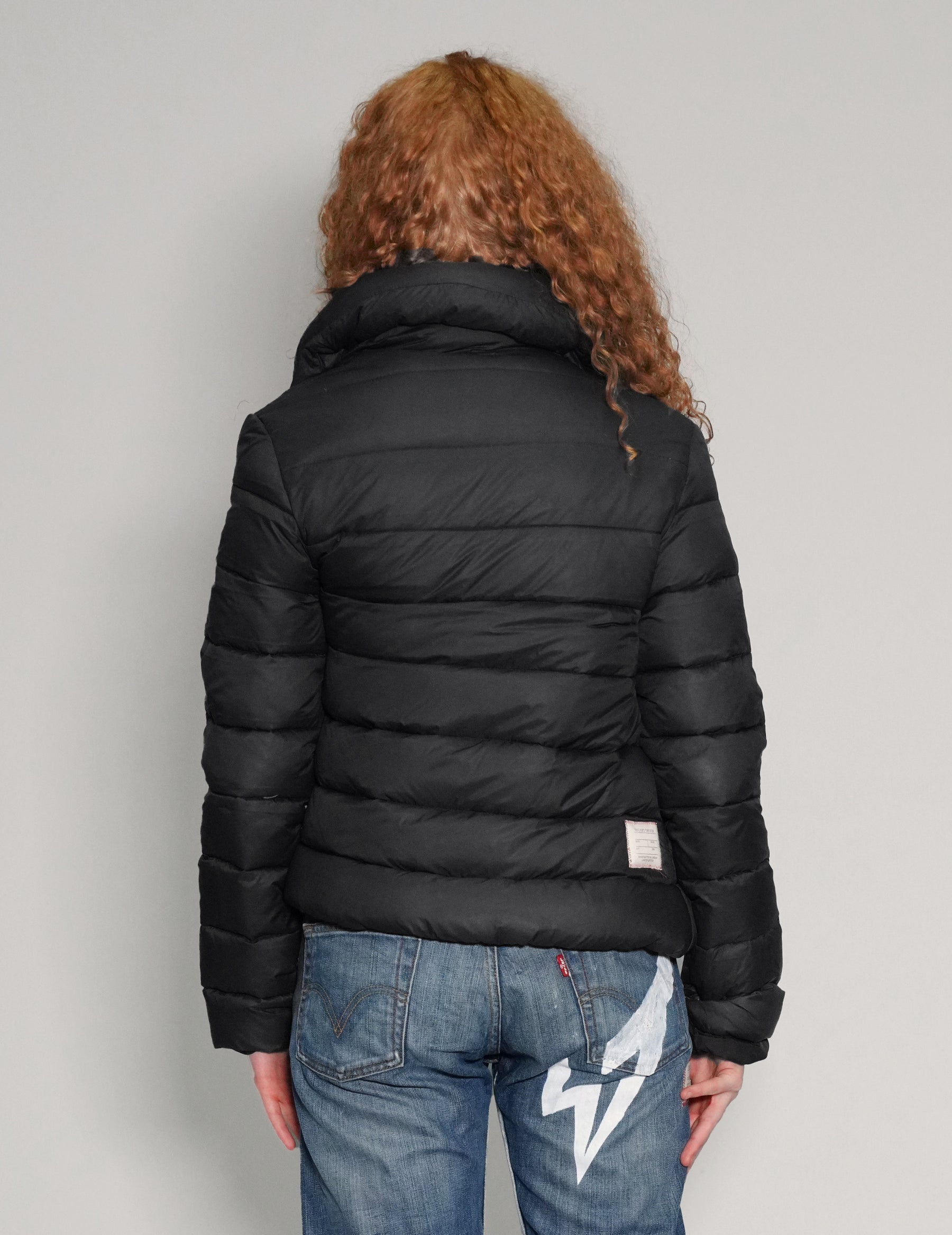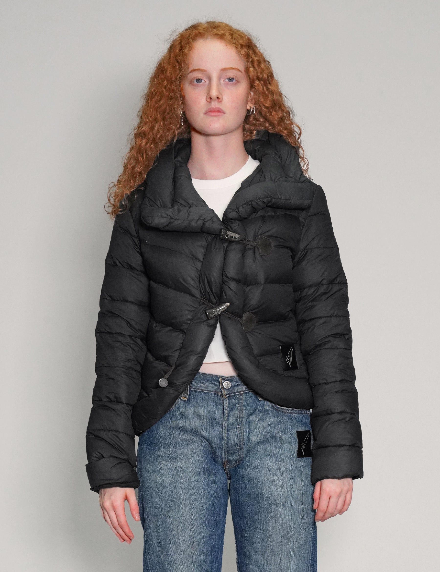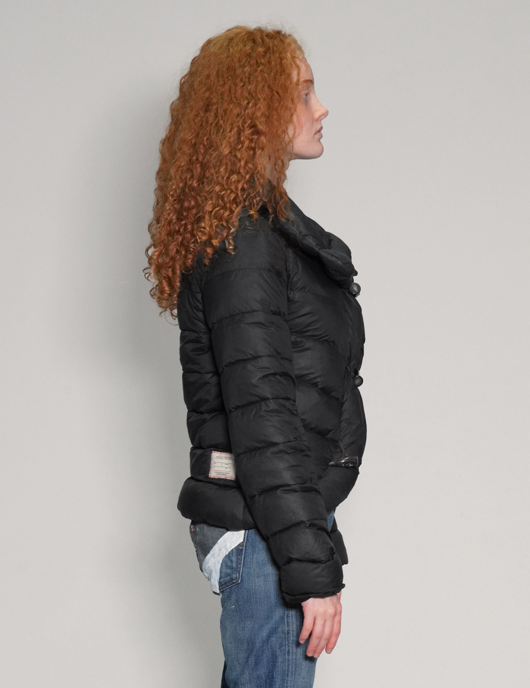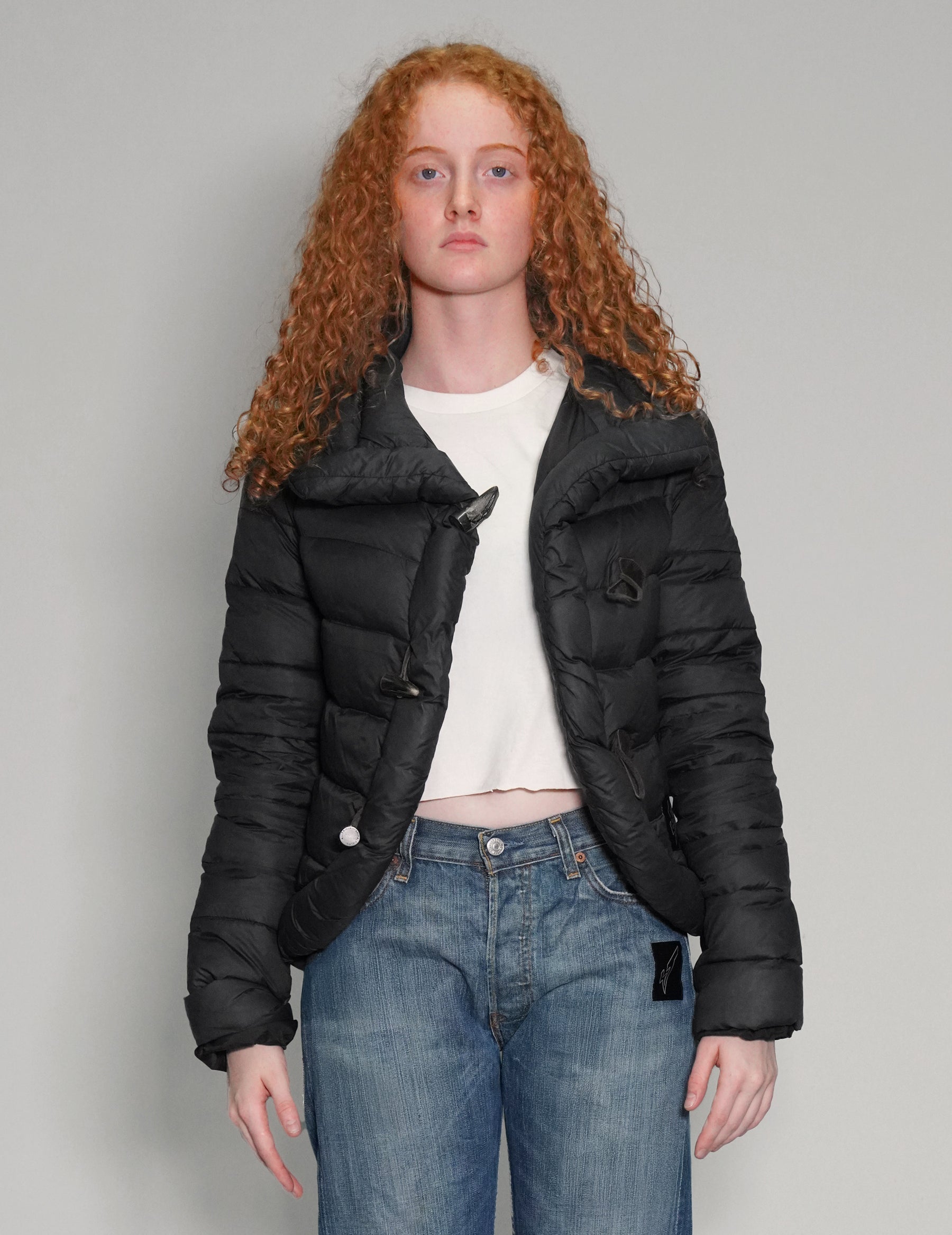 Vintage All Saints cropped puffer jacket, 100% Polyester, with wooden toggle fastening front. Circa 00's. Large turtleneck style collar, hip pockets and warm construction.