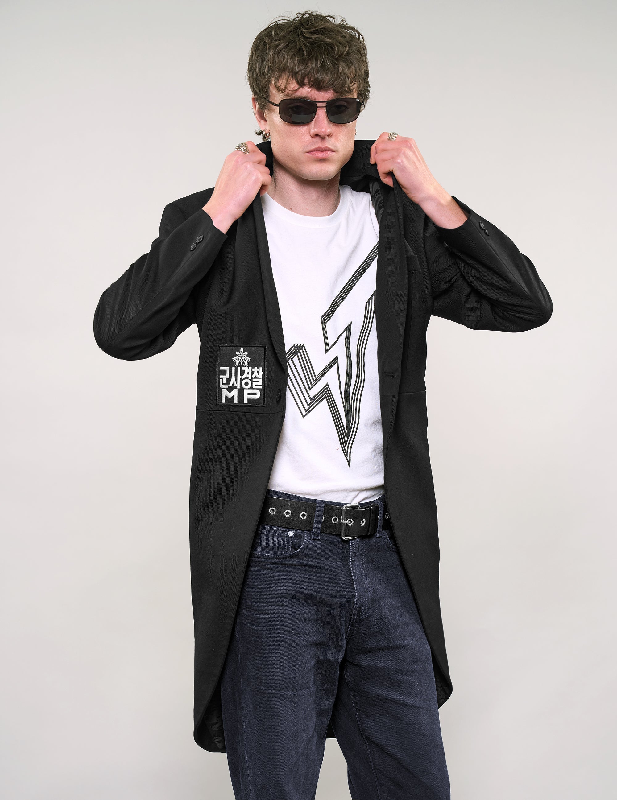 Vintage Edwardian tailcoat, customised with South Korean army patch. Circa 1920's. 100% Wool. Features inside breast pocket and 3-button fastening front.