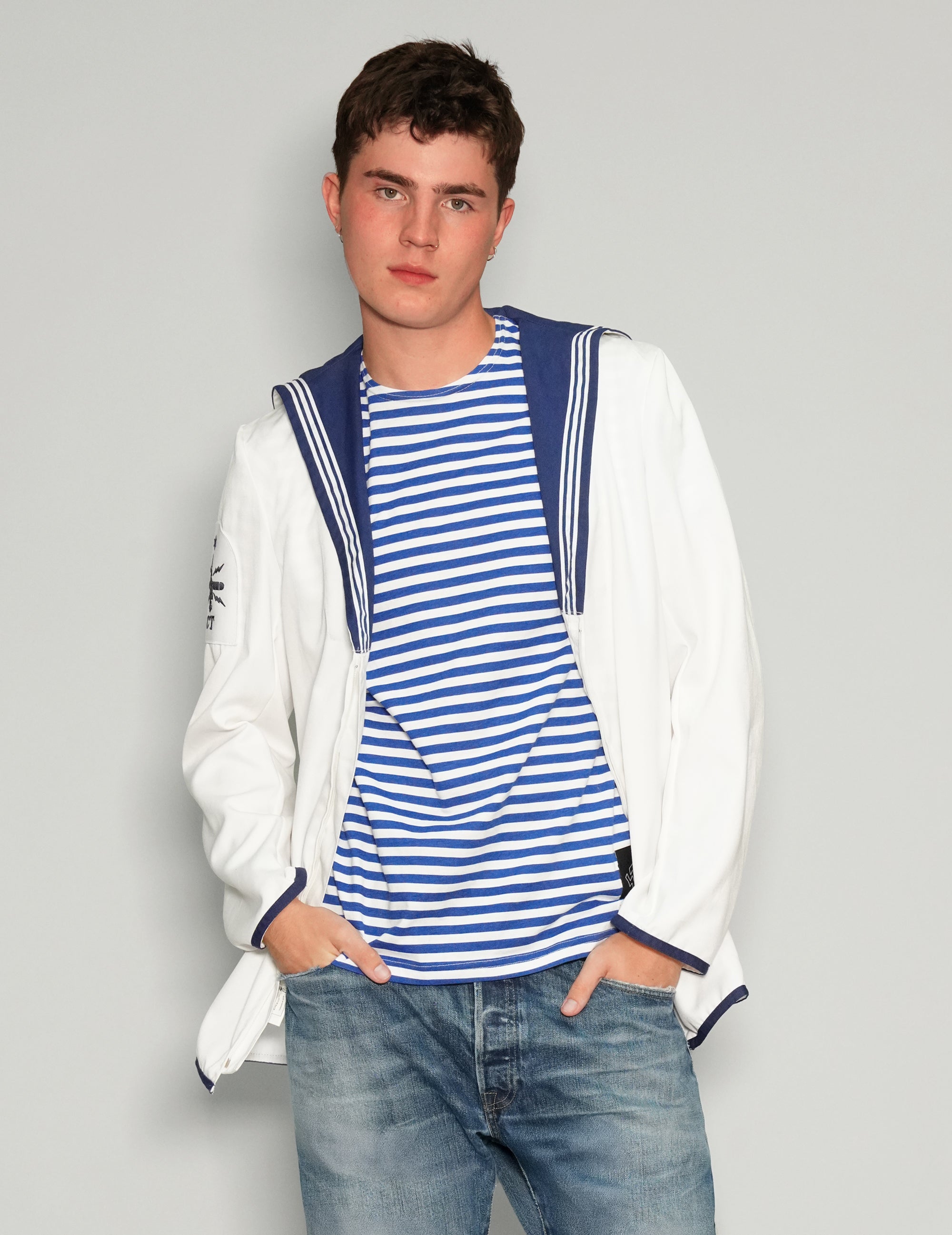This uniform was first worn by the Royal Navy in the 18th century, and eventually popularised by Queen Victoria after dressing her son, Prince Albert Edward, in one that had been made for him aboard the royal yacht.