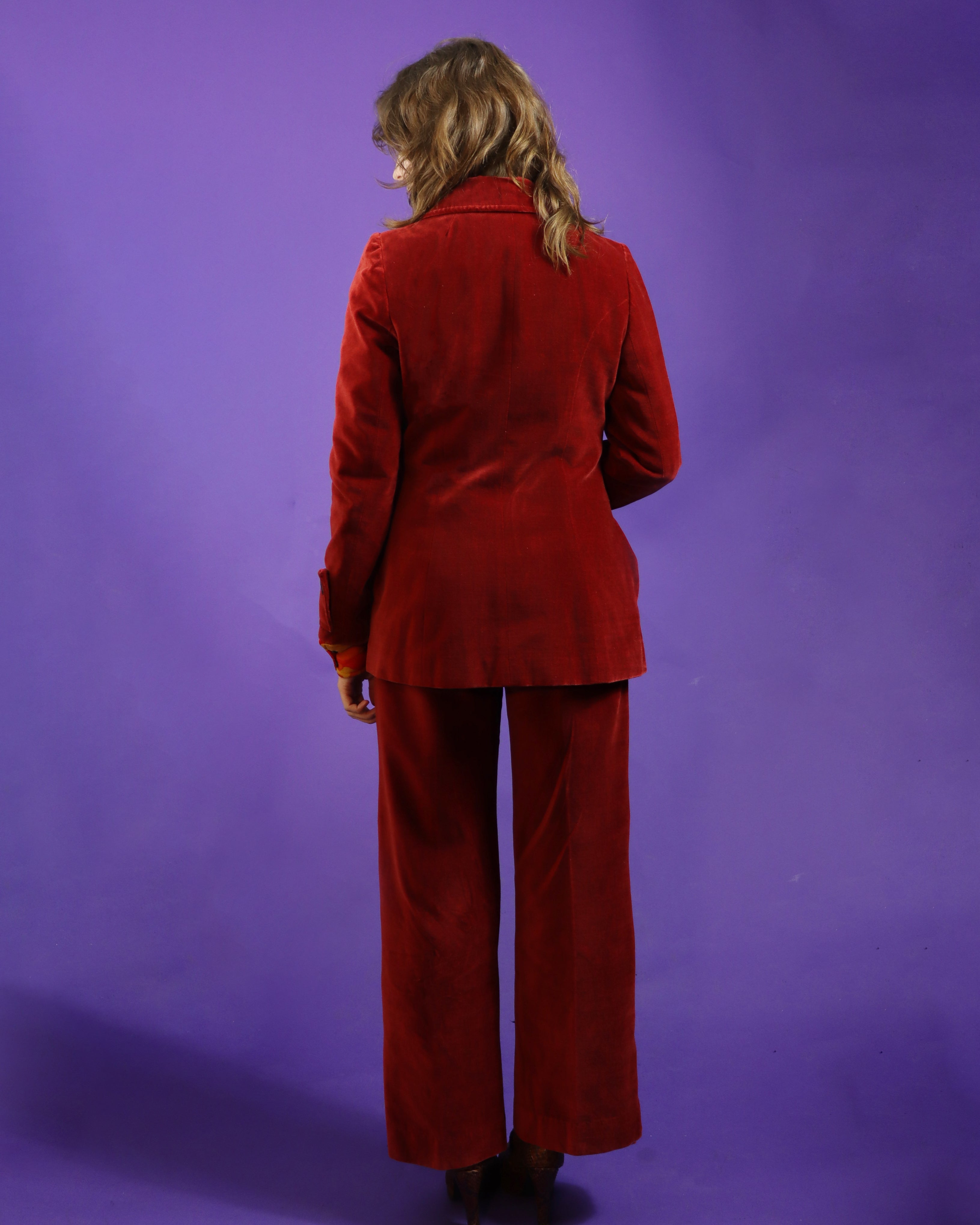 RESERVED: Vintage 1970s Dark Red Velvet Suit