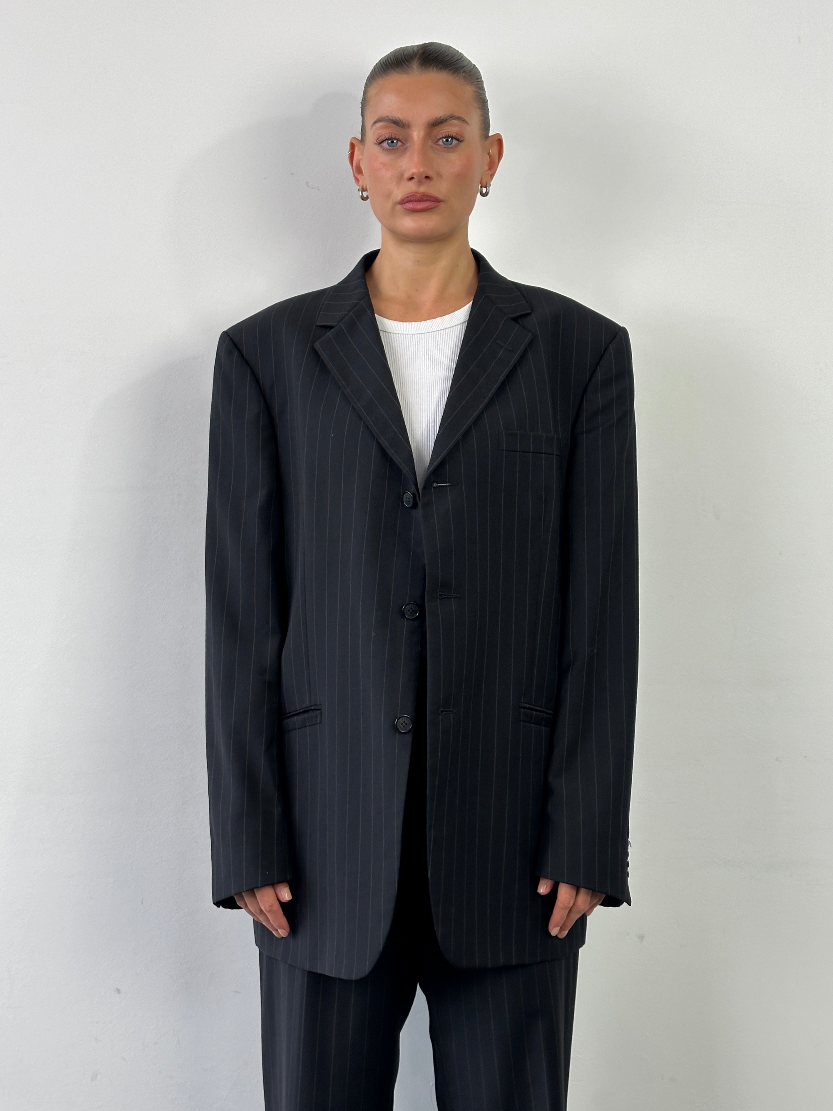 Measurements: blazer chest 44”, sleeve 26”, length 32”, shoulder 19”