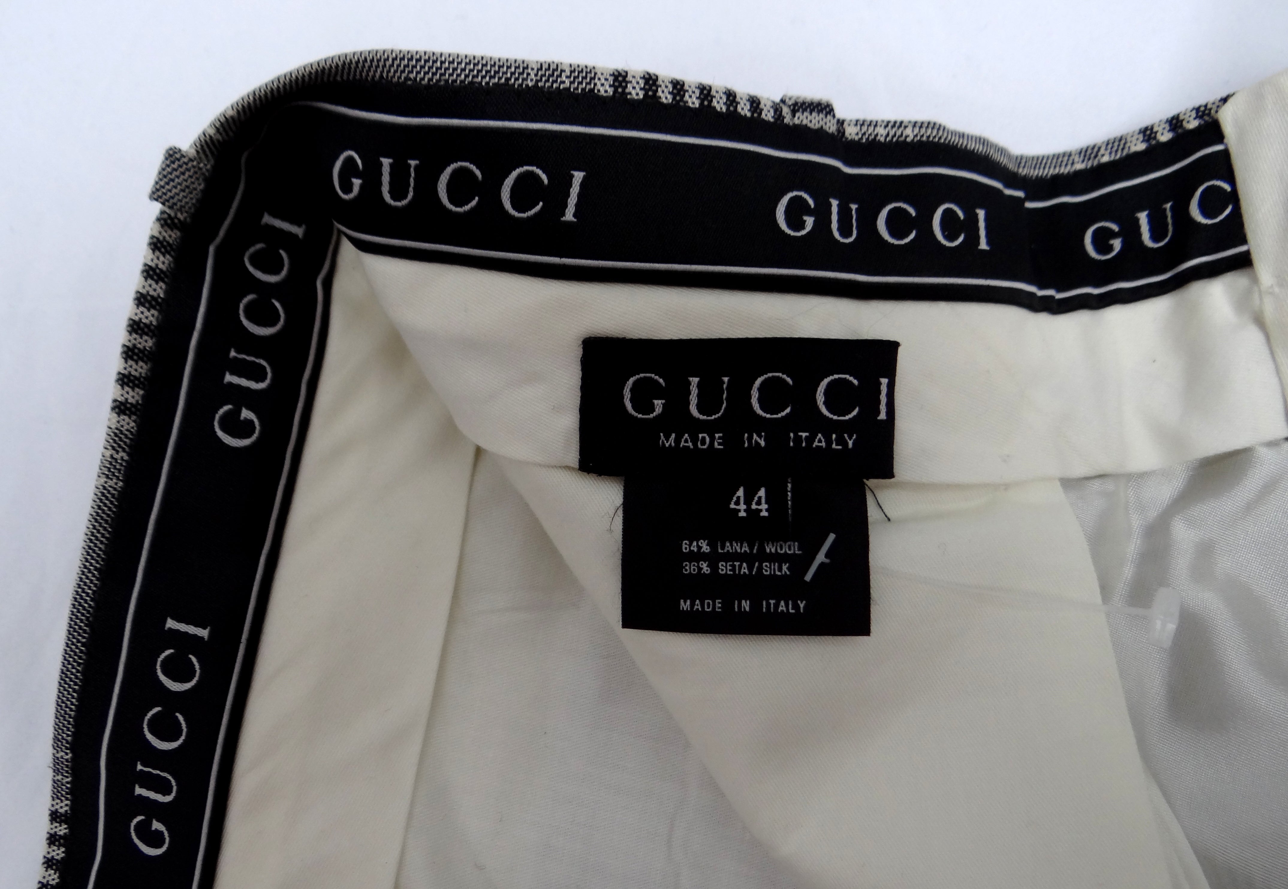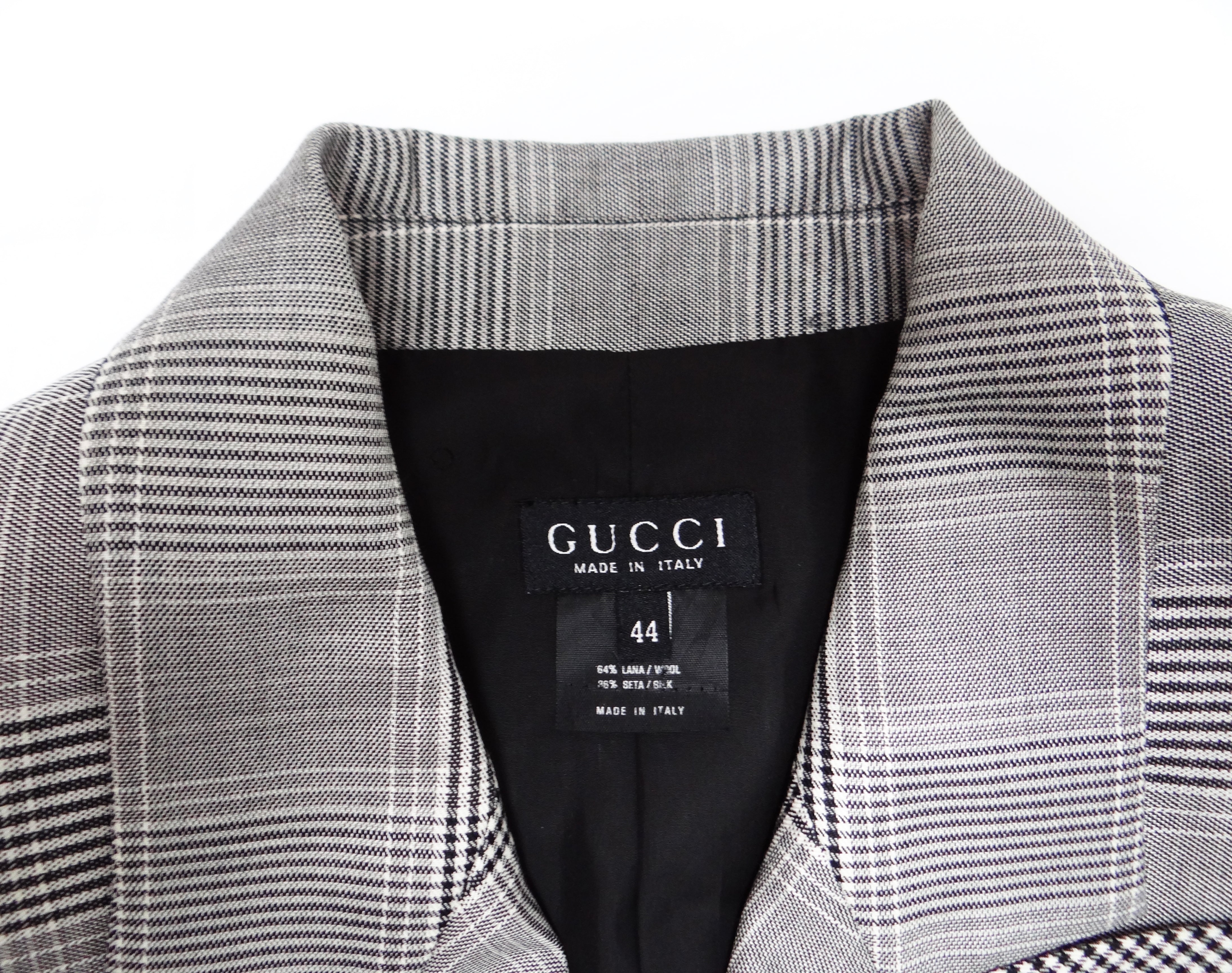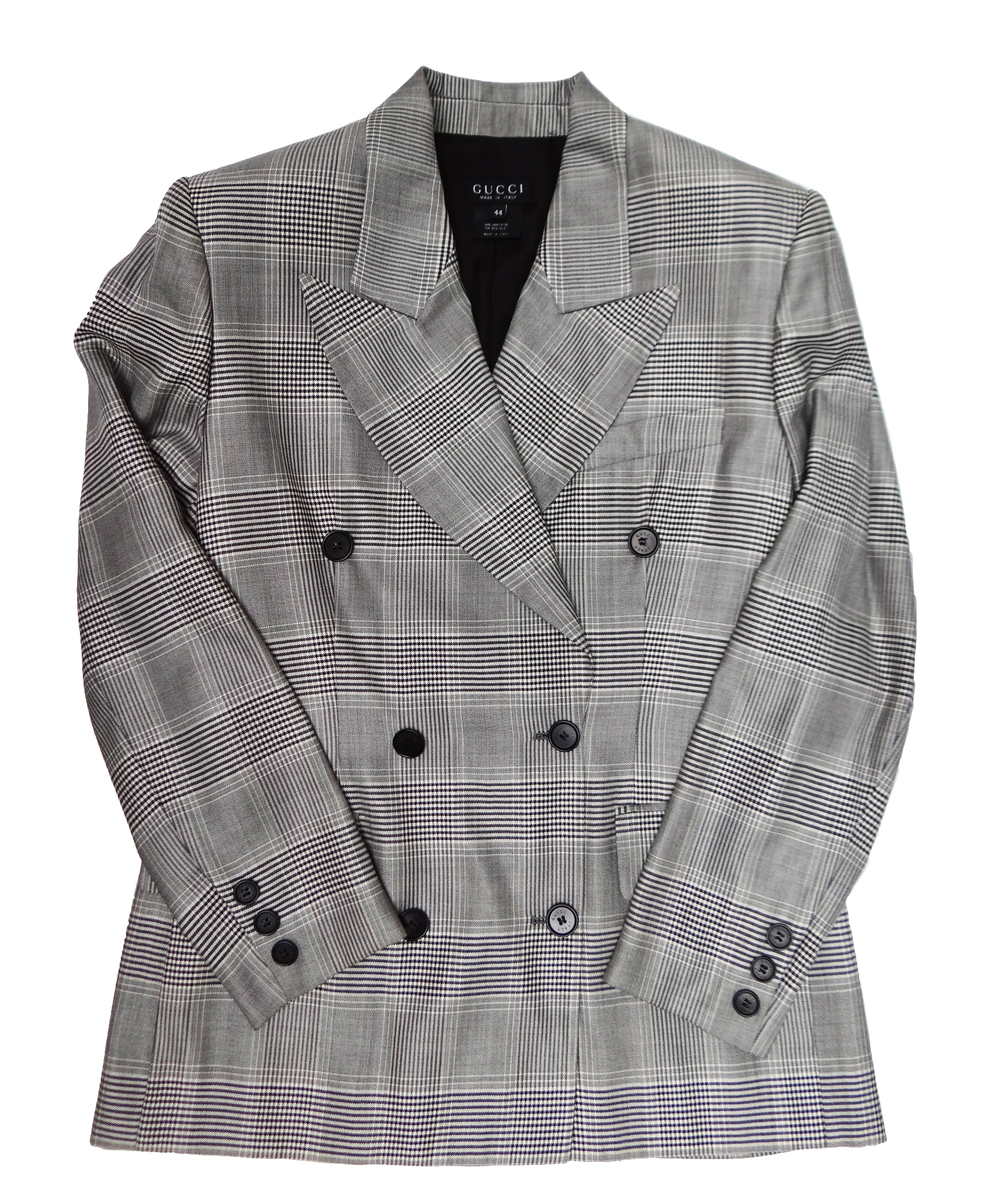 A superb double breasted tailored suit by Gucci, in Prince of Wales Check wool and silk mix.