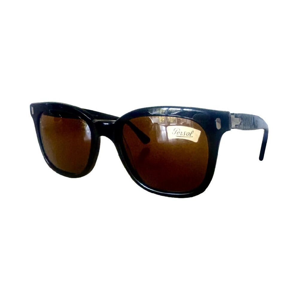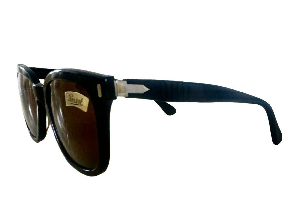 A rare pair of Vintage 1980’s Persol Ratti Black Silver Square Classic sunglasses brown lense, brand new, never been worn, they still have the original Persol sticker on the lense