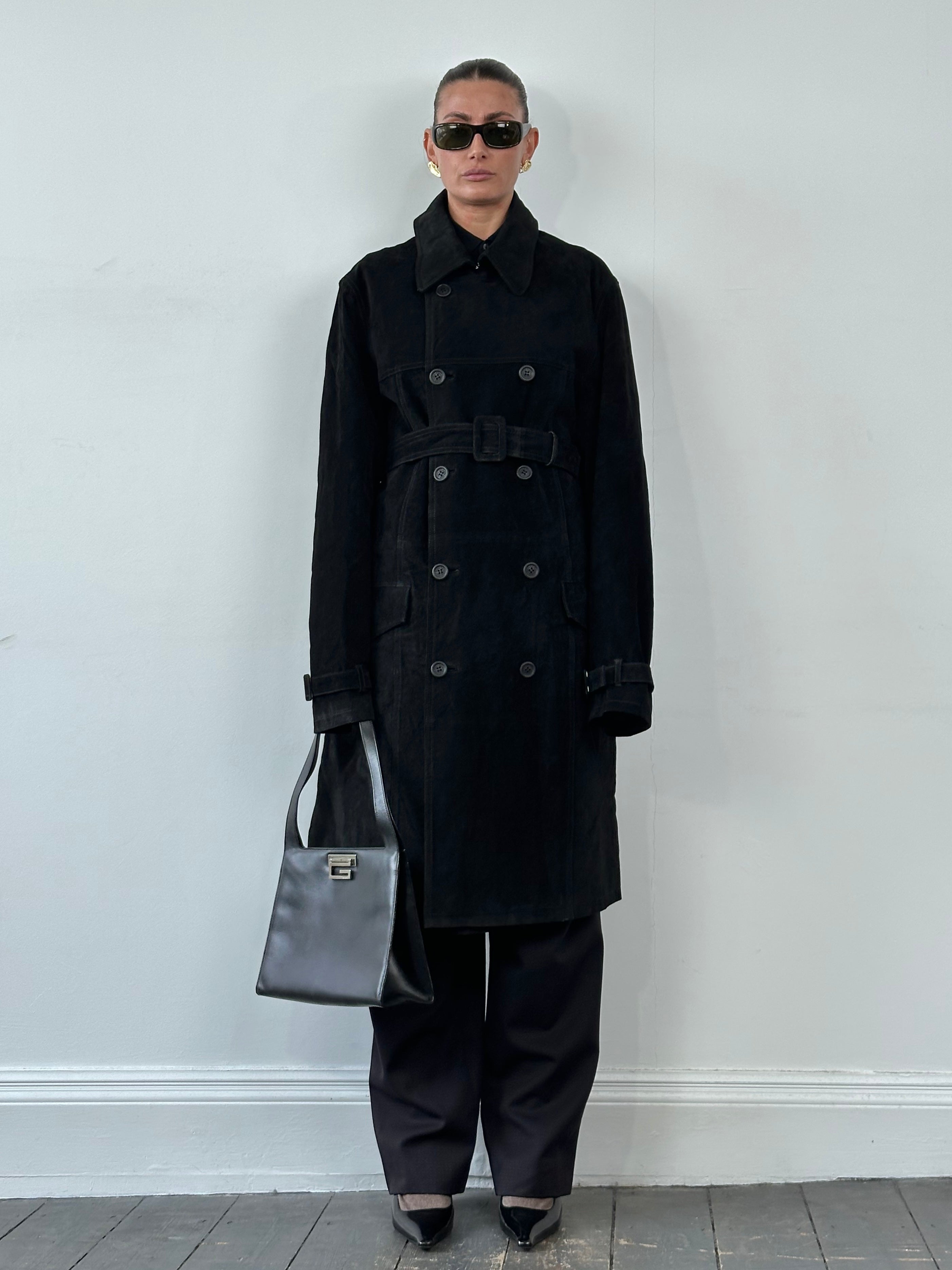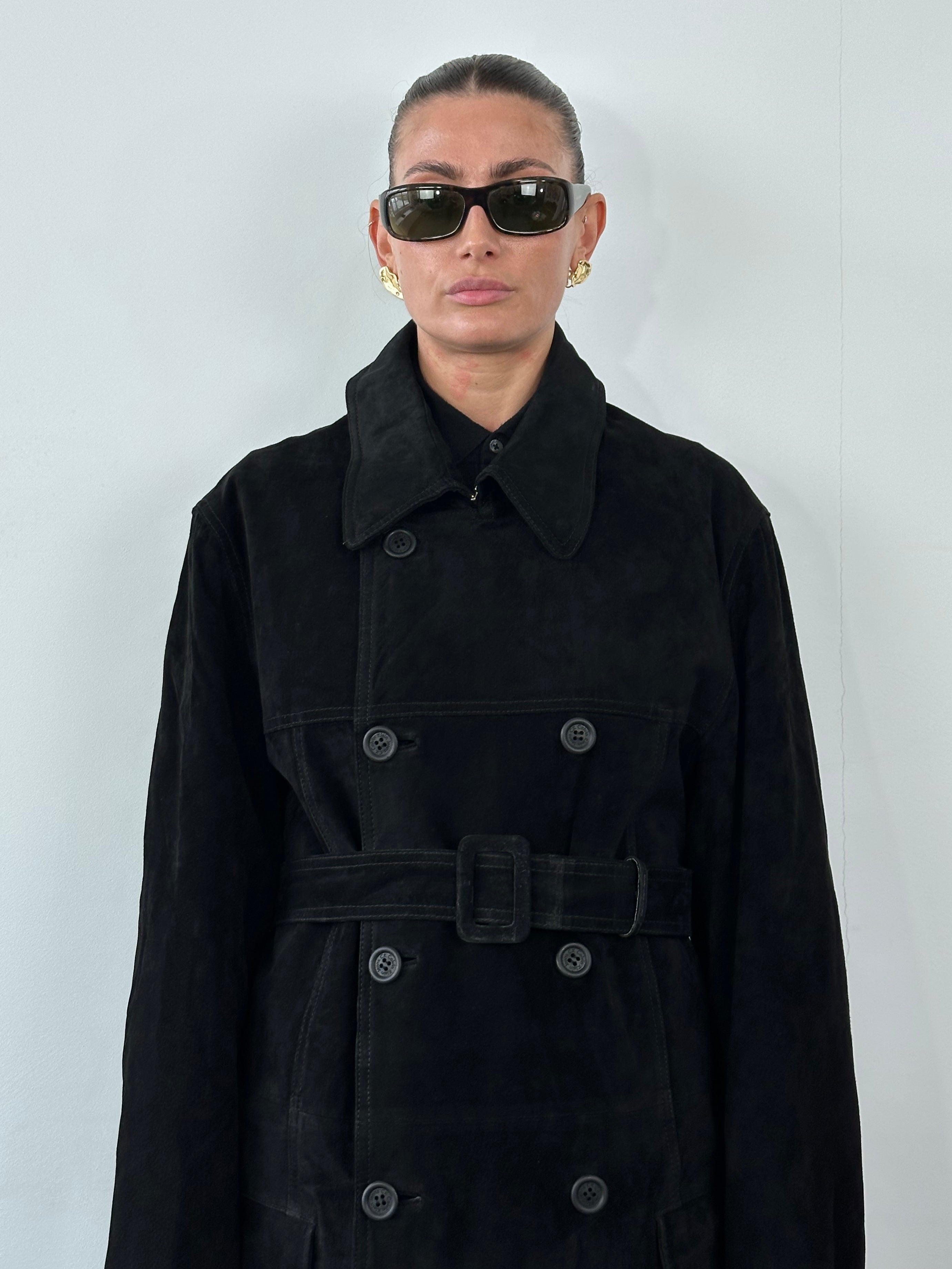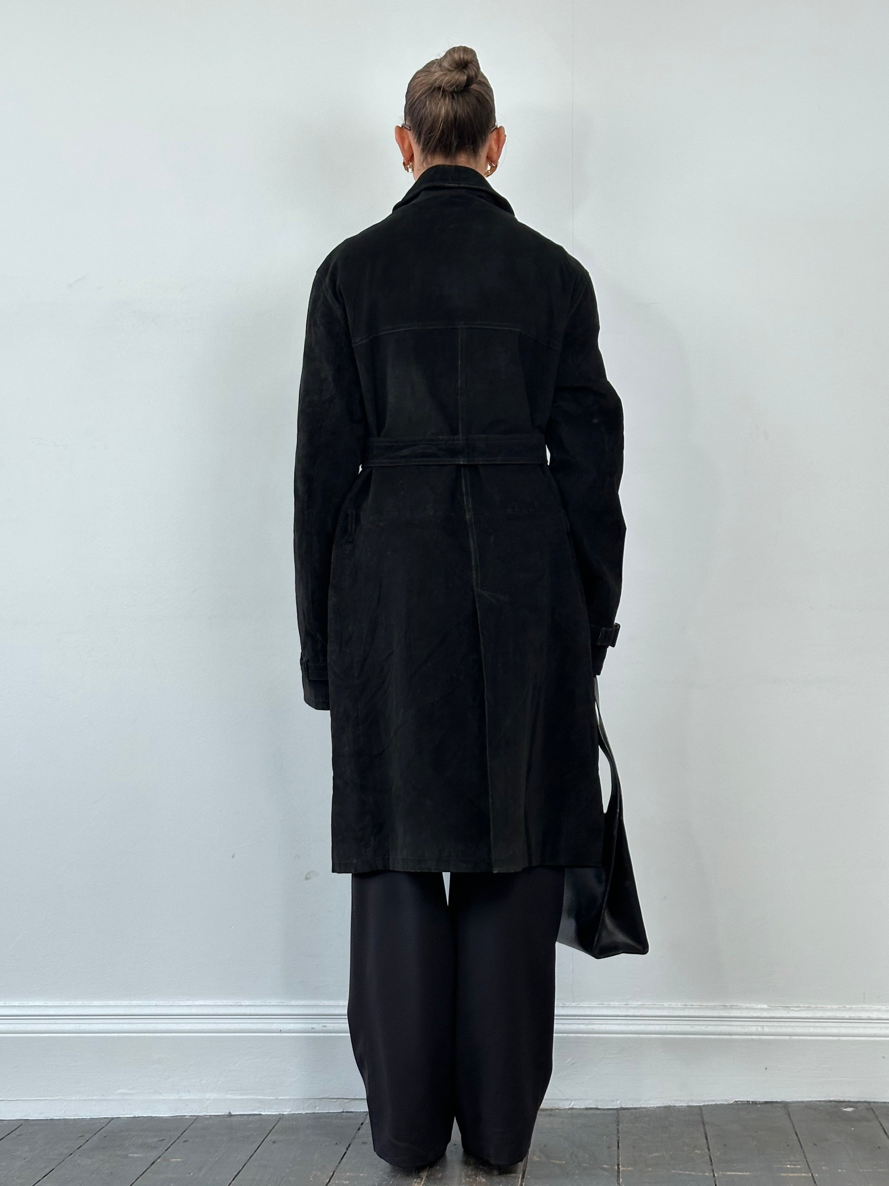 ~ Suede trench with adjustable waist belt