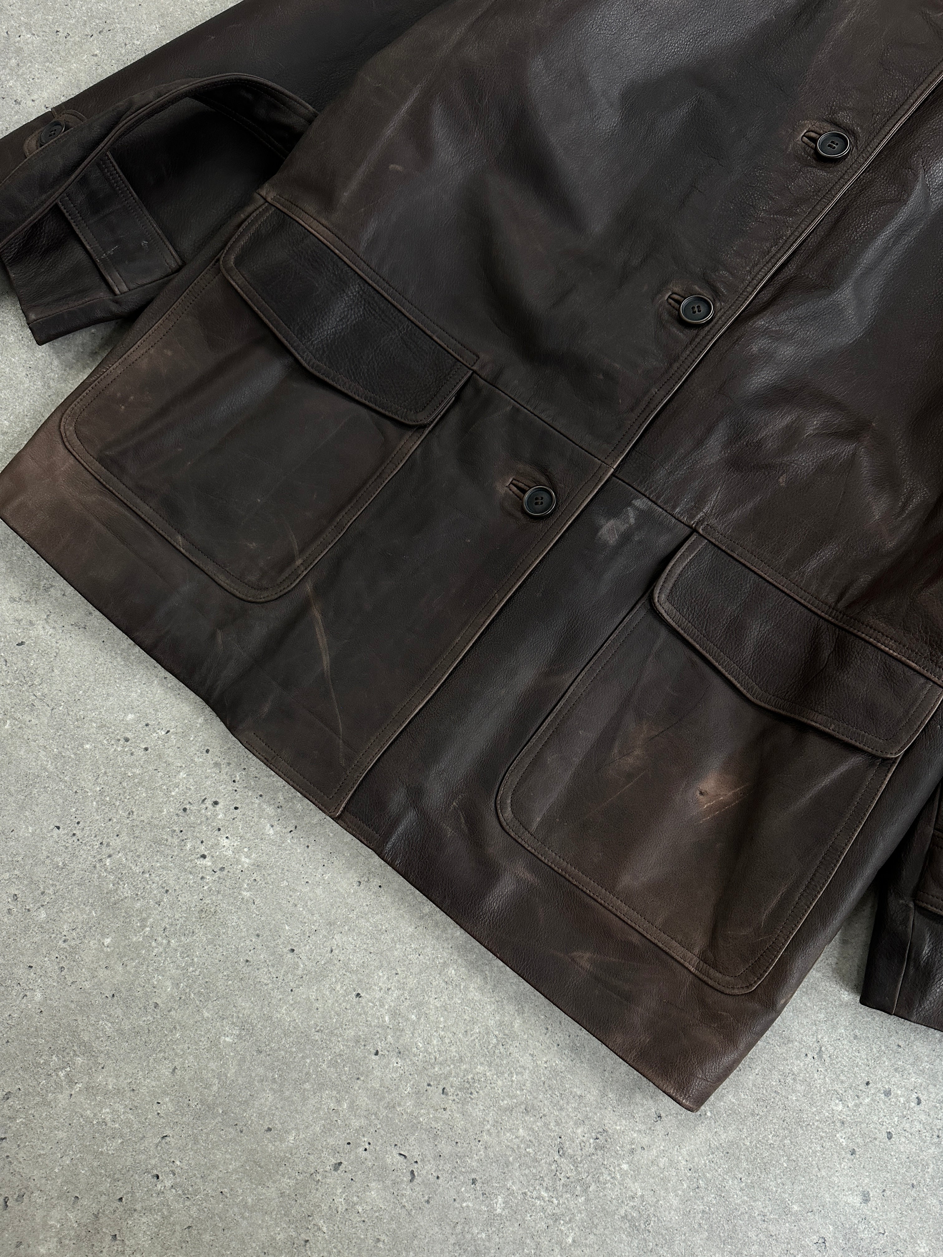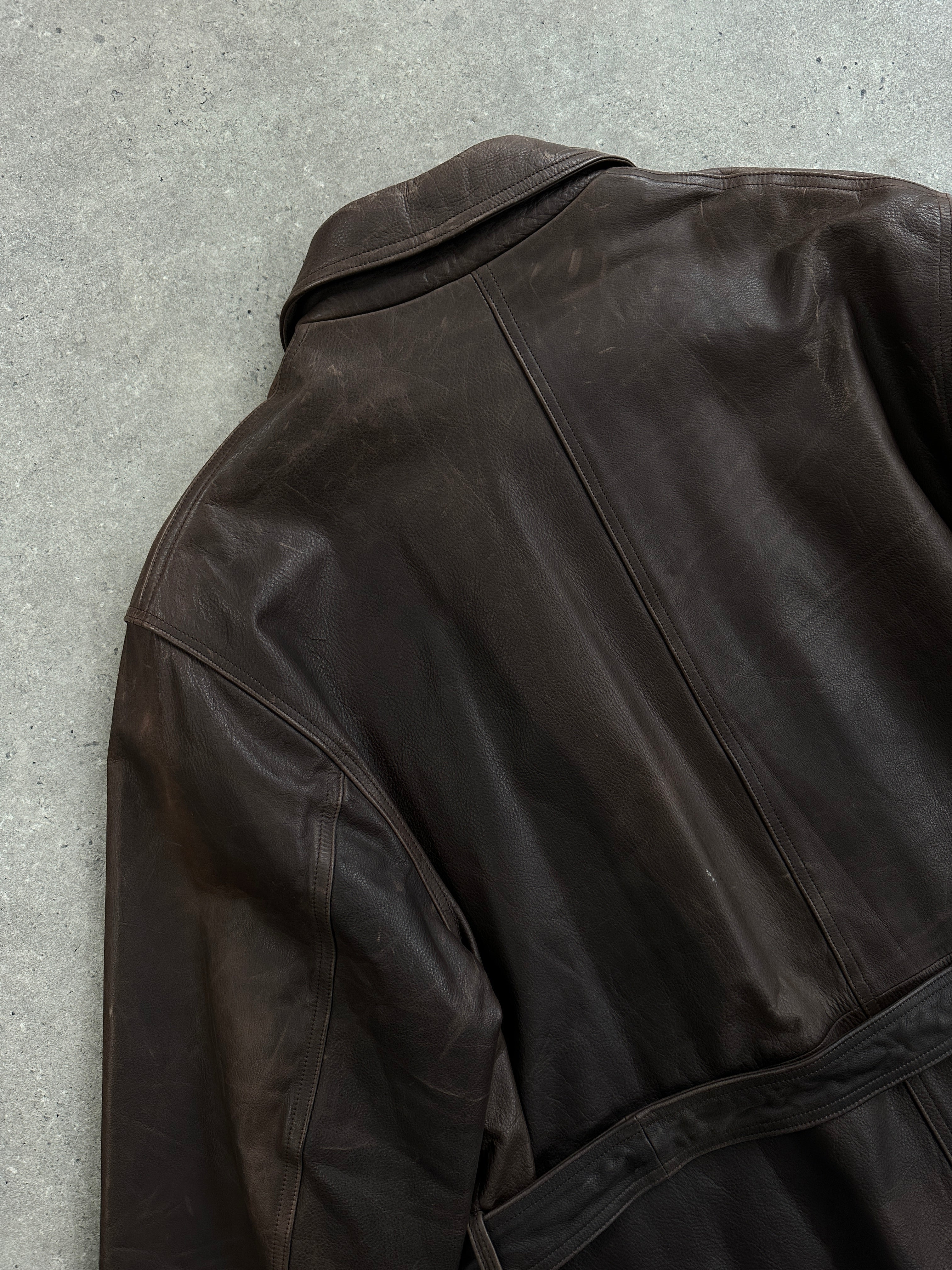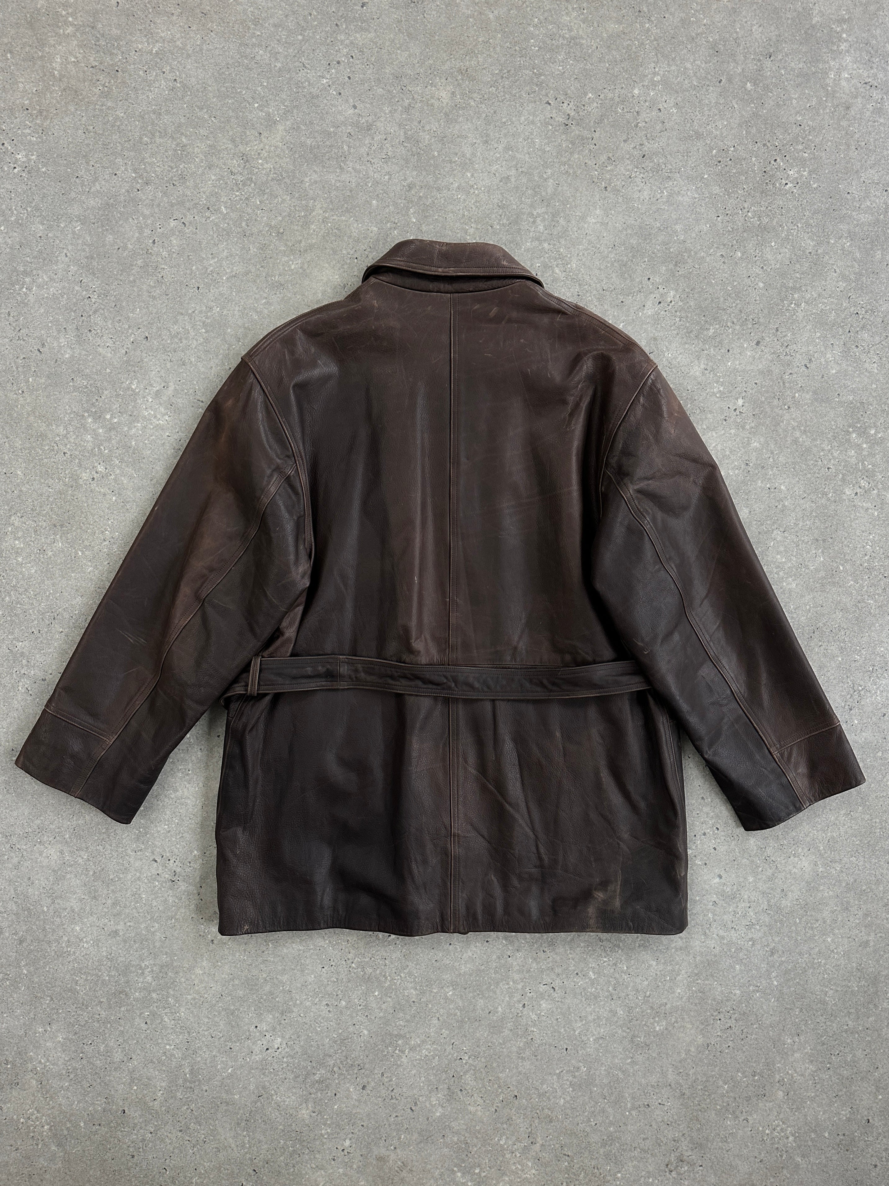Italian Vintage 1990s Aged Belted Leather Jacket - XL