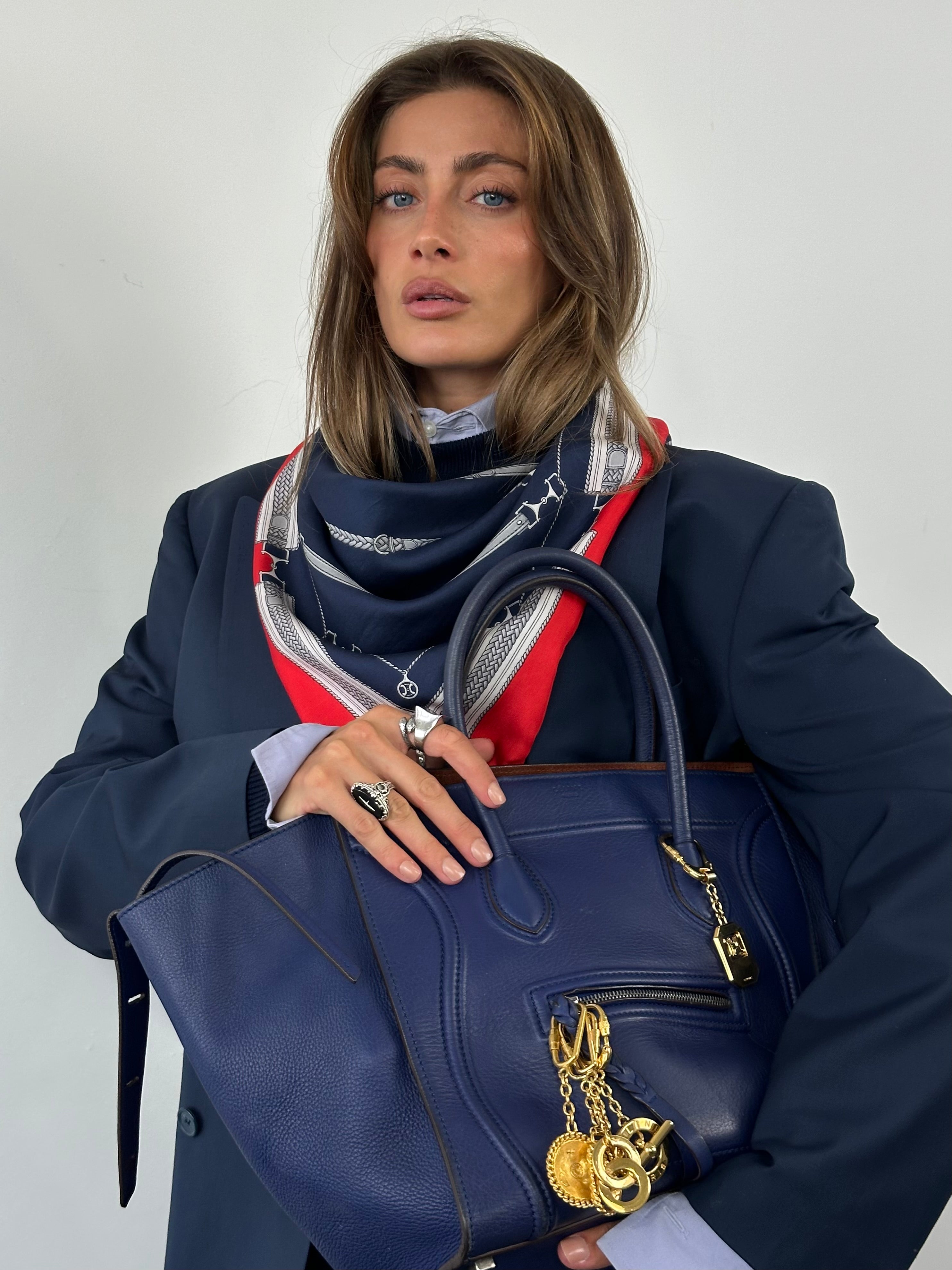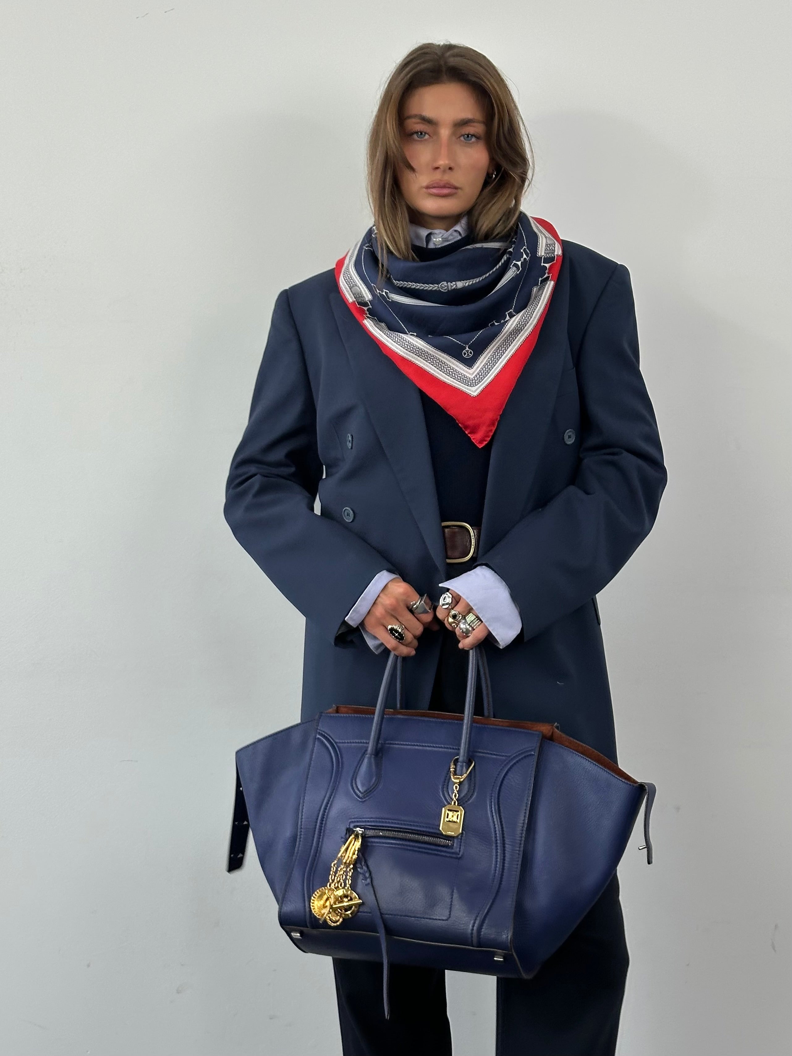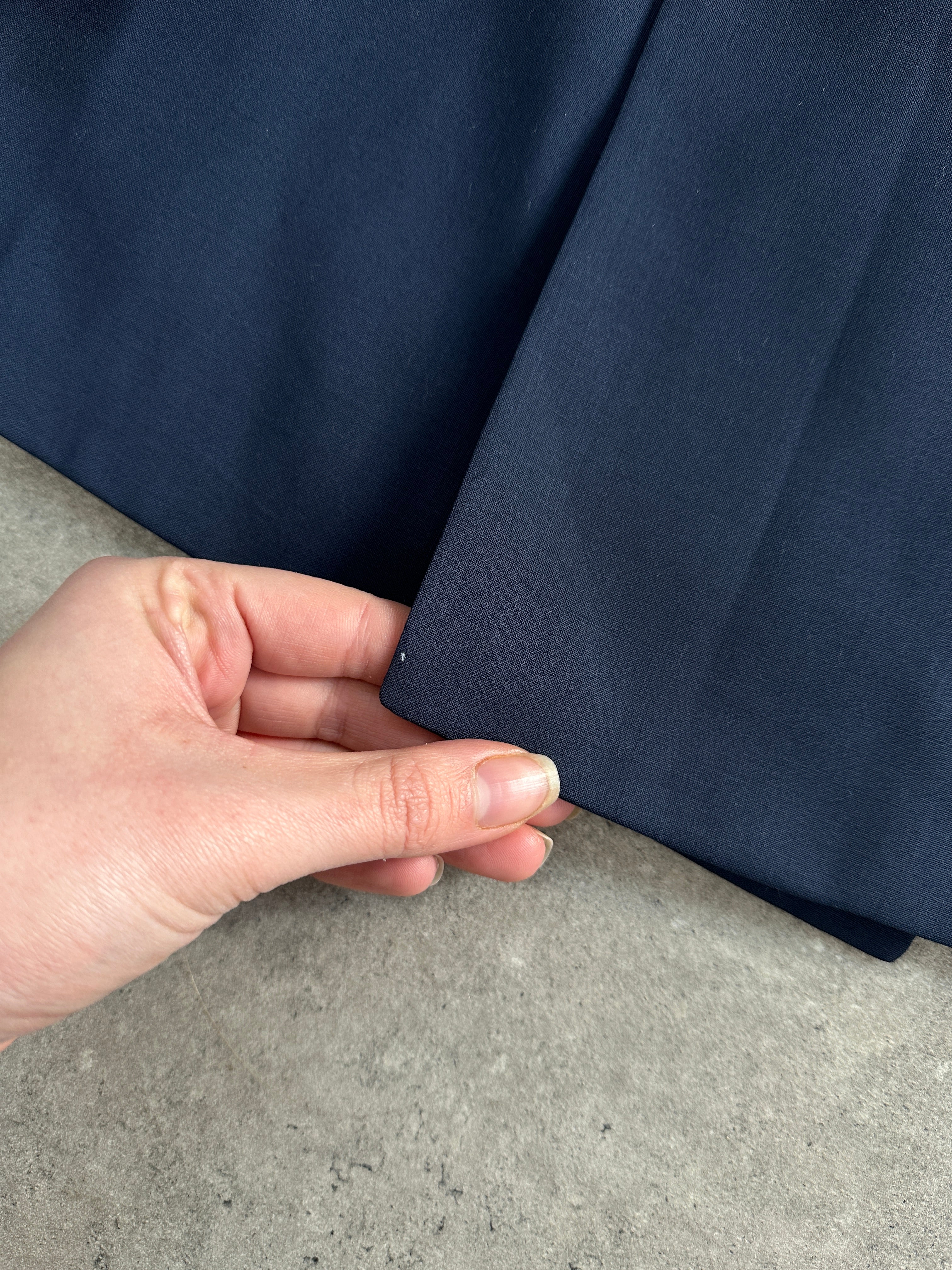 Tailored in Italy from superfine Tasmanian merino wool, this double breasted AquaViva blazer carries the refined structure of 90s Italian suiting, sharp peak lapels, padded shoulders, and a clean navy finish that endures as contemporary style.