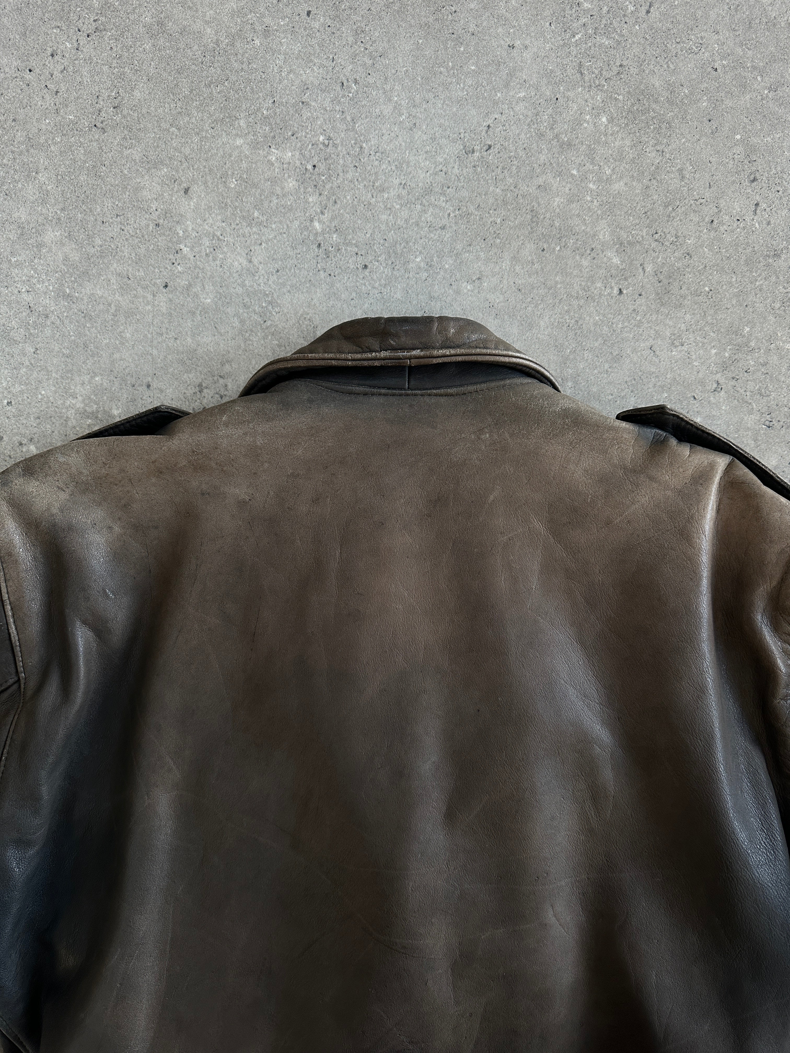 Vintage 1980s Distressed Leather Biker Jacket - S