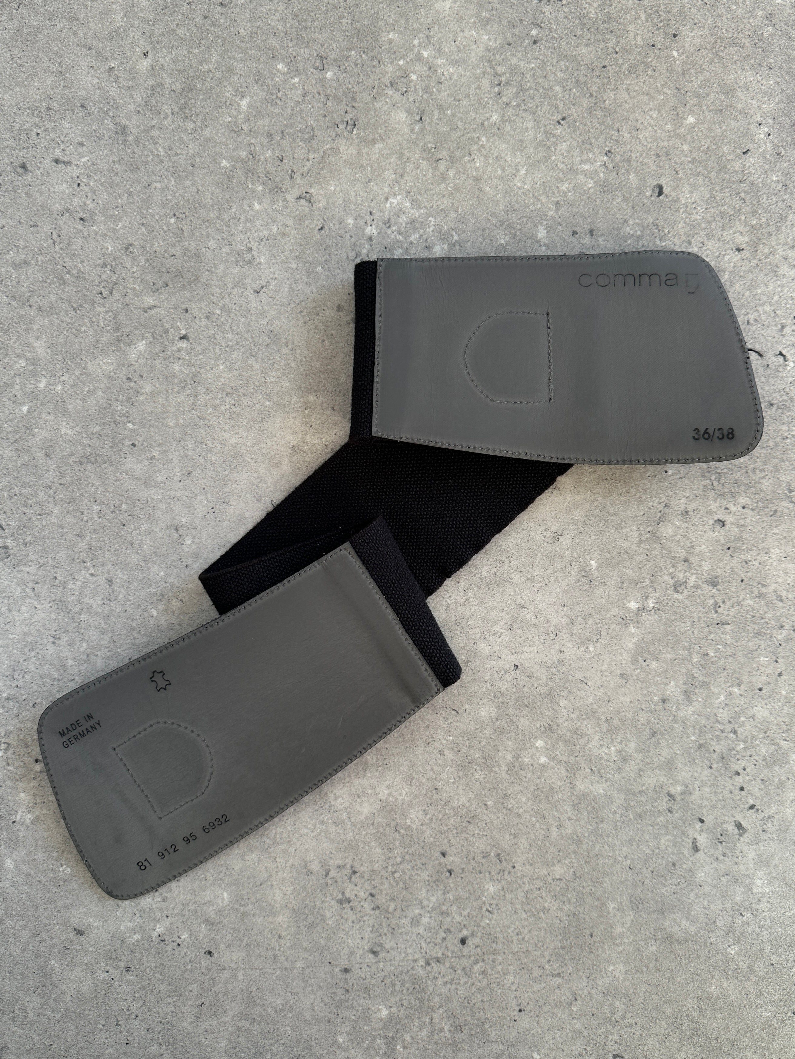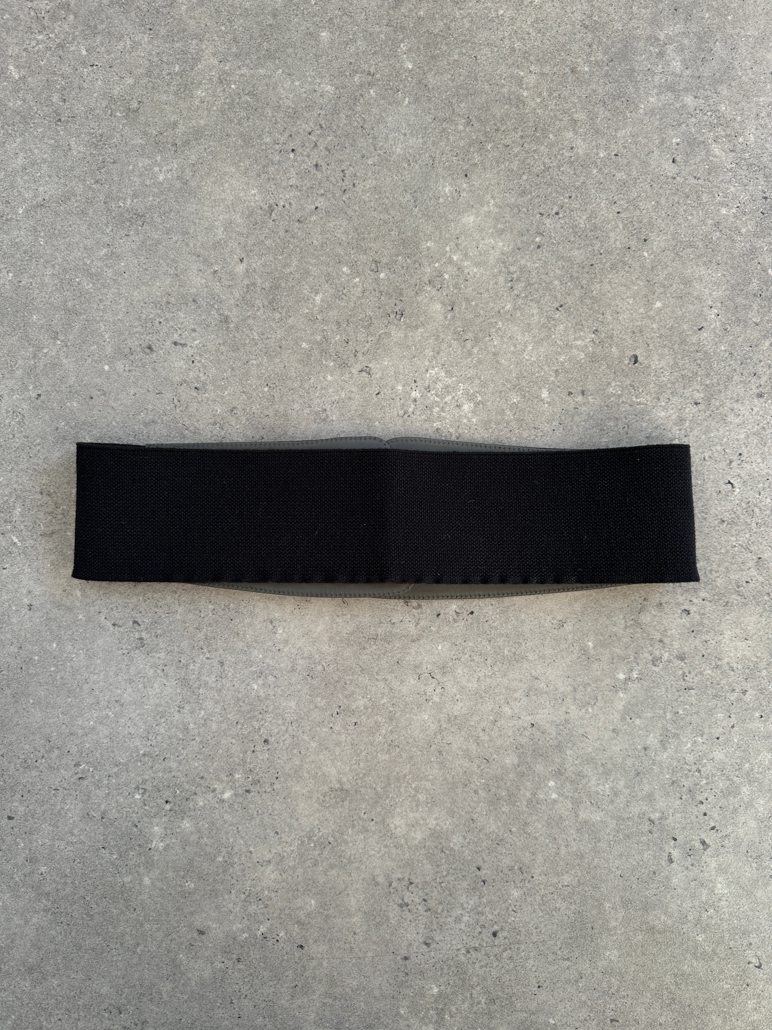 Vintage 1990s Comma leather belt in a deep black tone with a sculptural silver hook closure. A clean minimal accessory with an elasticated back for a refined contoured fit.