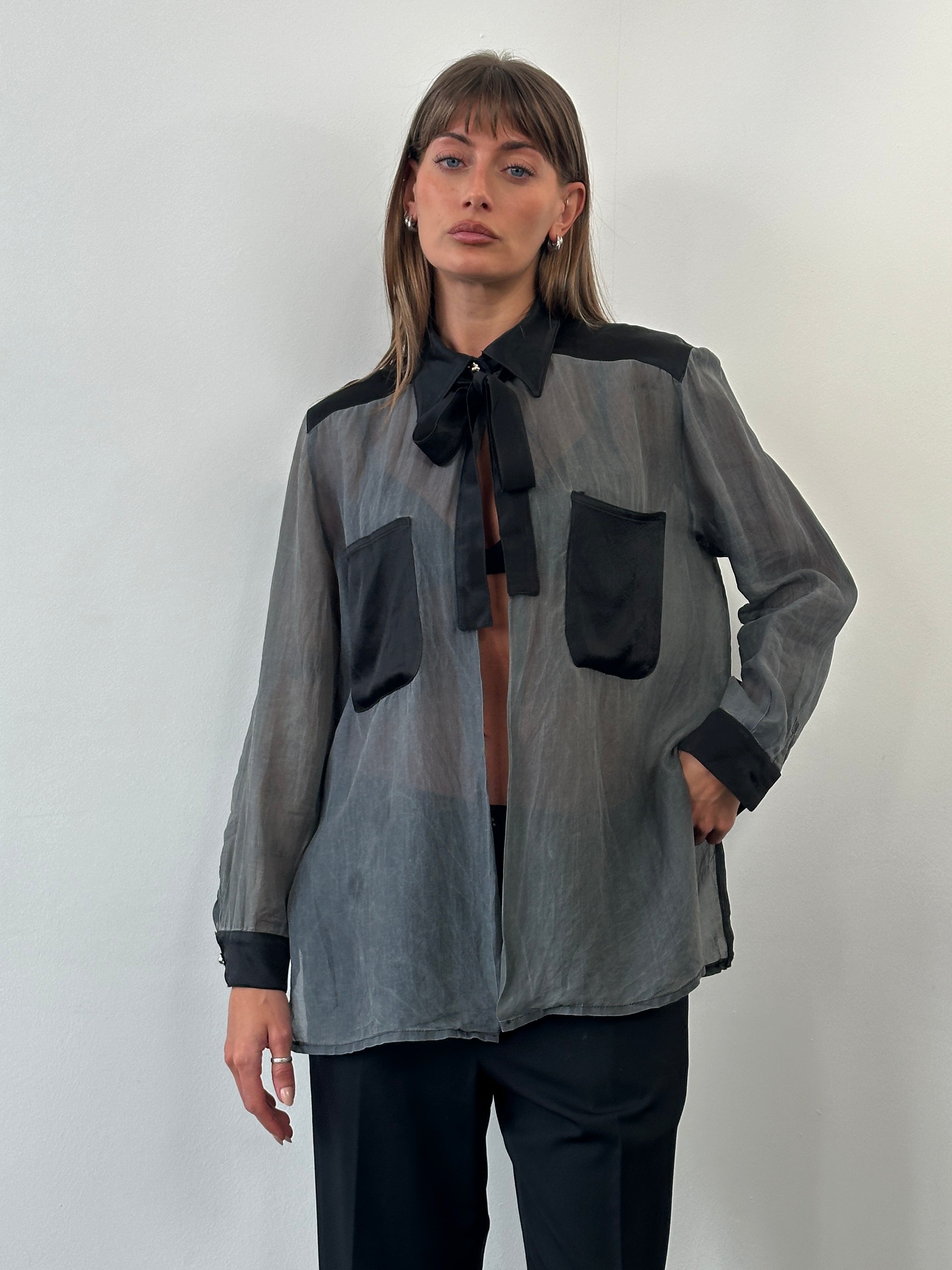 Vintage 1990s Sheer Satin Tie Neck Shirt - M