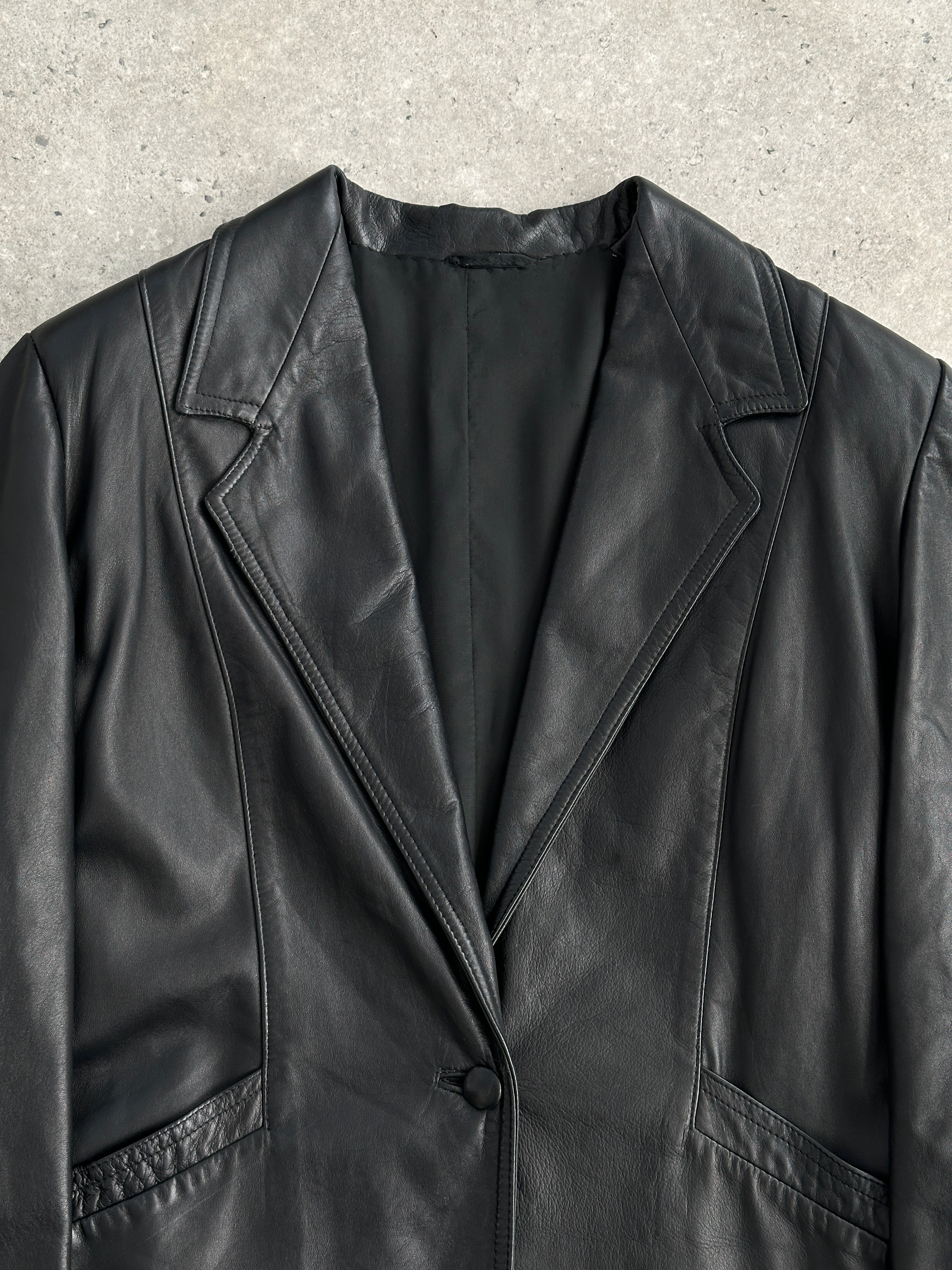 Vintage Single Button Leather Blazer Jacket - M