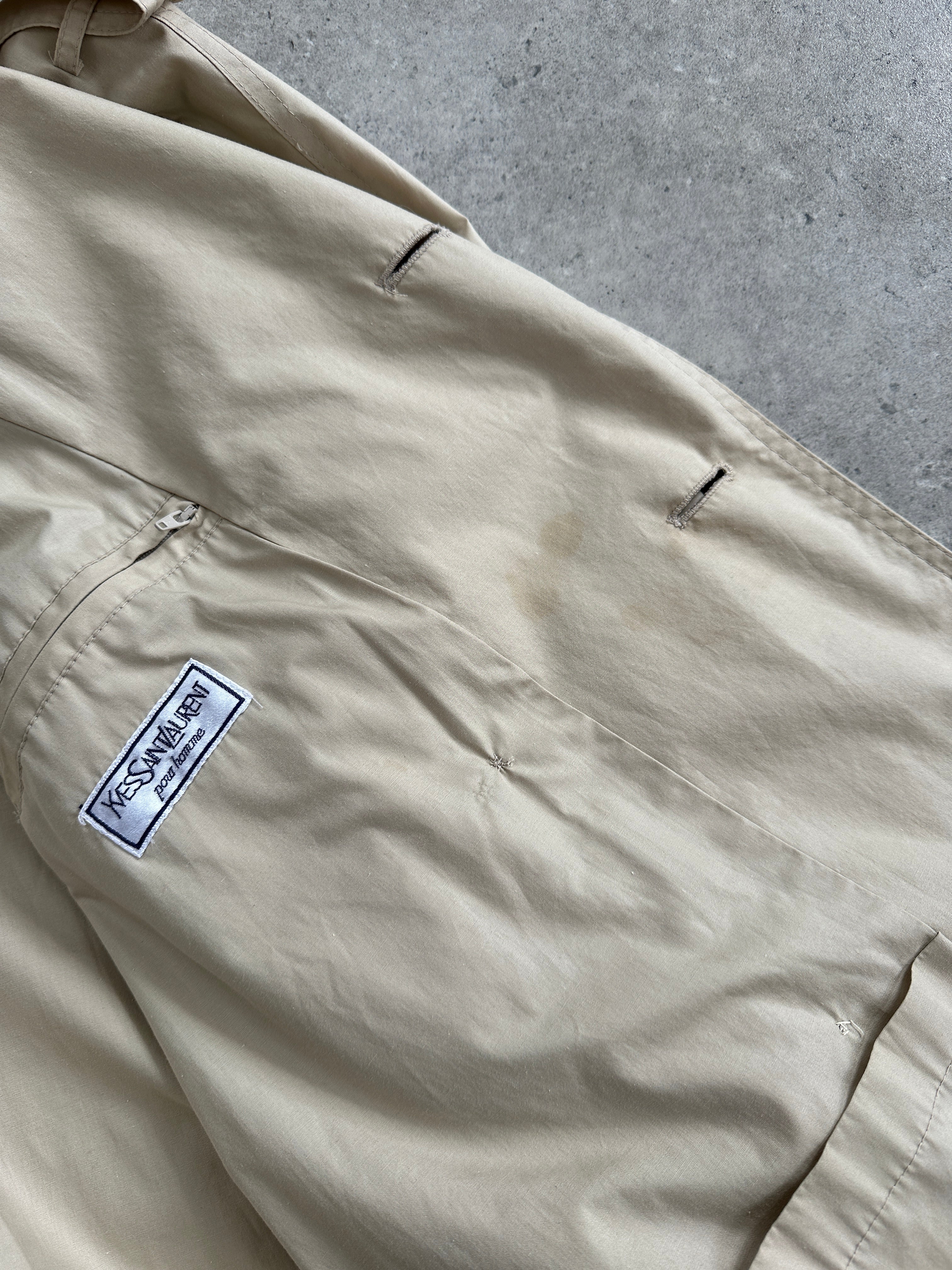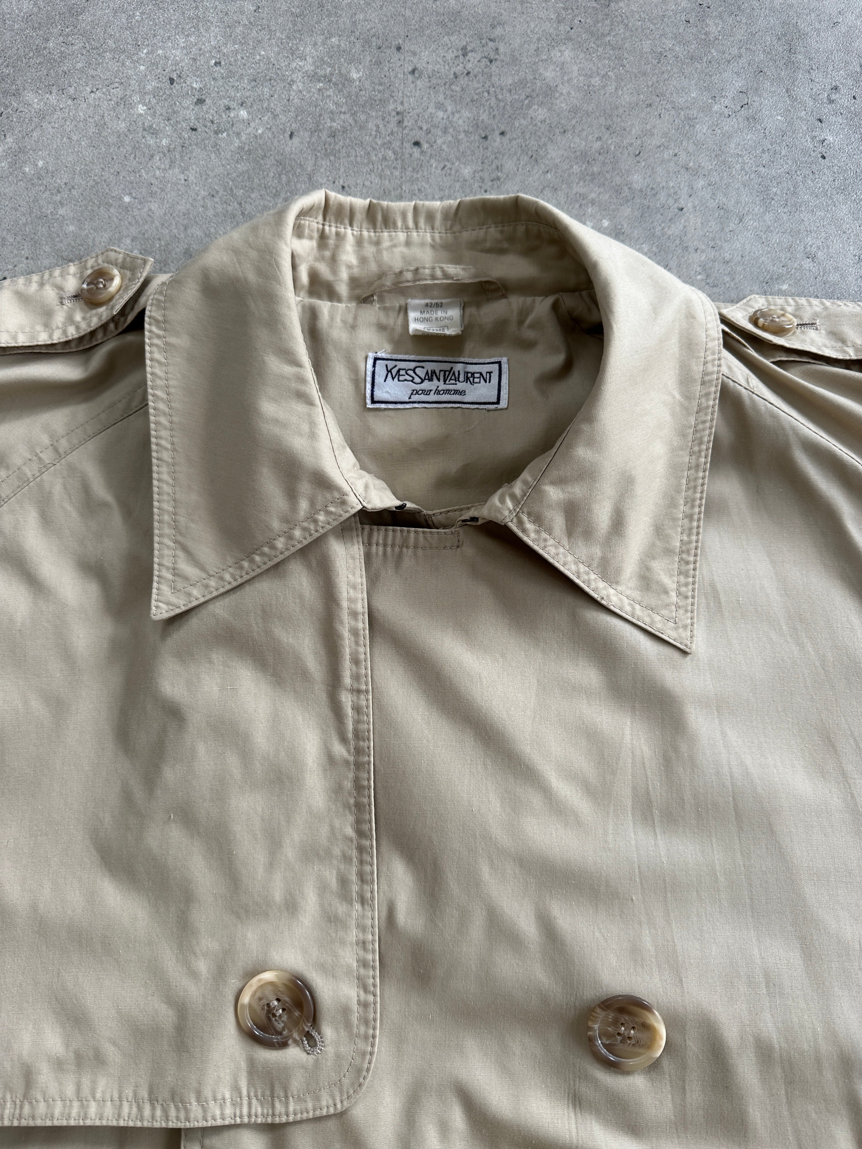 Yves Saint Laurent 80s Cotton Double Breasted Belted Trench Coat - XXL